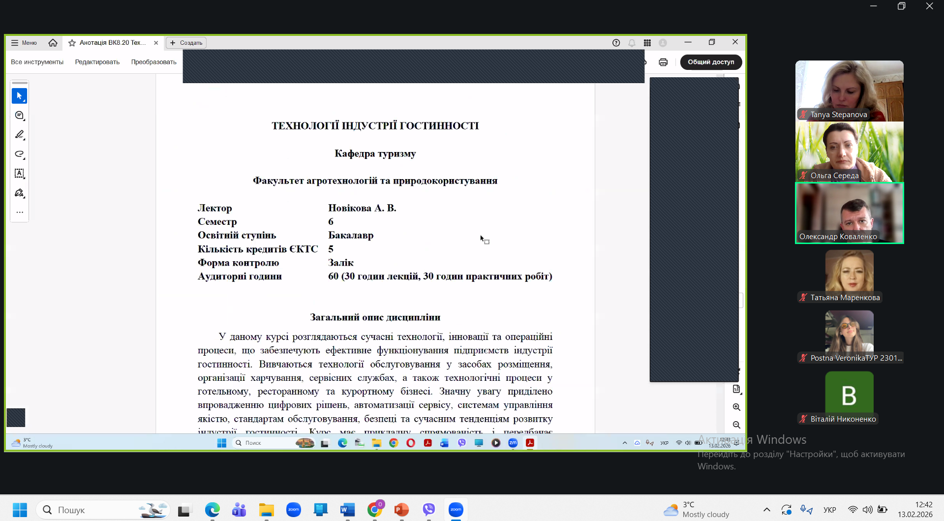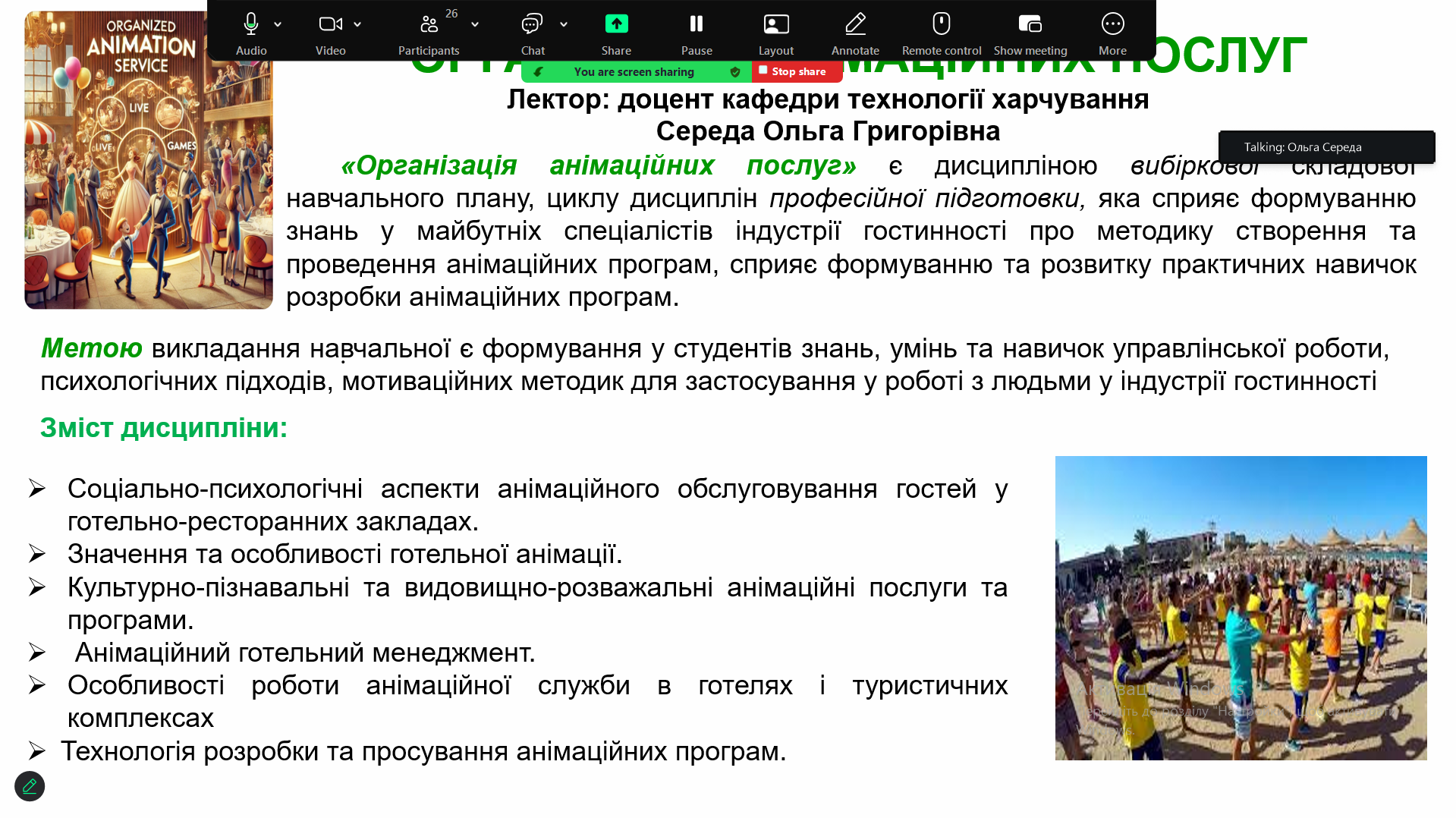 Під час презентацій викладачі представили зміст дисциплін, їх практичну спрямованість, актуальність для сучасного ринку праці, а також можливості формування професійних компетентностей у сфері гостинності та туризму. Особливу увагу було приділено інноваційним підходам до навчання, міждисциплінарним зв’язкам та перспективам професійного розвитку.