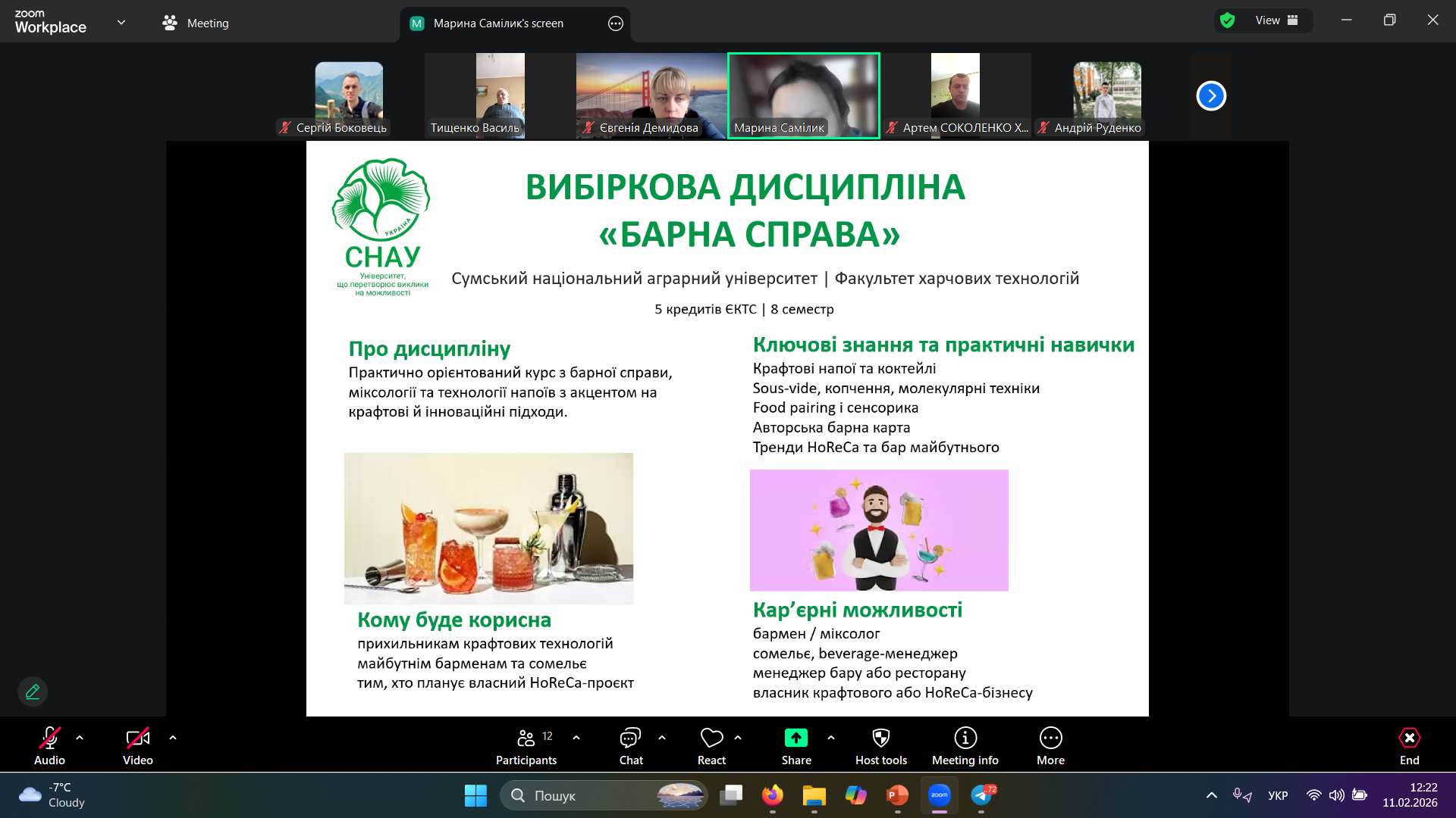 🔹 У середу, 11 лютого 2026 року, відбувся парад вибіркових дисциплін для студентів 1 та 3 курсів денної форми навчання освітньої програми «Крафтові технології та гастрономічні інновації».