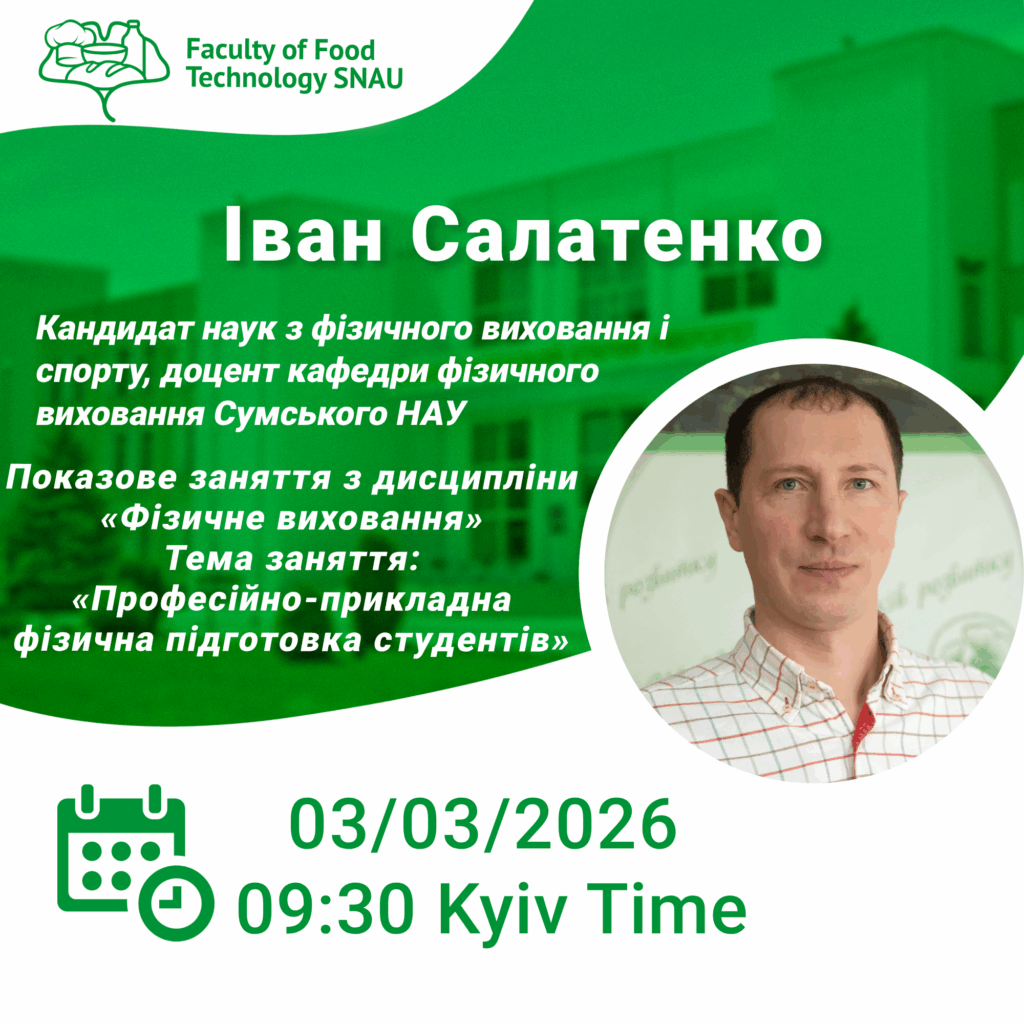3 березня 2026 року о 9:30 відбудеться показове заняття з дисципліни «Фізичне виховання», яке проведе доцент кафедри фізичного виховання І. О. Салатенко.