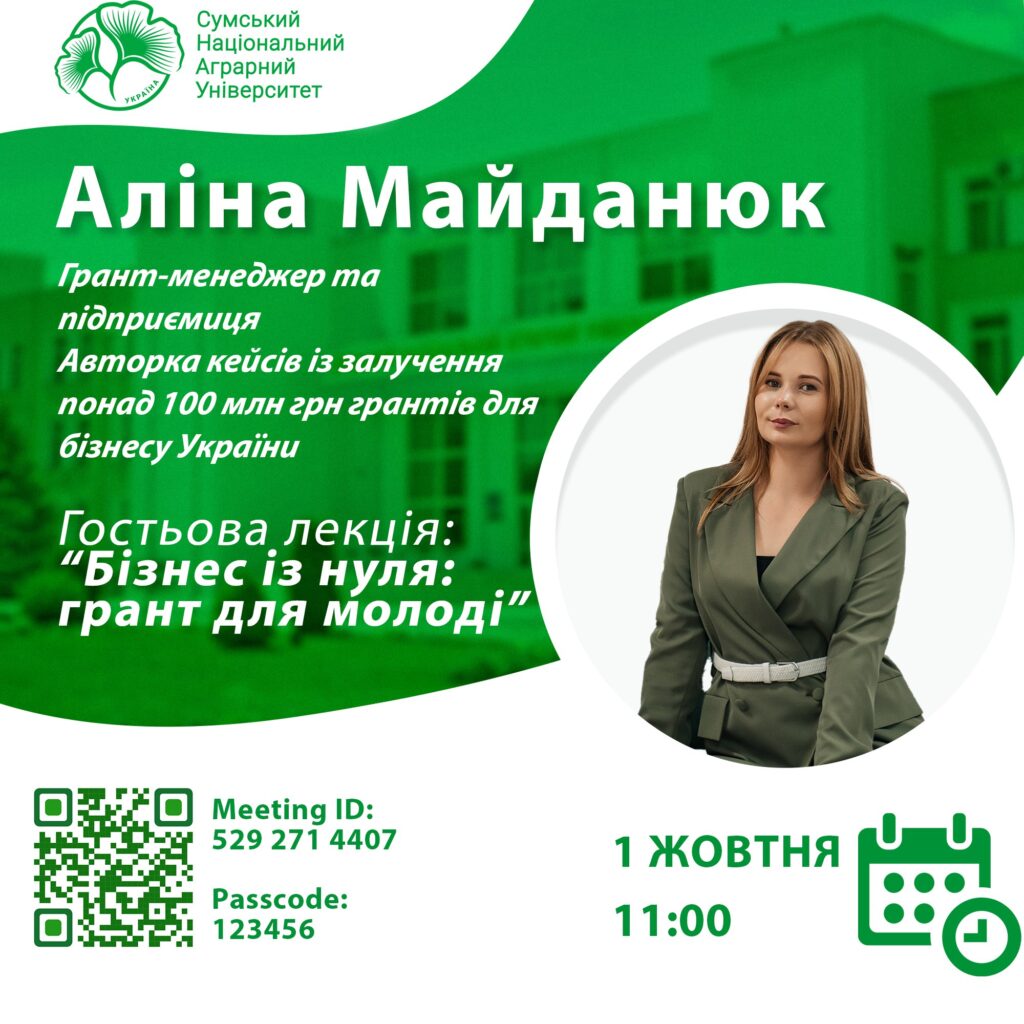 Тема гостьової лекції: «Бізнес із нуля: грант для молоді»
