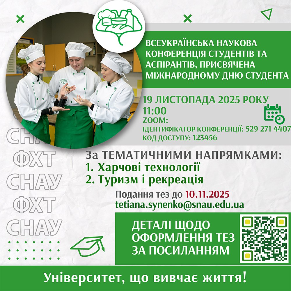 Запрошуємо вас взяти участь у Всеукраїнській науковій конференції студентів та аспірантів, присвяченій Міжнародному дню студента, що відбудеться на факультеті.