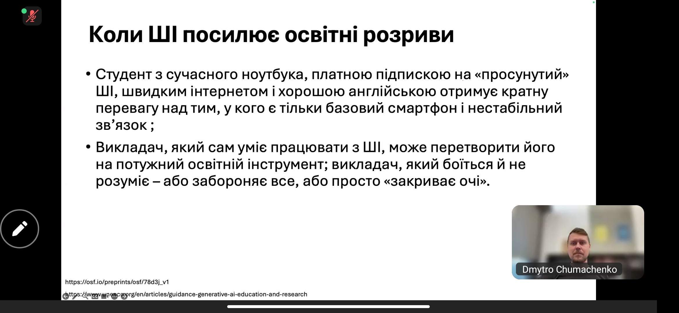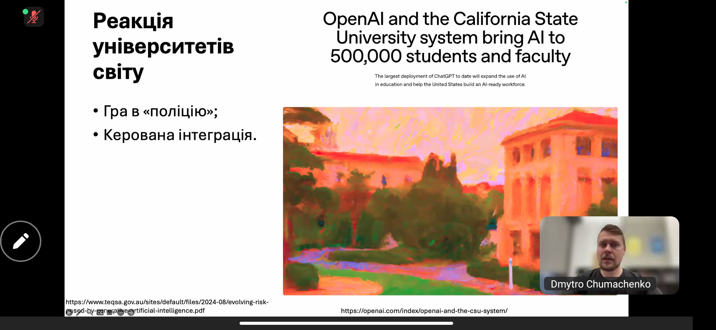 • ризики та можливості, які відкриває штучний інтелект для педагогів і студентів;