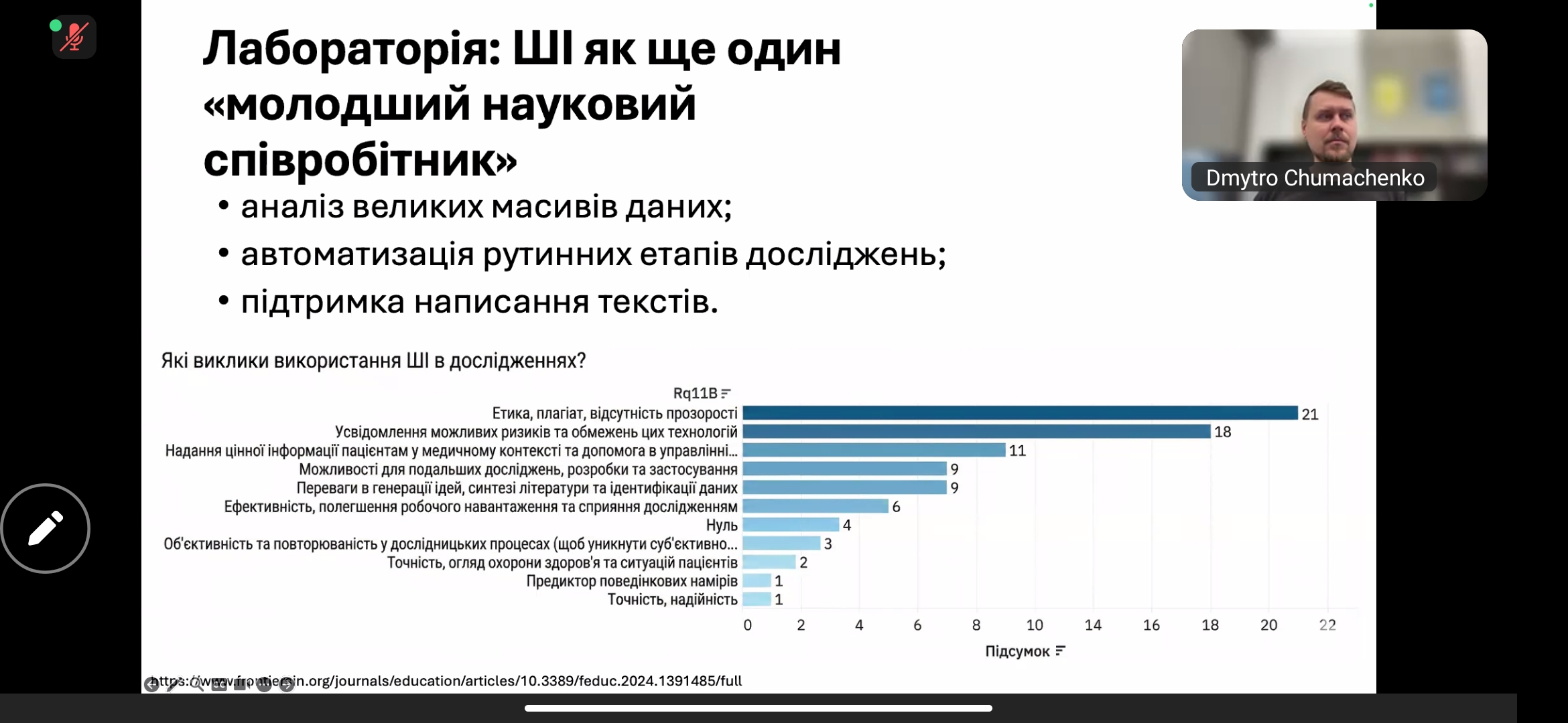 Висловлюємо щиру подяку Дмитру Чумаченку за змістовну, інформативну та надихаючу доповідь, яка стала цінним внеском у розвиток культури академічної доброчесності та цифрової грамотності в університетській спільноті.
