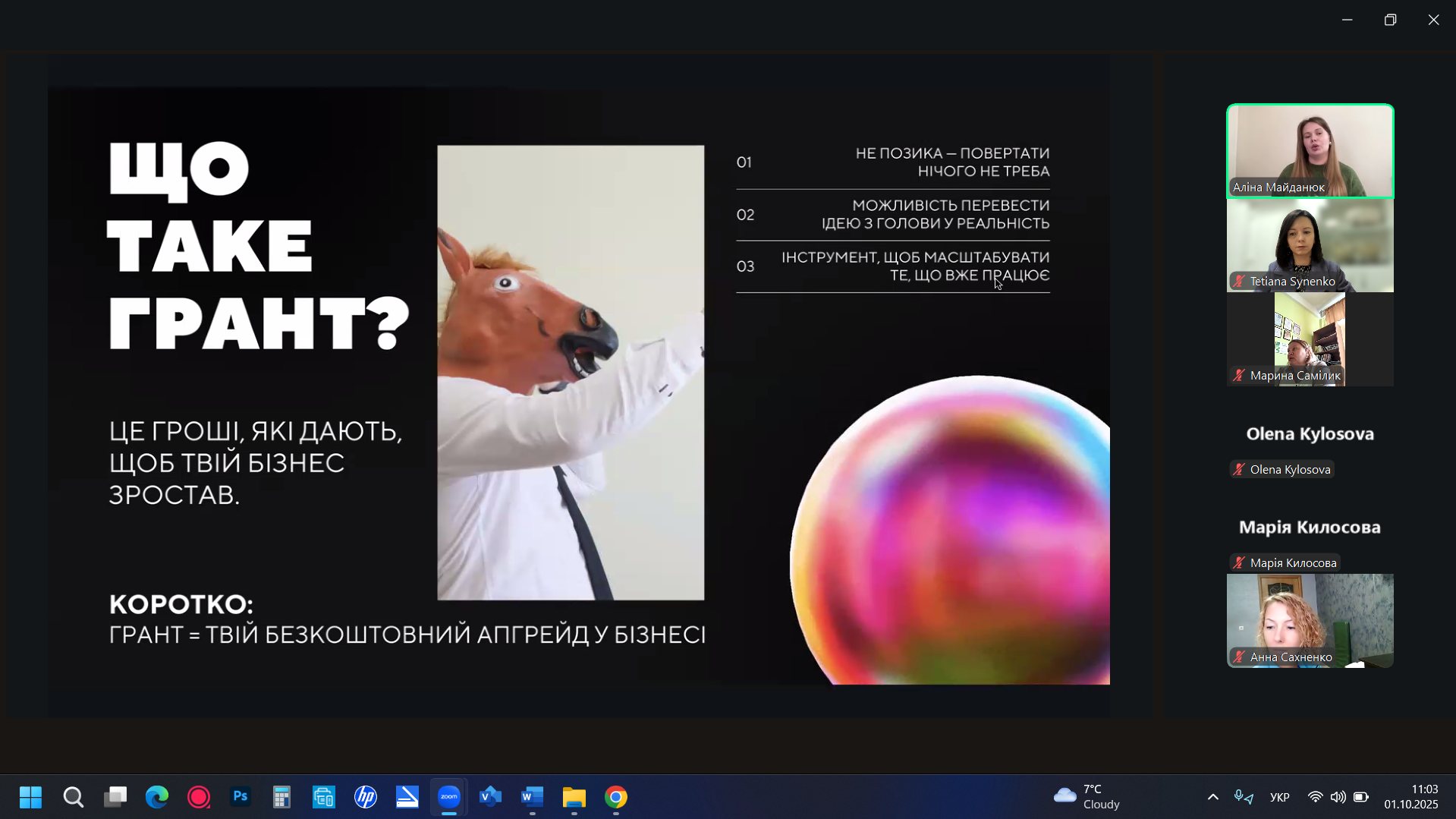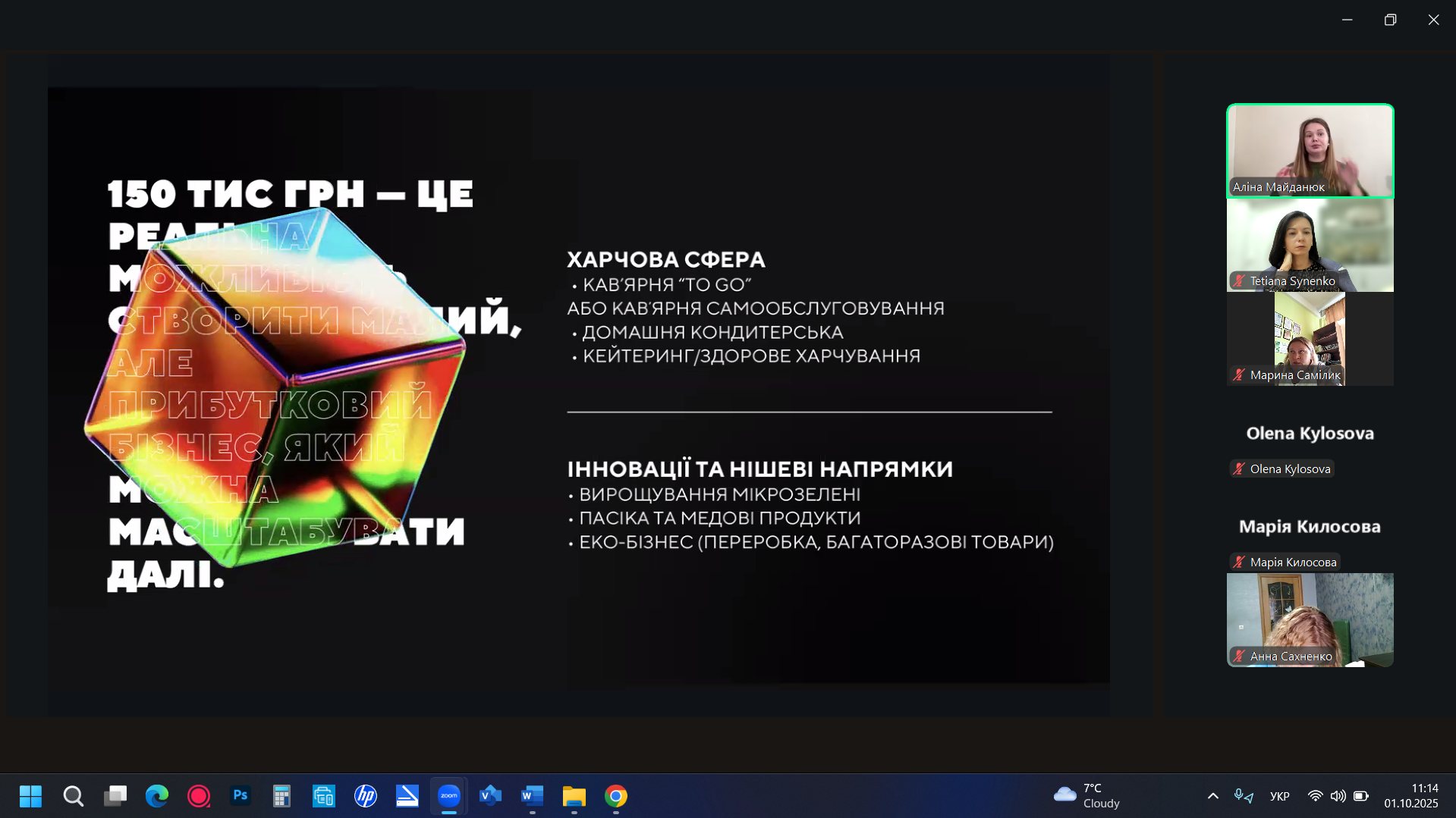 1 жовтня здобувачі факультету харчових технологій та всі охочі мали чудову нагоду поспілкуватися з Аліною Майданюк – грант-менеджеркою, підприємницею та експерткою.