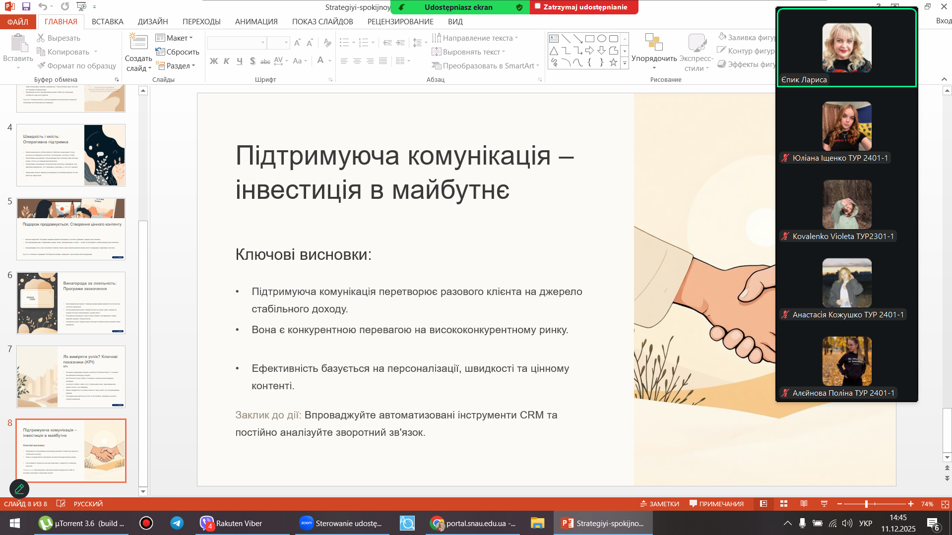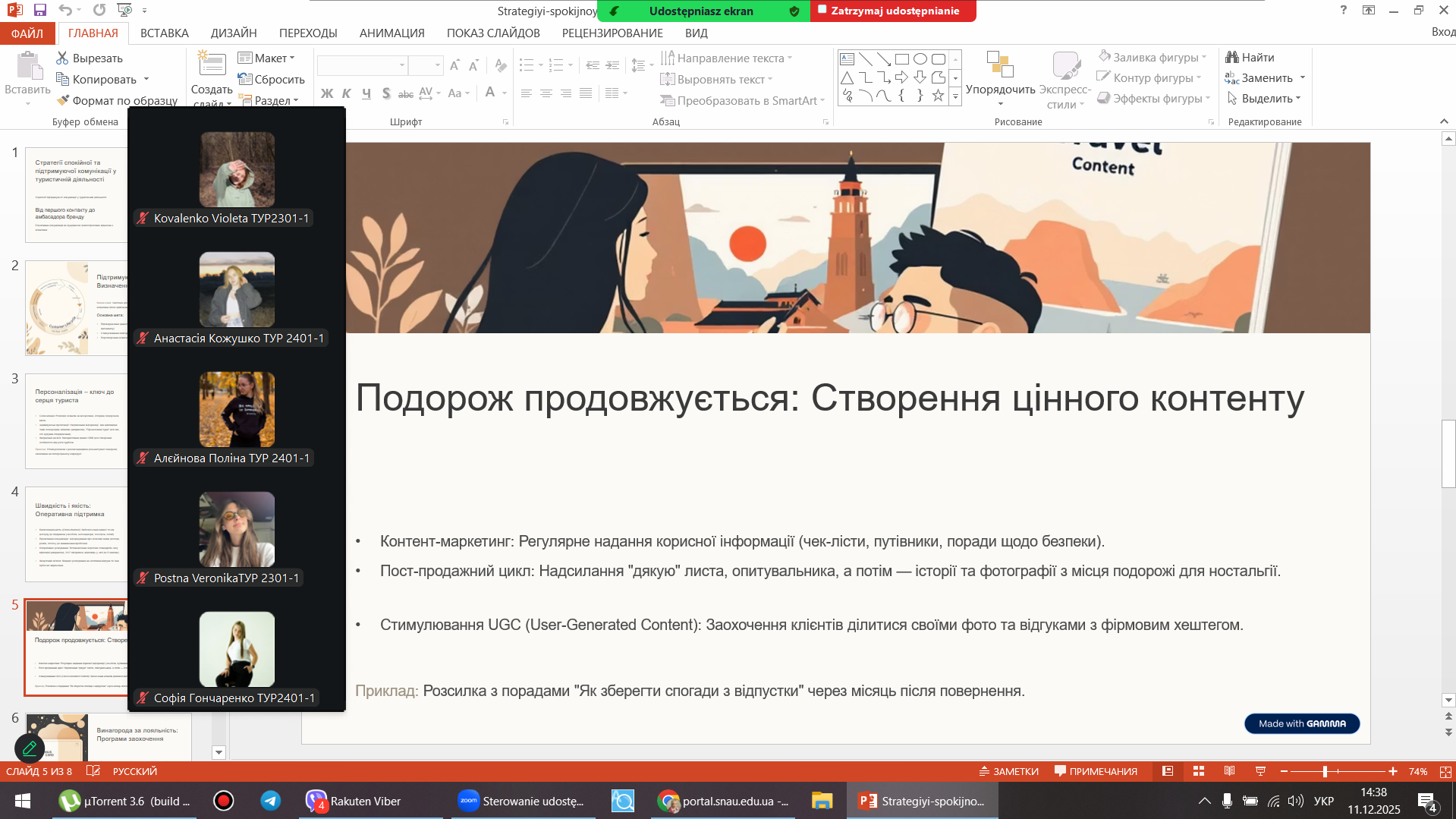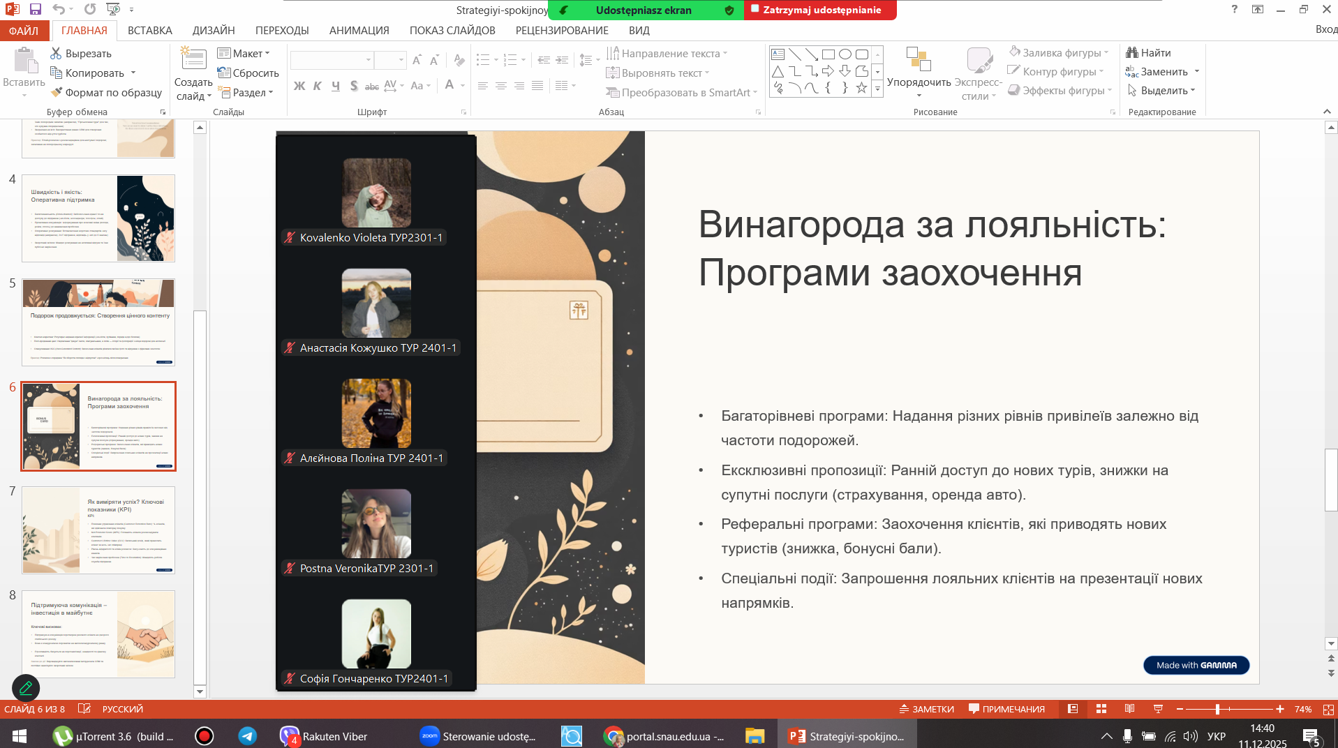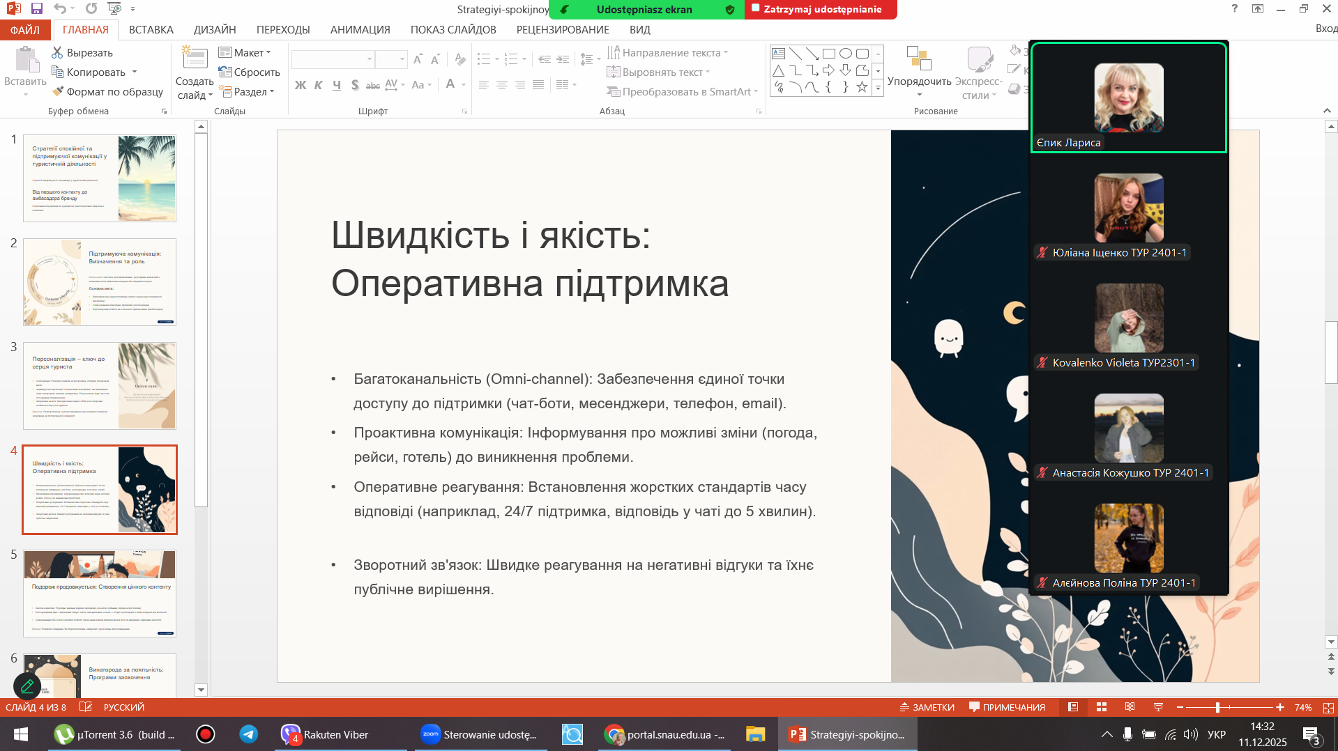 11 грудня 2025 року відбулося чергове засідання гуртка, присвячене надзвичайно актуальній темі: «Стратегії спокійної та підтримуючої комунікації в туристичній діяльності».
