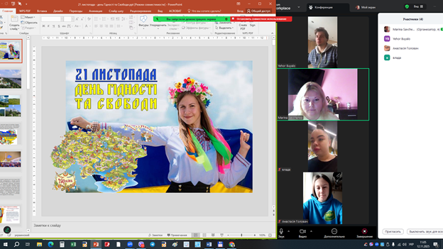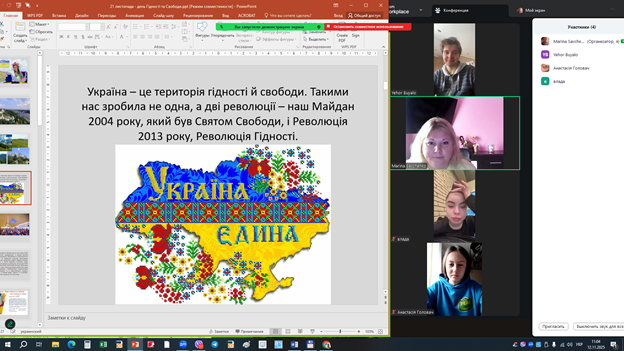 12 листопада 2025 року відбувся зворушливий національно-патріотичний захід, присвячений 21 11 – Дню Гідності та Свободи України. У центрі уваги – студенти групи ХТ 2301с.т. та куратор групи – к.т.н., доц. Савченко М.Ю., які з натхненням і глибокою повагою до історії своєї країни стали активними учасниками кураторської години, що перетворилася на справжній урок мужності, єдності та національної гордості.