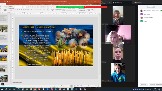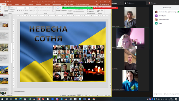Студенти групи ХТ 2301с.т. підготували емоційну презентацію, доповнену унікальними фото, архівними відео та листами з фронту. Кожен епізод історії супроводжувався хвилиною мовчання – за полеглими, за живими, за тих, хто ще повернеться. Особливо зворушливою стала розповідь про молодь на Майдані – ровесників сьогоднішніх студентів, які не вагаючись стали на захист майбутнього України.