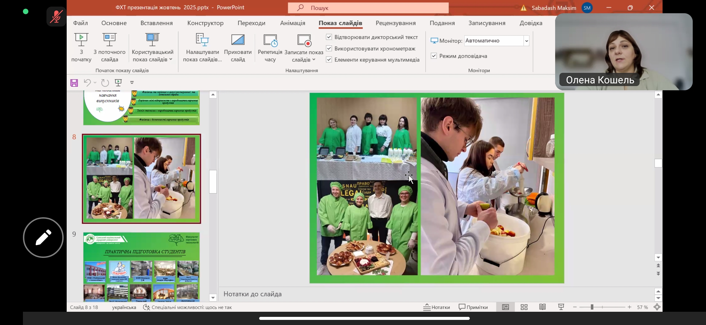 Частину цього заходу в онлайн режимі провели Олена КОШЕЛЬ, гарант ОПП “Харчові технології” ступіню вищої освіти “Бакалавр”, та Яна ІЛЛЯШЕНКО, заступник декана з професійно-орієнтаційної роботи. На зустрічі були присутні учні Путивльського фахового коледжу СНАУ спеціальності Харчові технології які планують вступати на ОПП Харчові технології