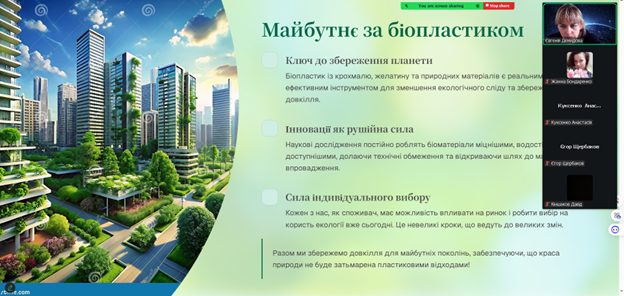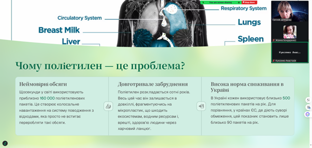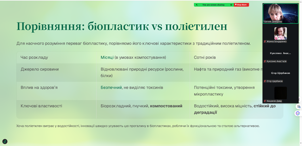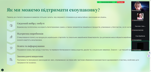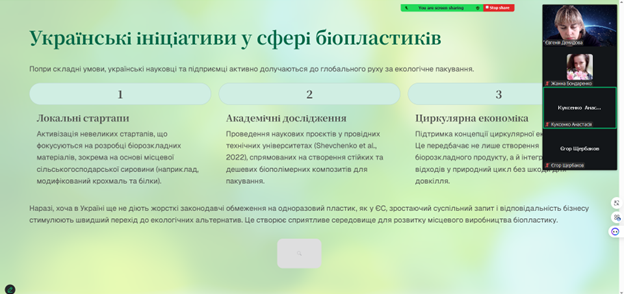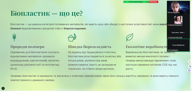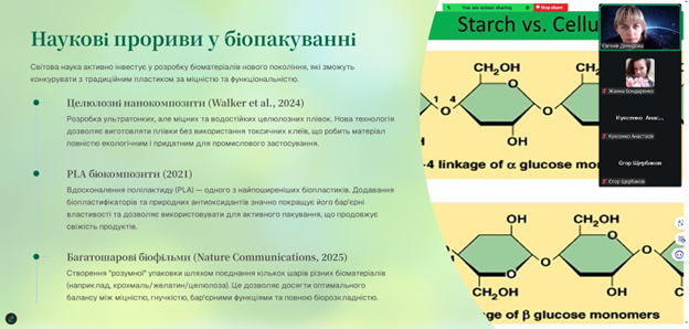 Також обговорили перспективи використання екологічних матеріалів у харчовій промисловості та провели порівняння біопакування з традиційними полімерними матеріалами.