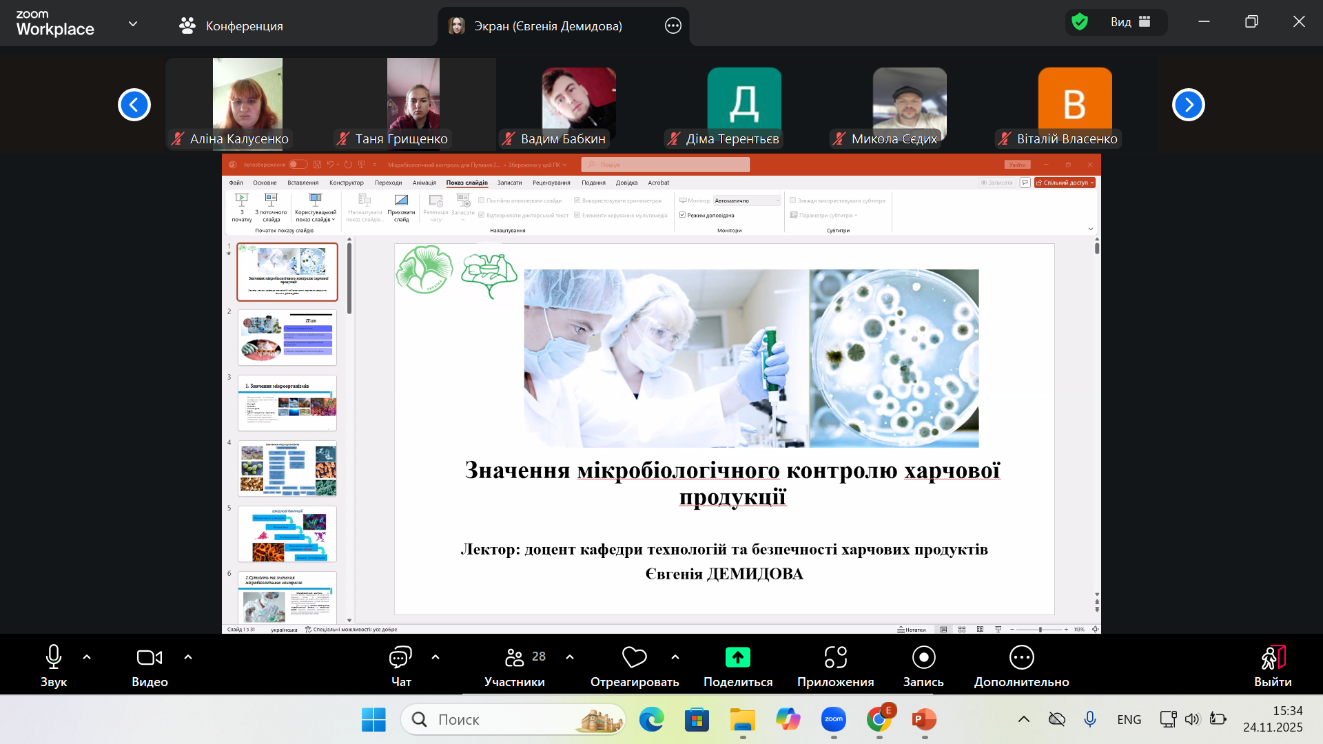 Для здобувачів освіти Путивльського фахового коледжу Сумського НАУ доцентом кафедри технологій та безпечності Євгенією Демидовою було проведено пізнавальну та практично орієнтовану лекцію, присвячену одному з ключових напрямів харчової галузі – мікробіологічній безпеці.