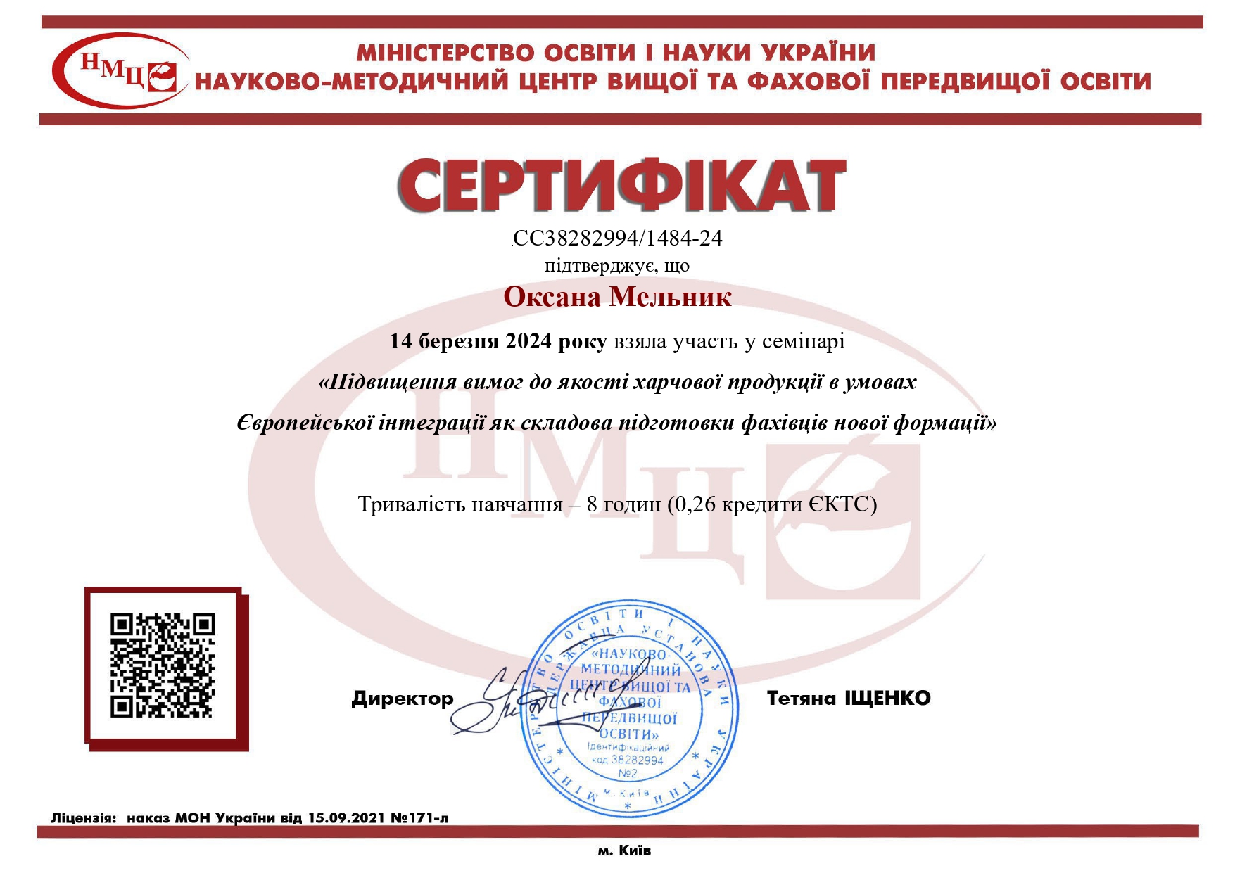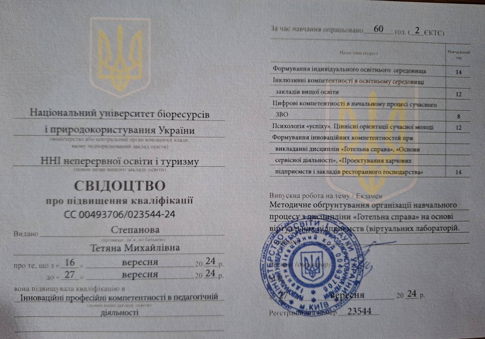 Сертифікати підвищення кваліфікації