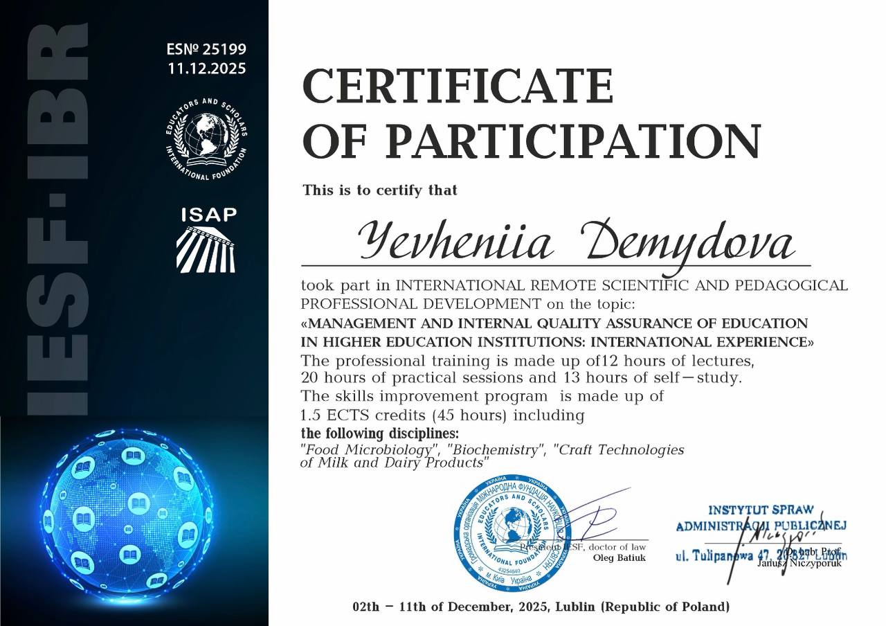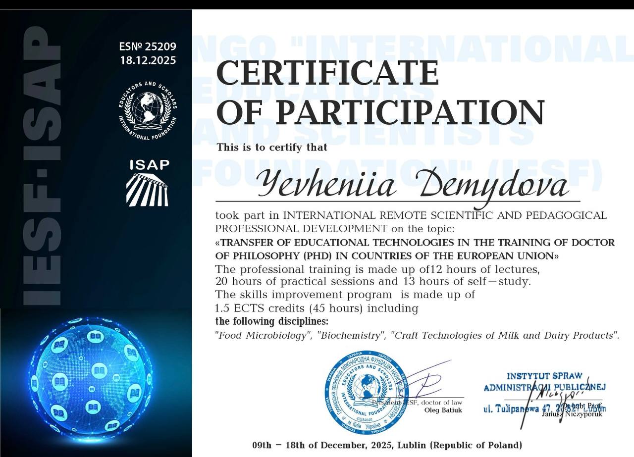 Кафедра технологій та безпечності харчових продуктів