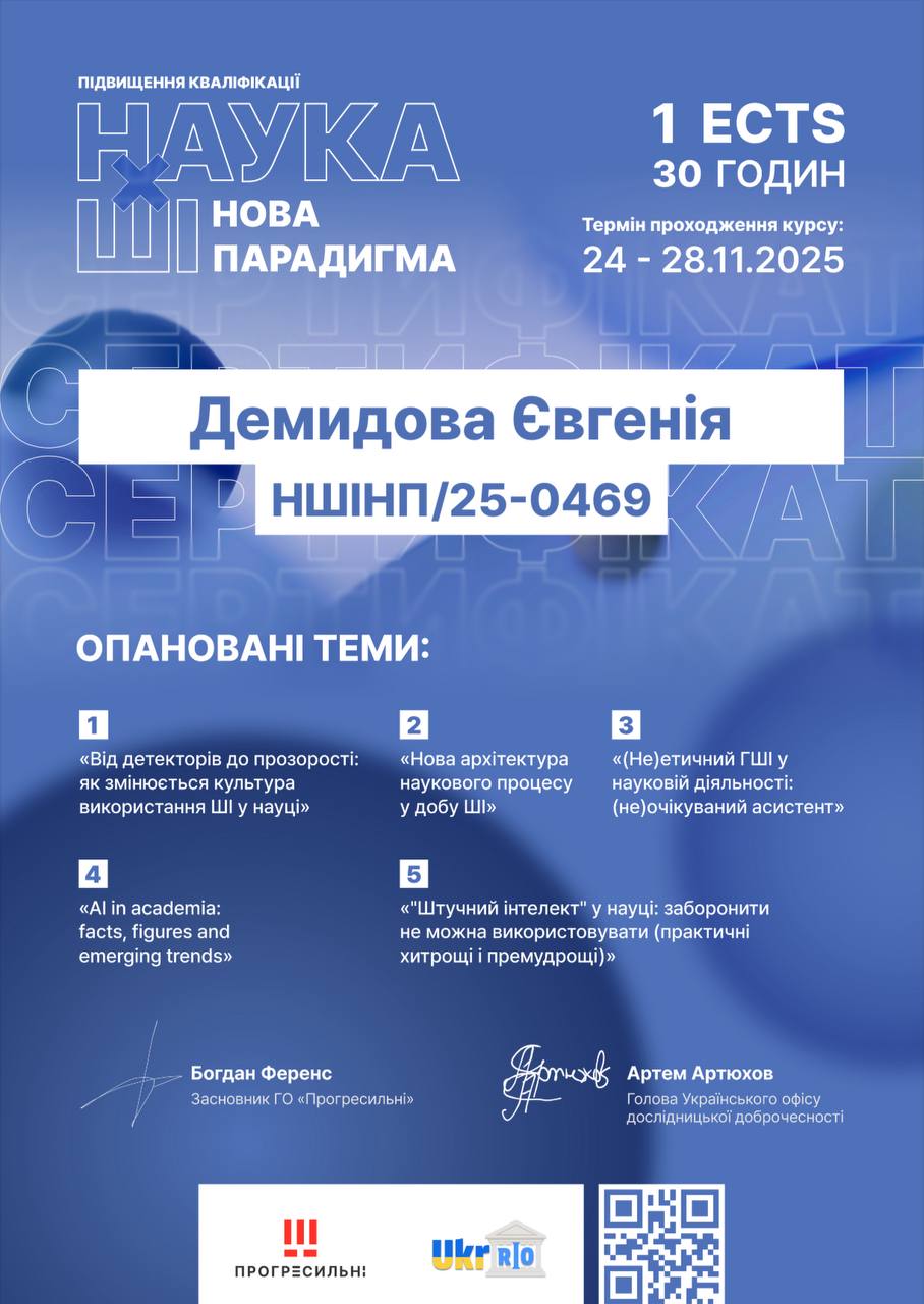 Наукові досягнення здобувачів