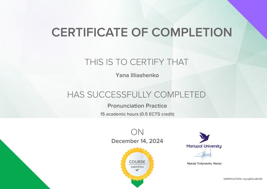 - Пройшла мовні онлайн-курси у Mariupol University