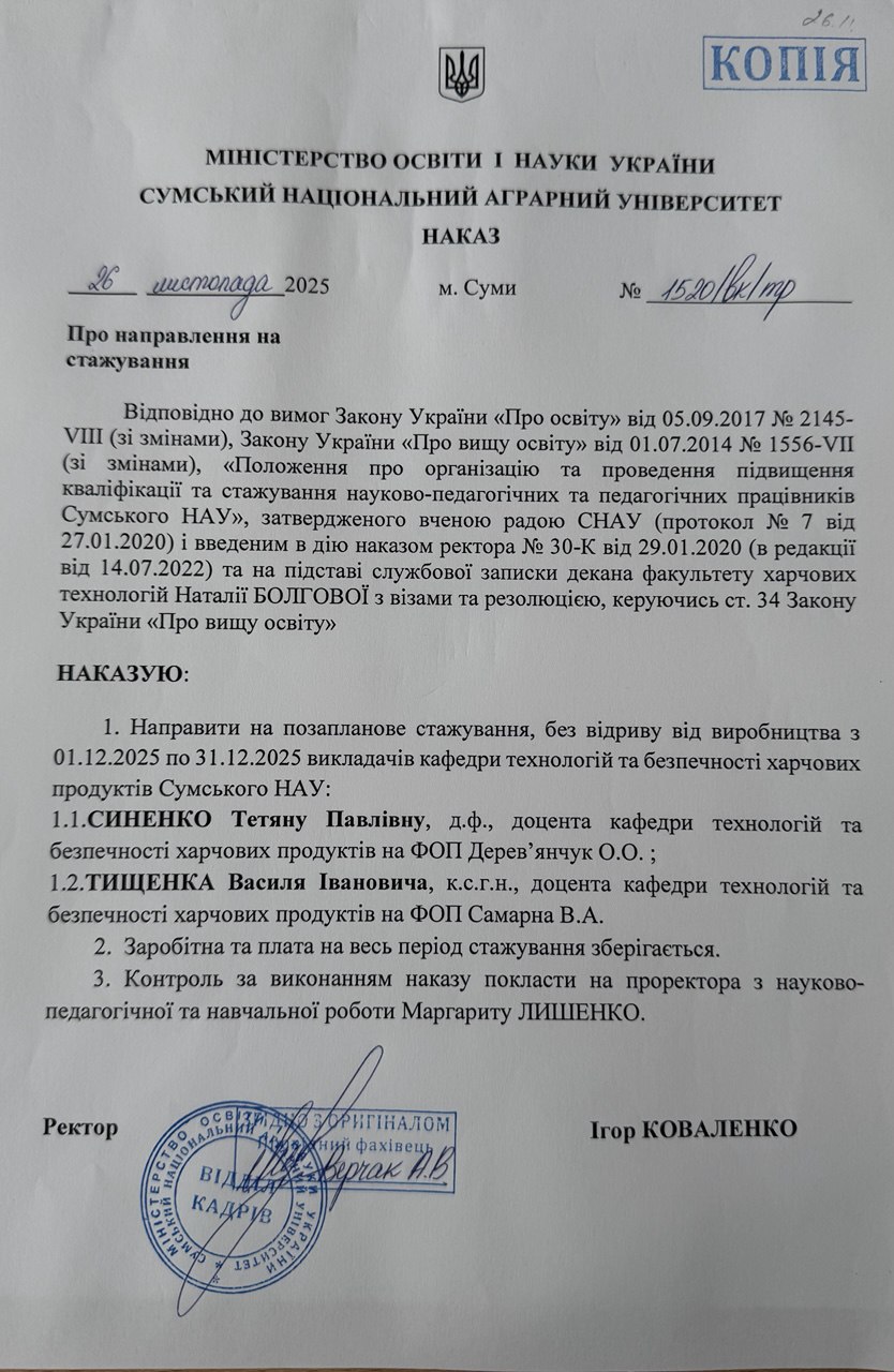 Витяг про розгляд та затвердження звітів про стажування НПП
