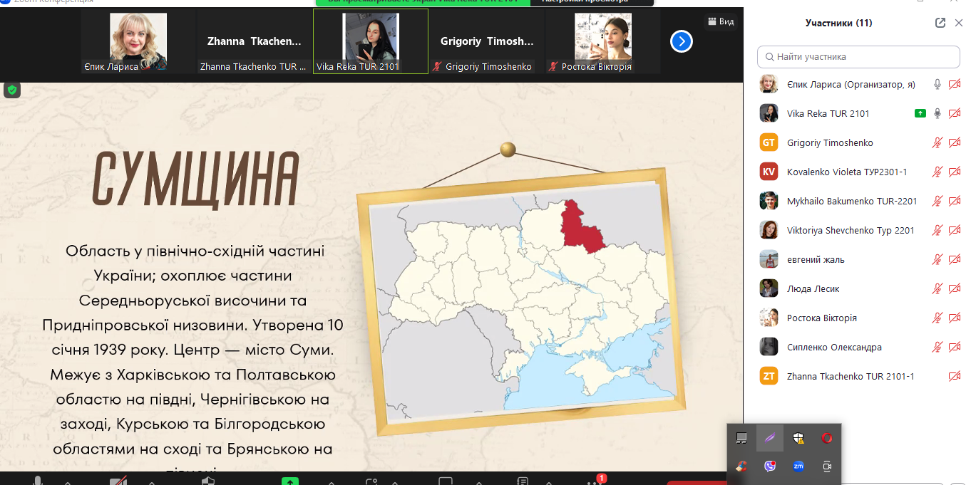 28 вересня 2023 року відбулося перше засідання наукового студентського гуртка «Етногеографія України: туристичні аспекти» під керівництвом доцента кафедри туризму СНАУ, кандидата історичних наук Єпик Лариси Іванівни.