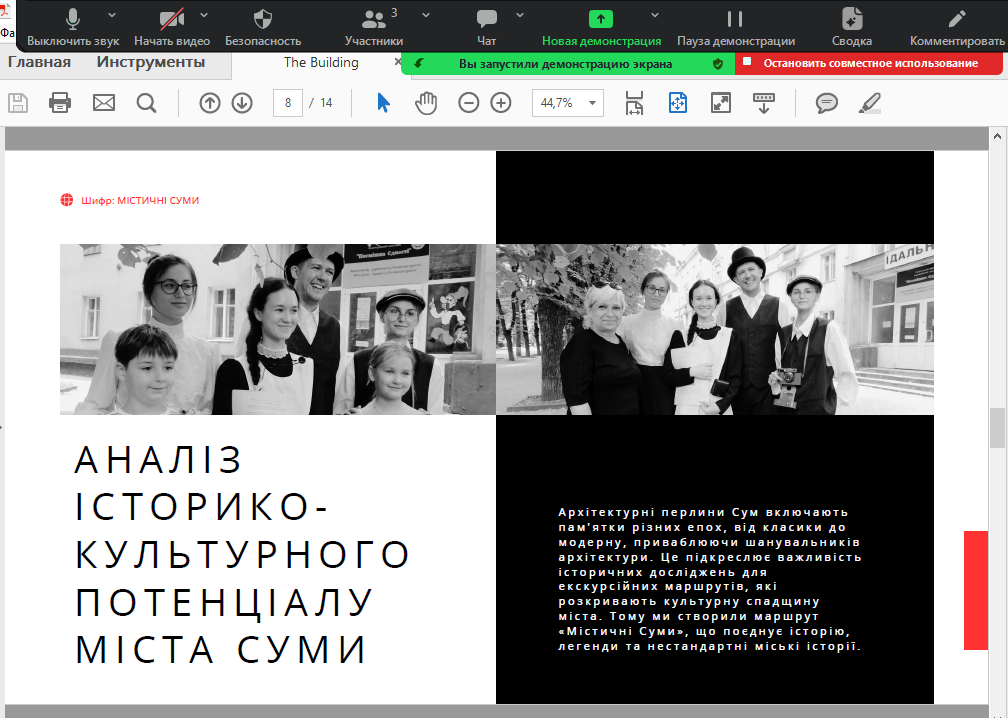 Друга частина засідання була присвячена висвітленню теми «Практика етногеографічної роботи: підготовка матеріалів, захист проєкту». Свої етногеографічні проєкти презентували Лесик Людмила – «Моя Полтавщина» та Оксененко Єлизавета – «Суми від давнини до сьогодення».