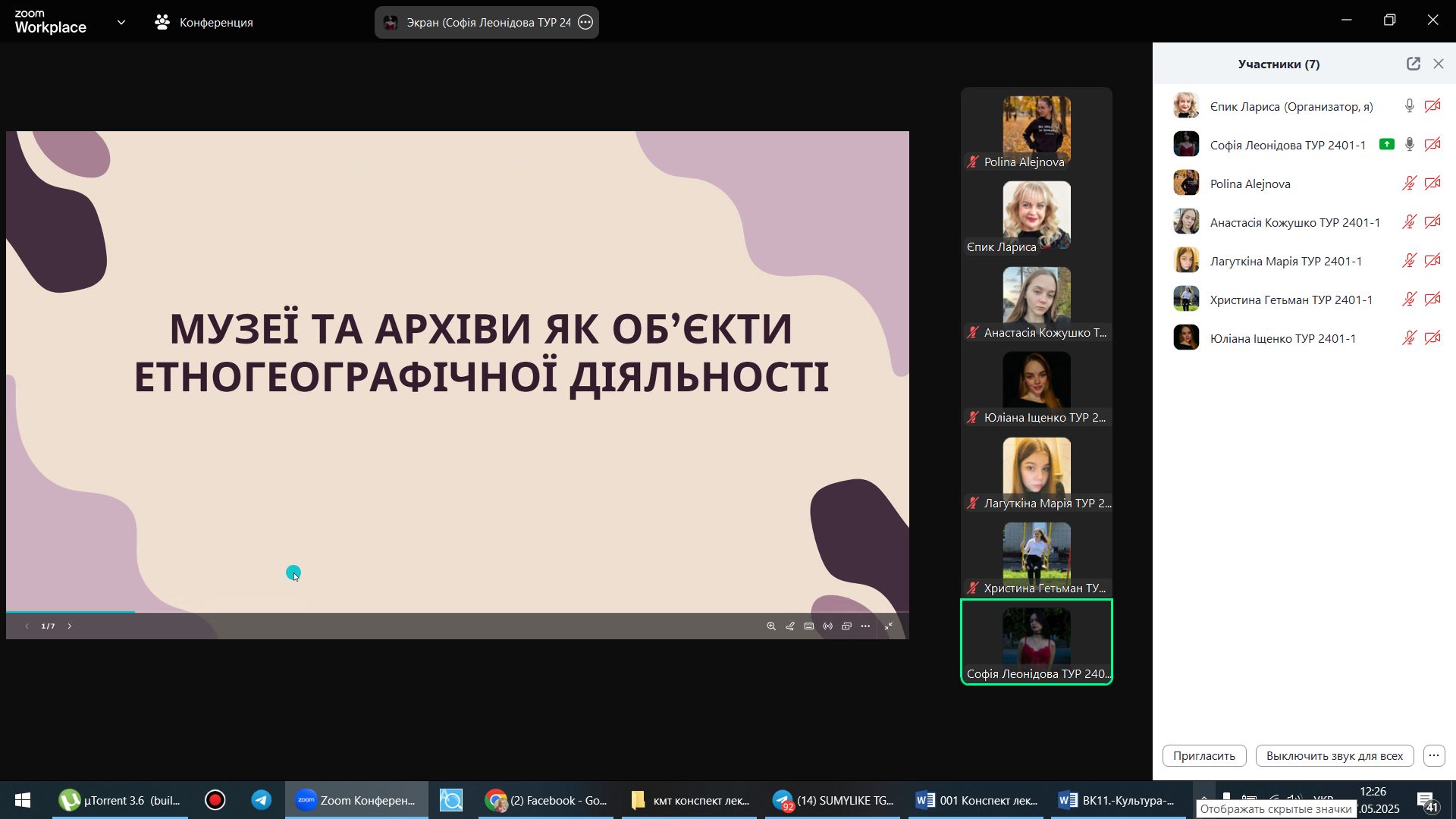 Наприкінці квітня відбулося чергове засідання студентського наукового гуртка, присвячене темі: «Музеї та архіви як об’єкти етногеографічної діяльності». Із головною доповіддю виступила студентка 1 курсу спеціальності 242 Туризм і рекреація, Леонідова Софія.