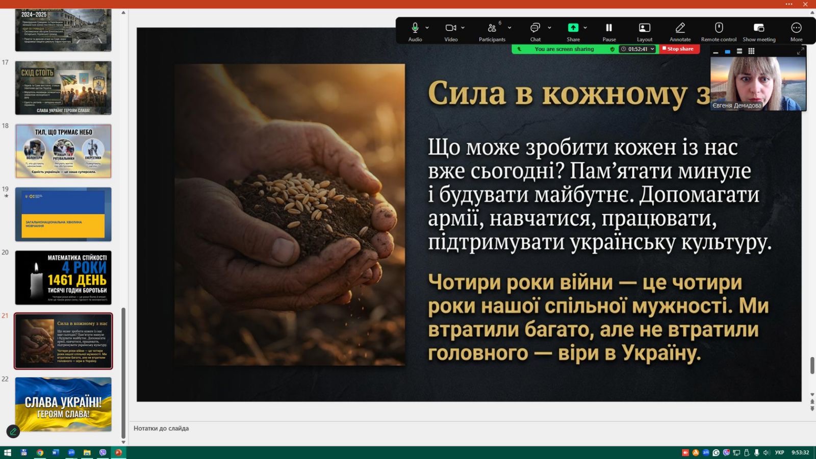 Четверта річниця повномасштабного вторгнення – це про біль, який не стихає, але й про віру, яка не згасає. Ми пам’ятаємо. Ми вистояли. Ми продовжуємо працювати, навчатися і підтримувати одне одного заради спільної мети – мирного, вільного та гідного майбутнього України.