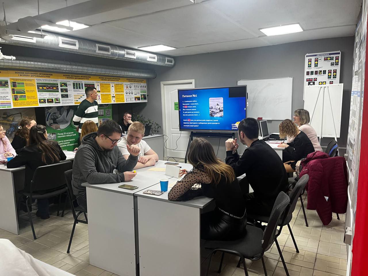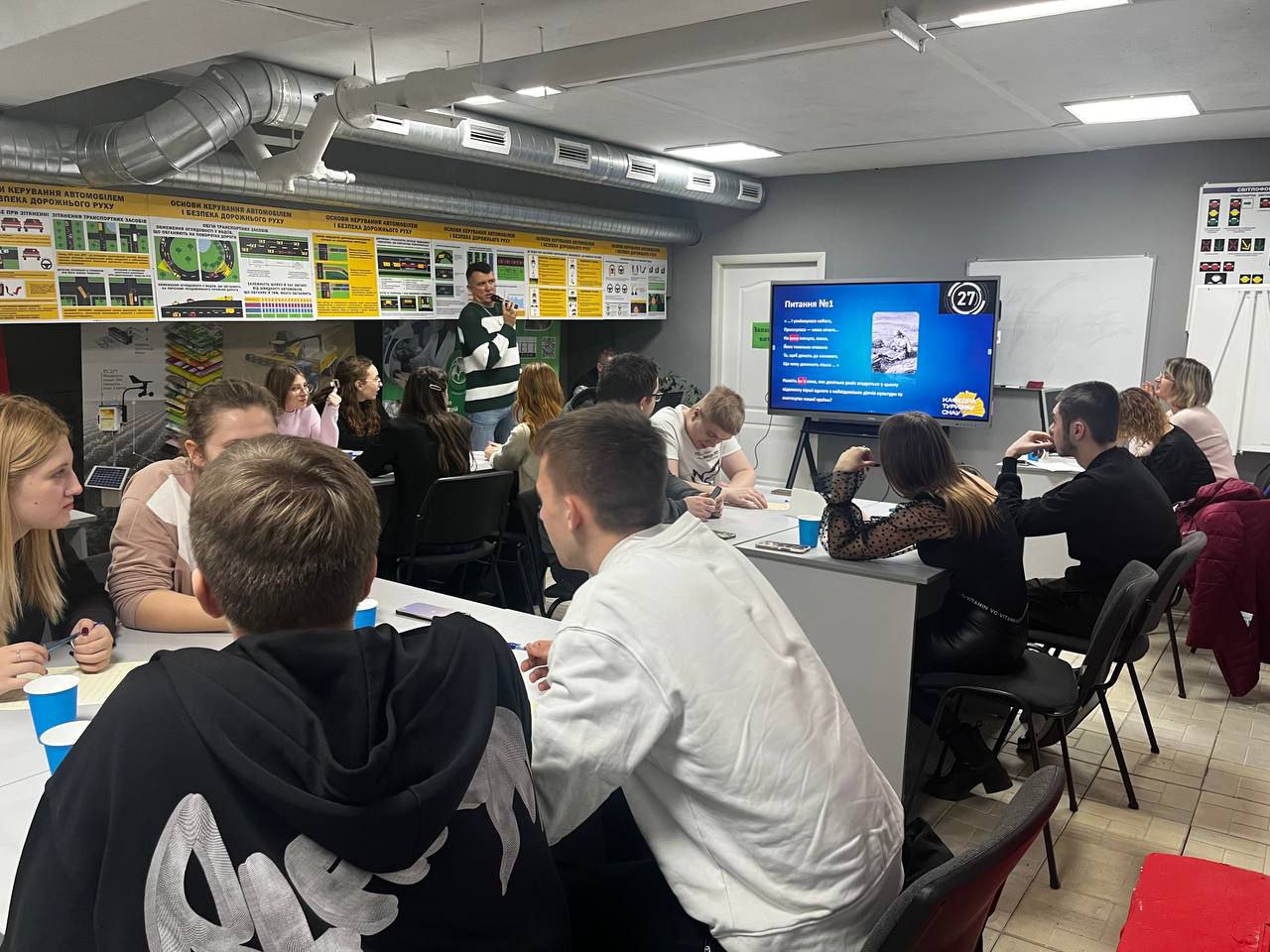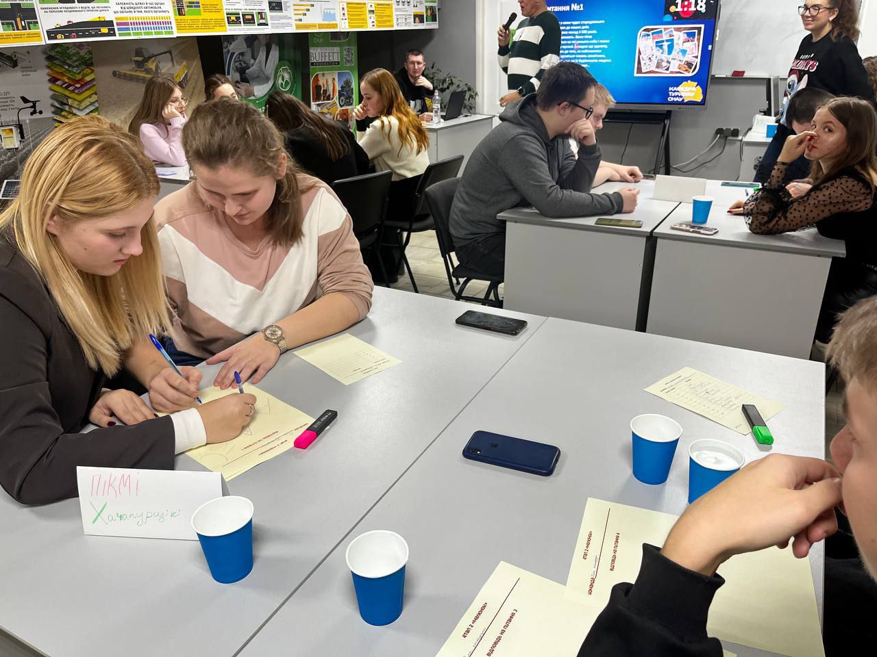 💡 Розділившись на команди студенти із захопленням слухали завдання кожного блоку, що презентував ведучий Квізу Олександр Коваленко, жваво обговорювали, відмічали, писали і навіть малювали варіанти відповідей.