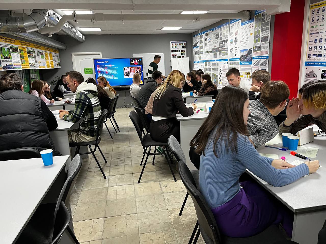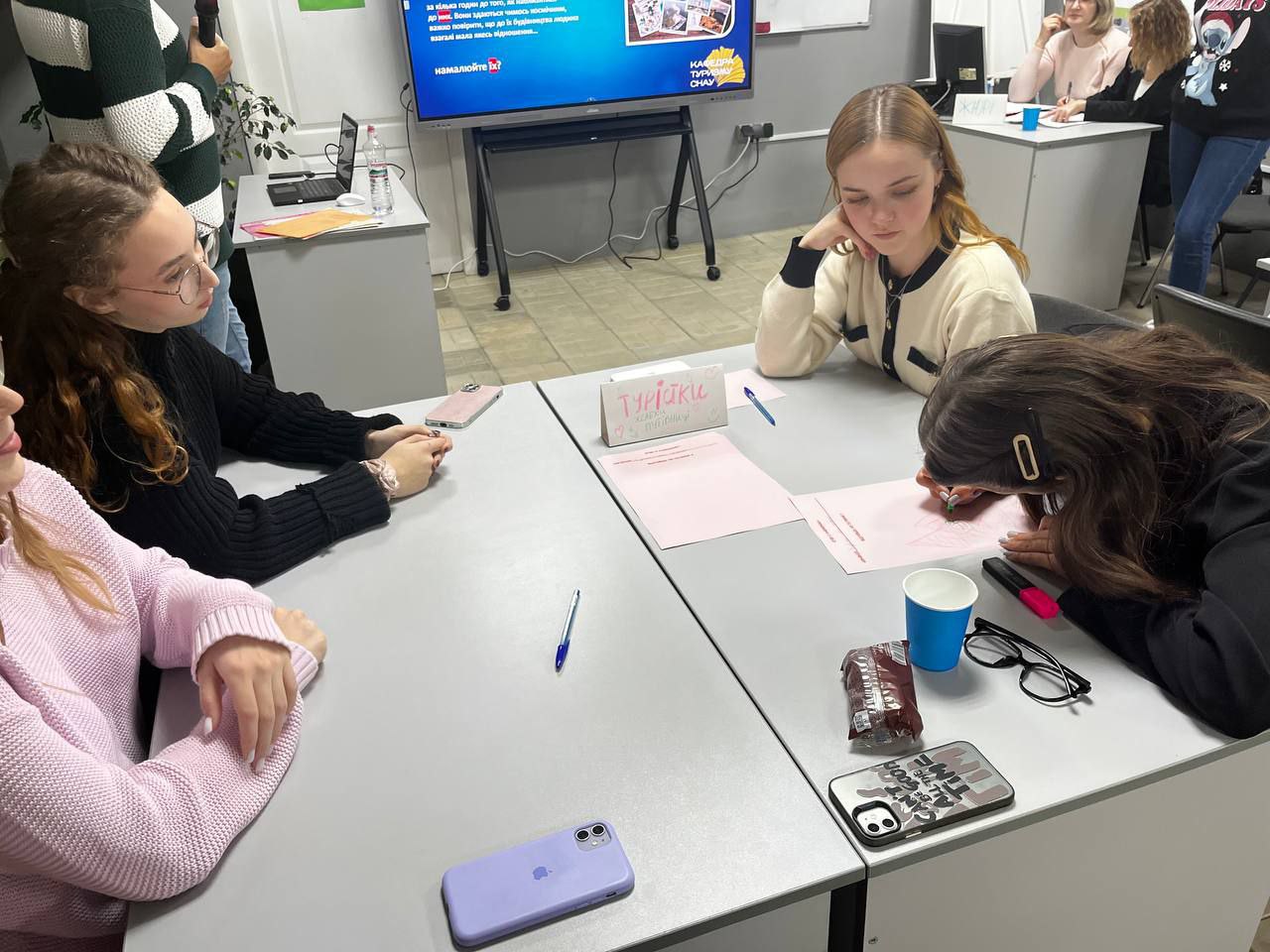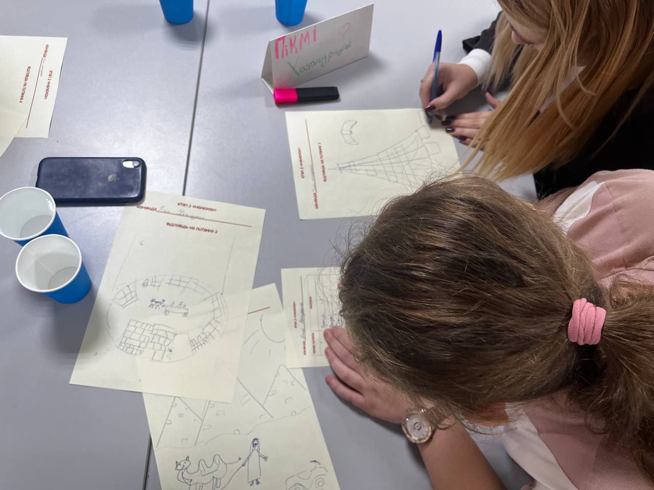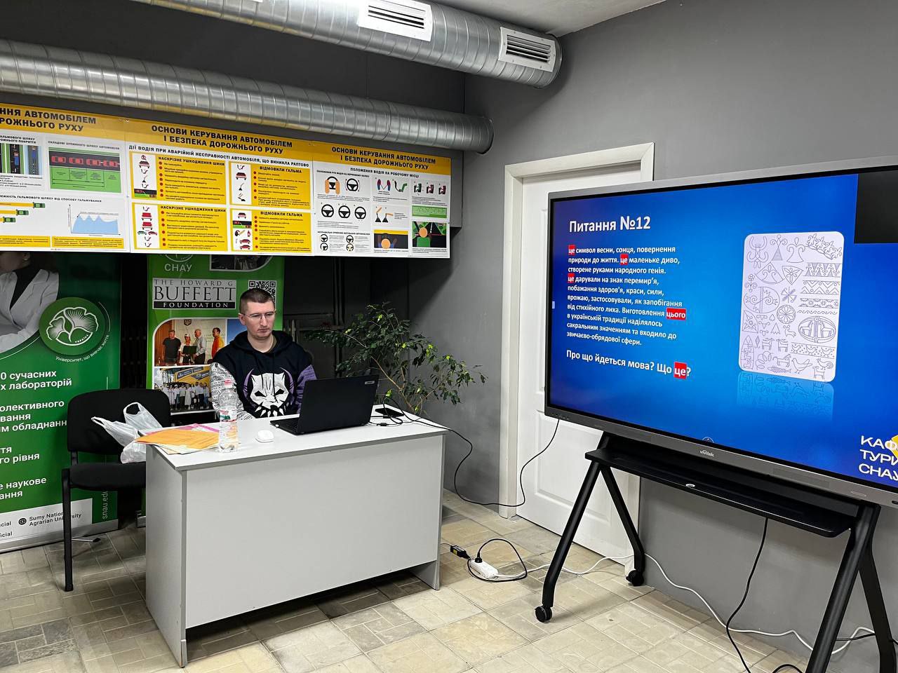 💡 Розділившись на команди студенти із захопленням слухали завдання кожного блоку, що презентував ведучий Квізу Олександр Коваленко, жваво обговорювали, відмічали, писали і навіть малювали варіанти відповідей.