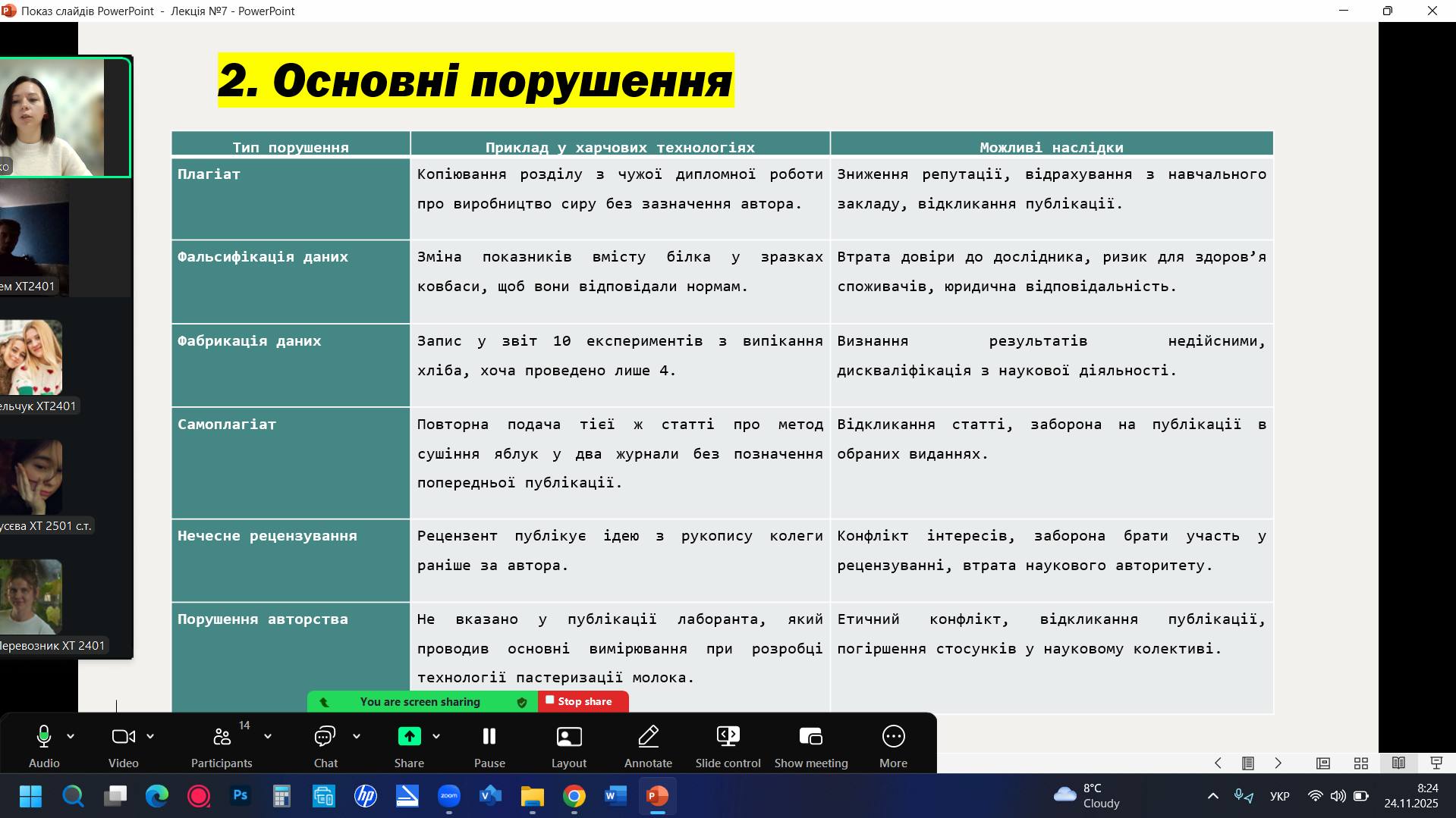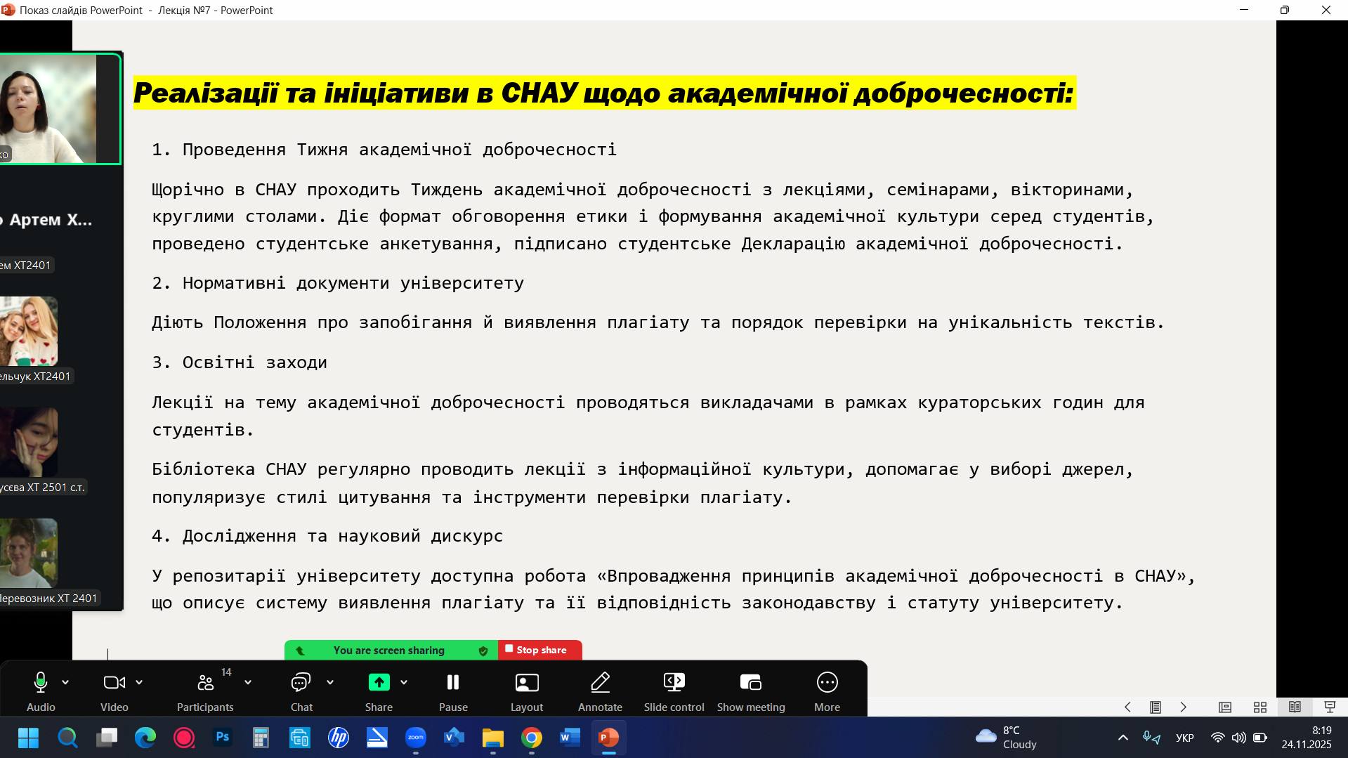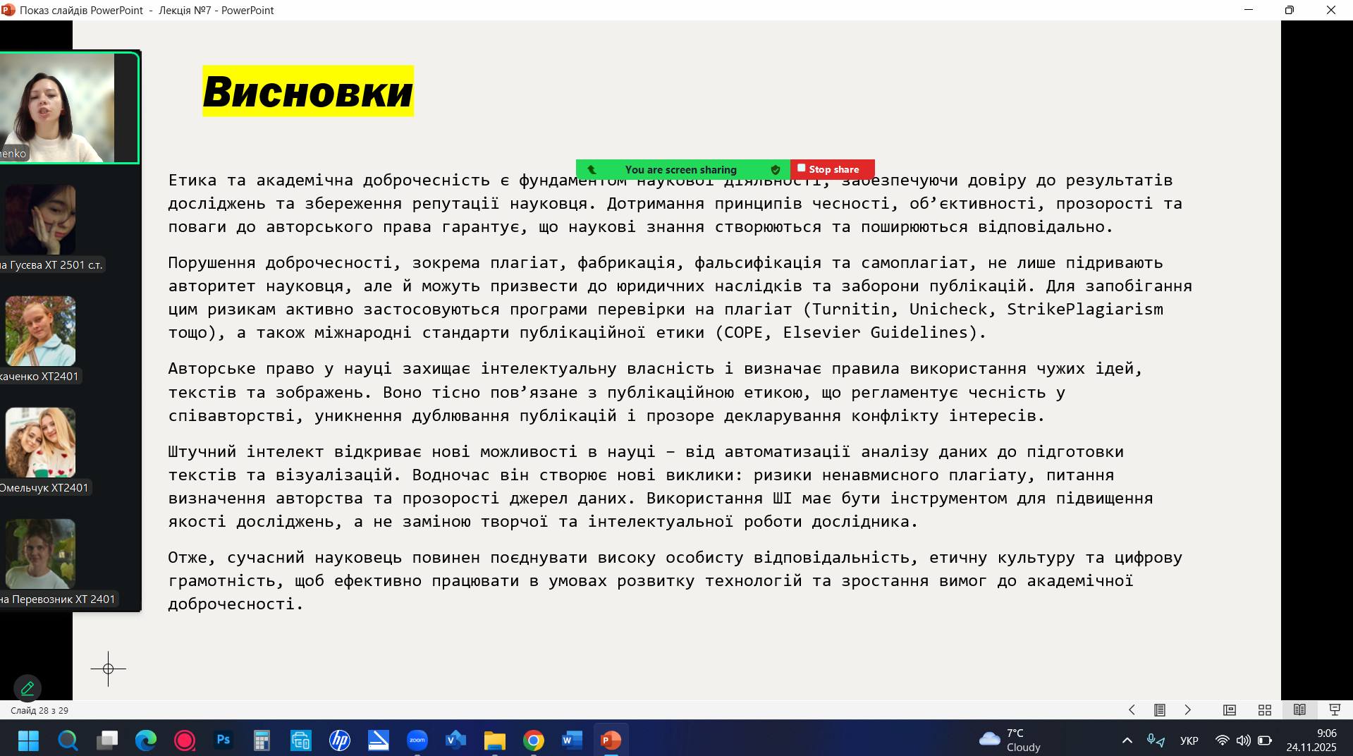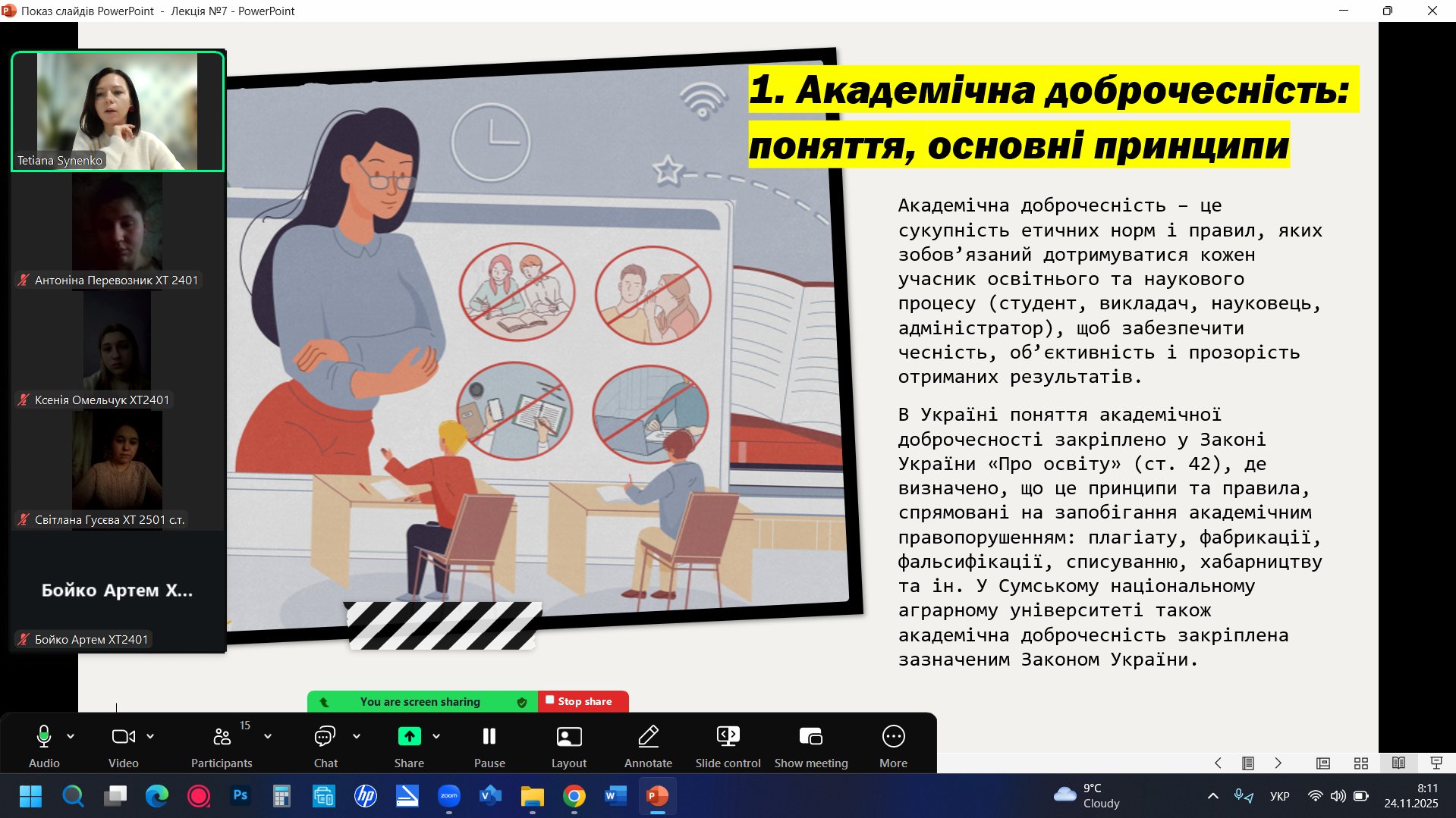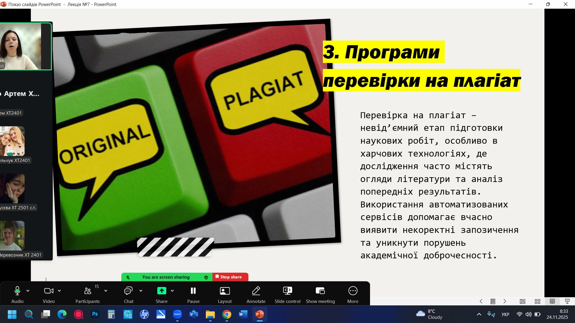 У рамках Тижня академічної доброчесності Сумського НАУ та в межах вивчення дисципліни «Основи наукових досліджень» відбулася тематична лекція для здобувачів спеціальності «Харчові технології».