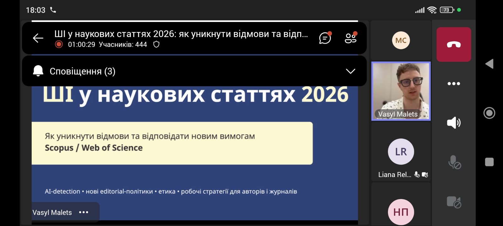4 лютого 2026 року – доцент кафедри технології харчування Марина Савченко успішно завершила онлайн-вебінар “ШІ у наукових статтях 2026: як уникнути відмови та відповідати новим вимогам Scopus”. Вебінар був присвячений актуальним питанням використання штучного інтелекту в академічних дослідженнях, стратегіям уникнення відмов від рецензентів та адаптації до оновлених стандартів бази даних Scopus.
