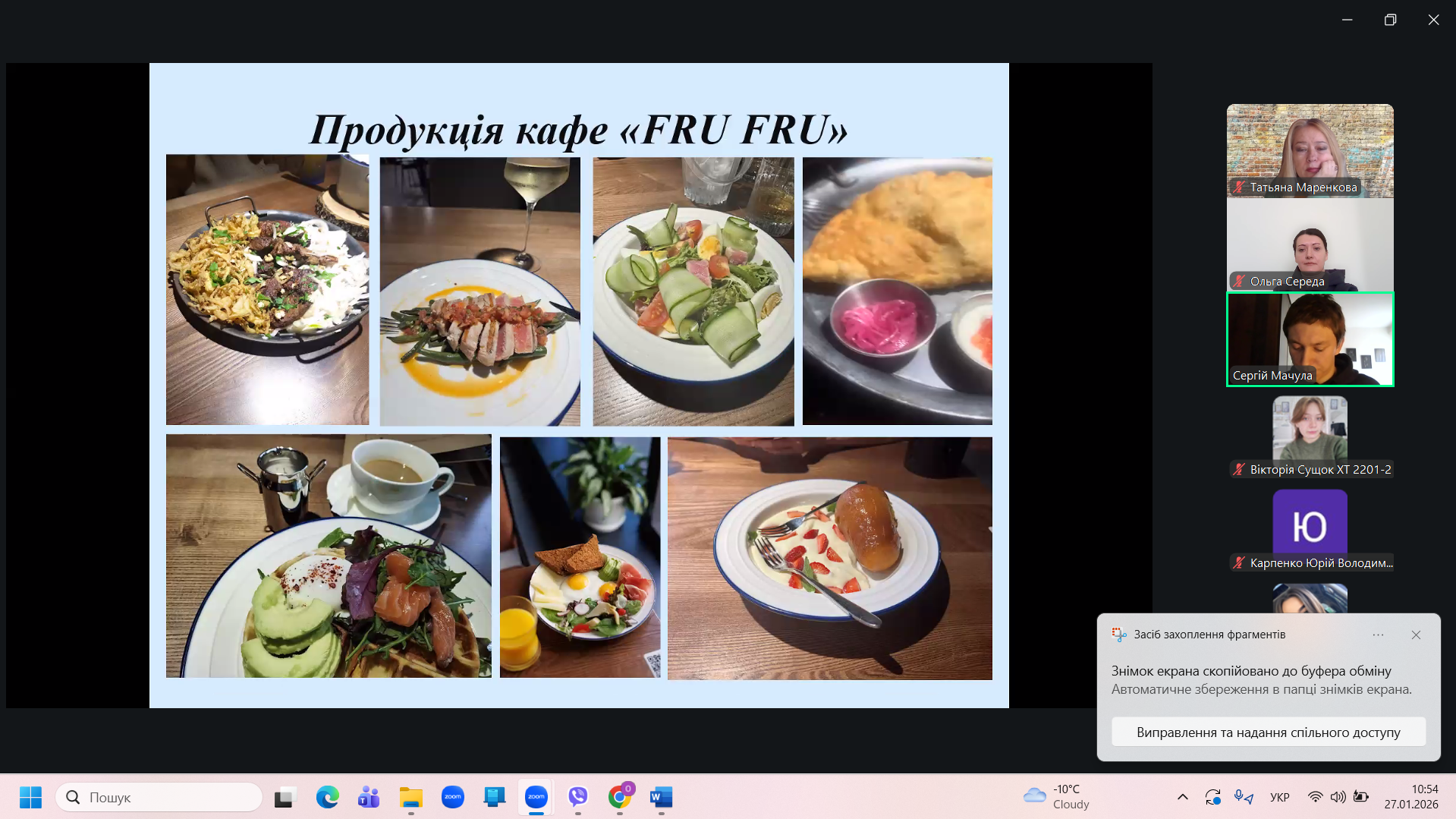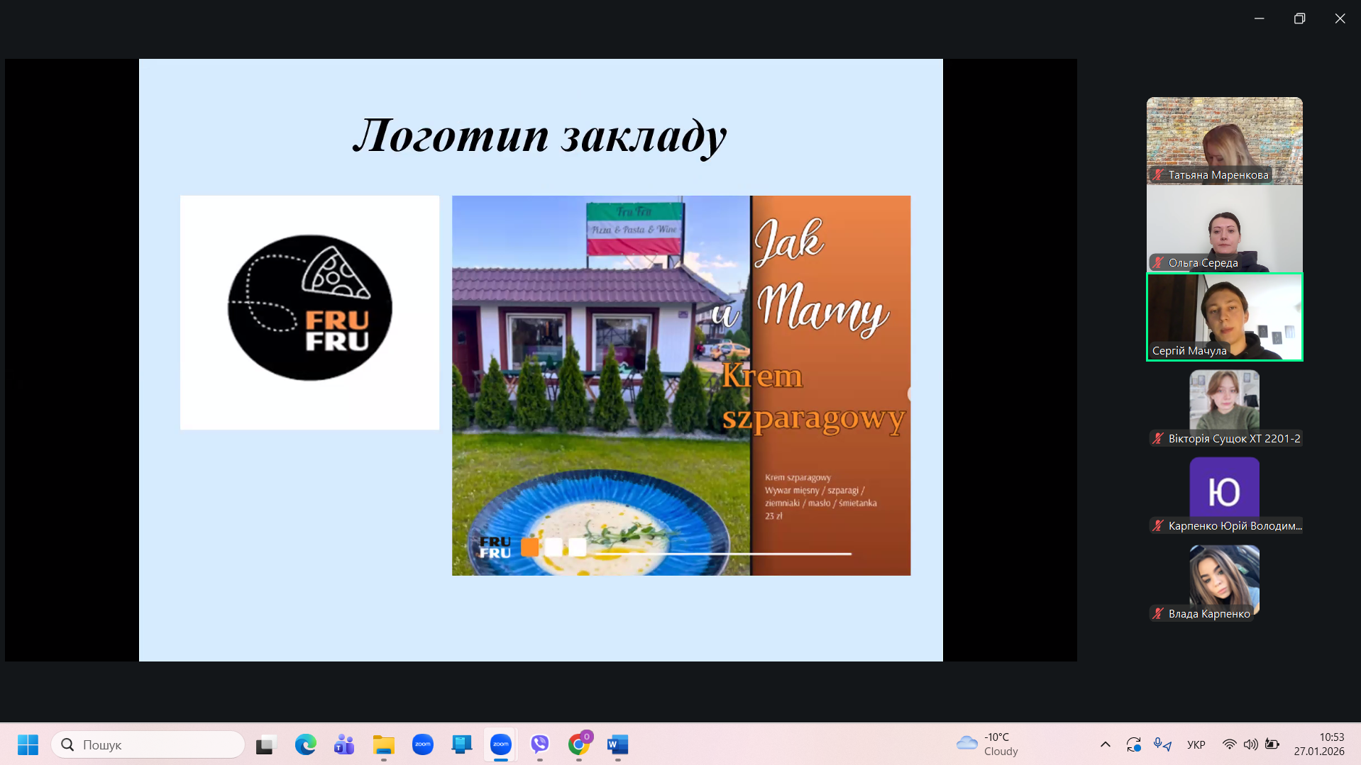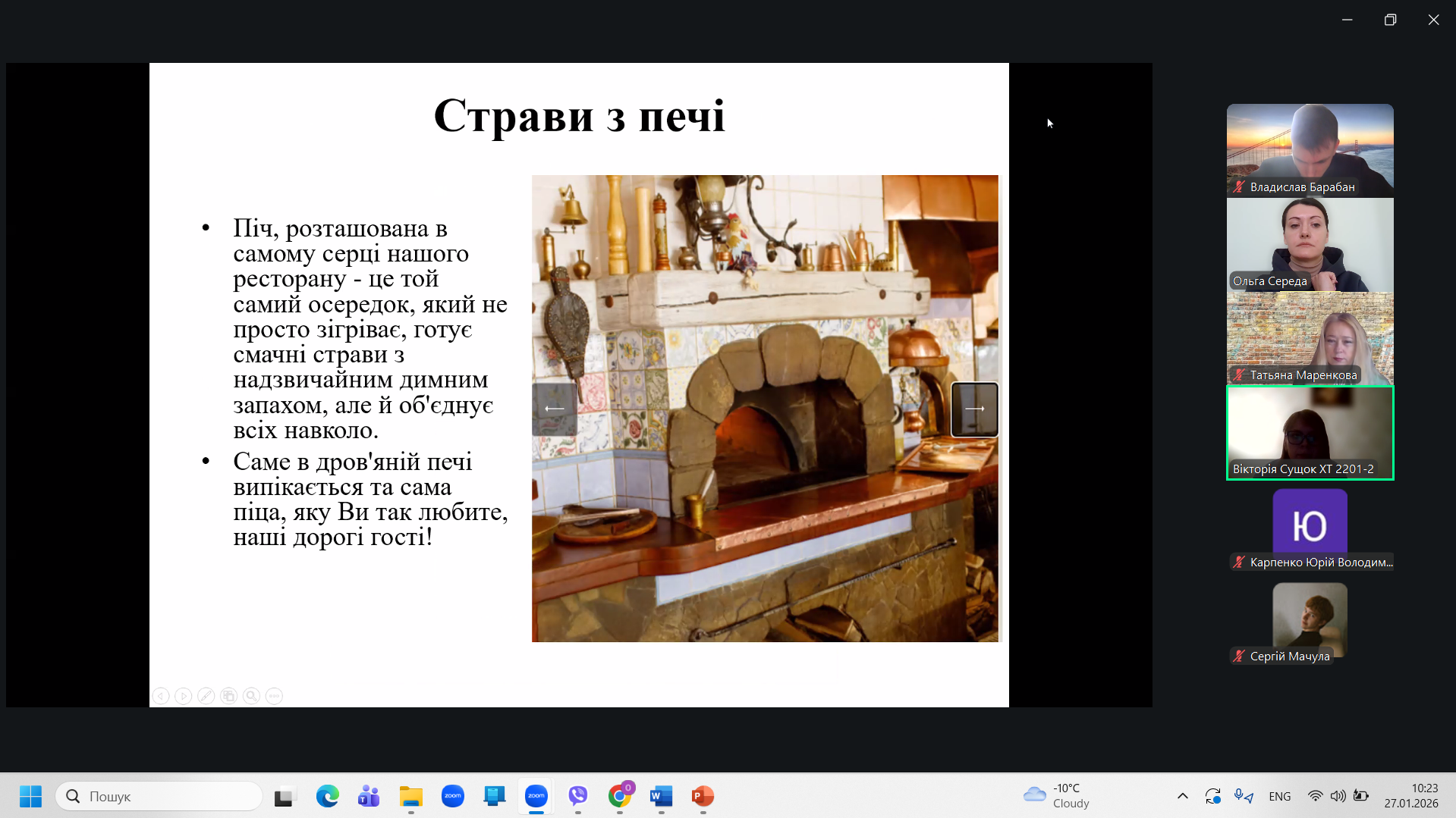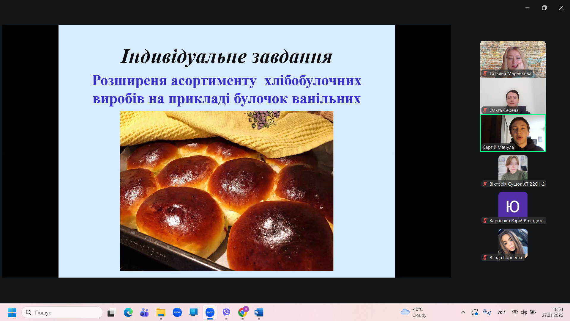 27 січня 2026 року на факультеті харчових технологій в онлайн-форматі відбувся захист звітів з переддипломної практики здобувачів вищої освіти 3 с.т. та 4 курсу освітнього ступеня «Бакалавр», які навчаються за освітньо-професійними програмами «Харчові технології», «Крафтові технології та гастрономічні інновації» та «Готельно-ресторанна справа».