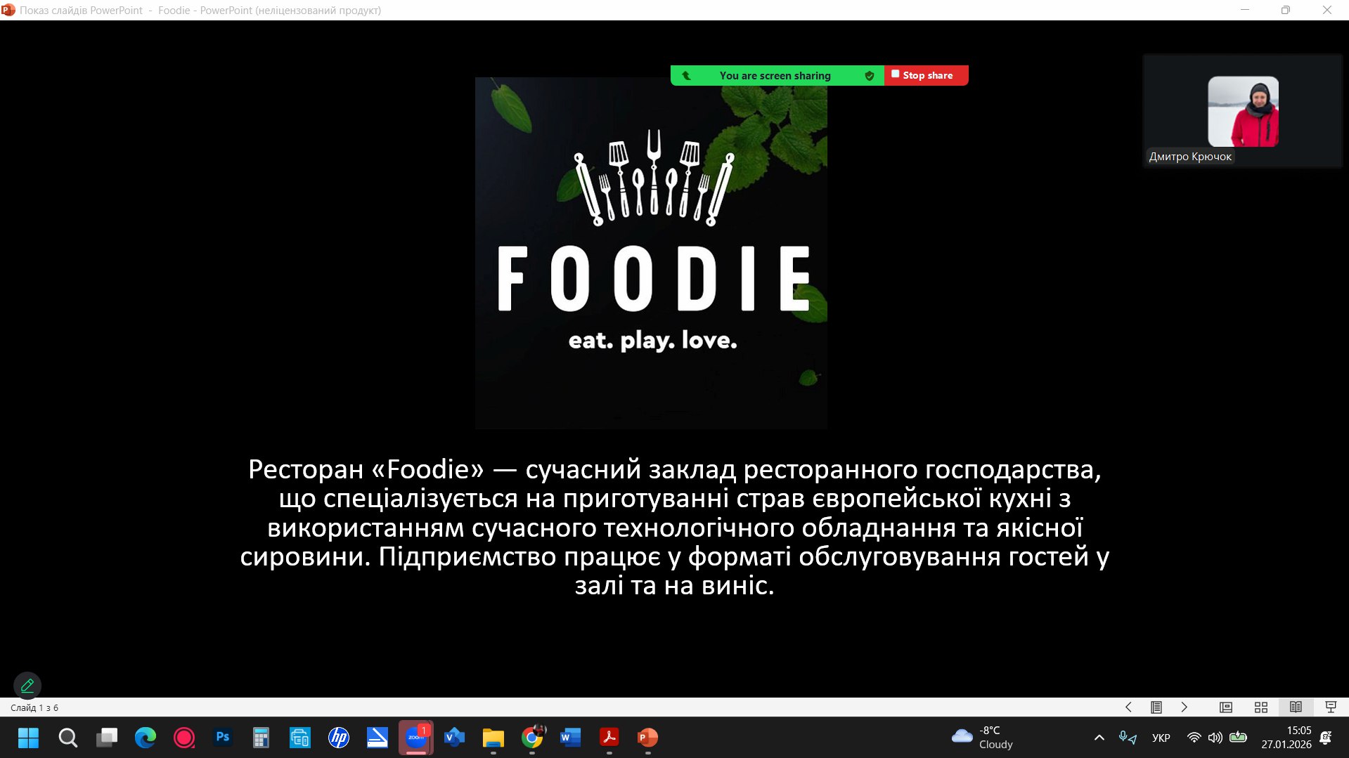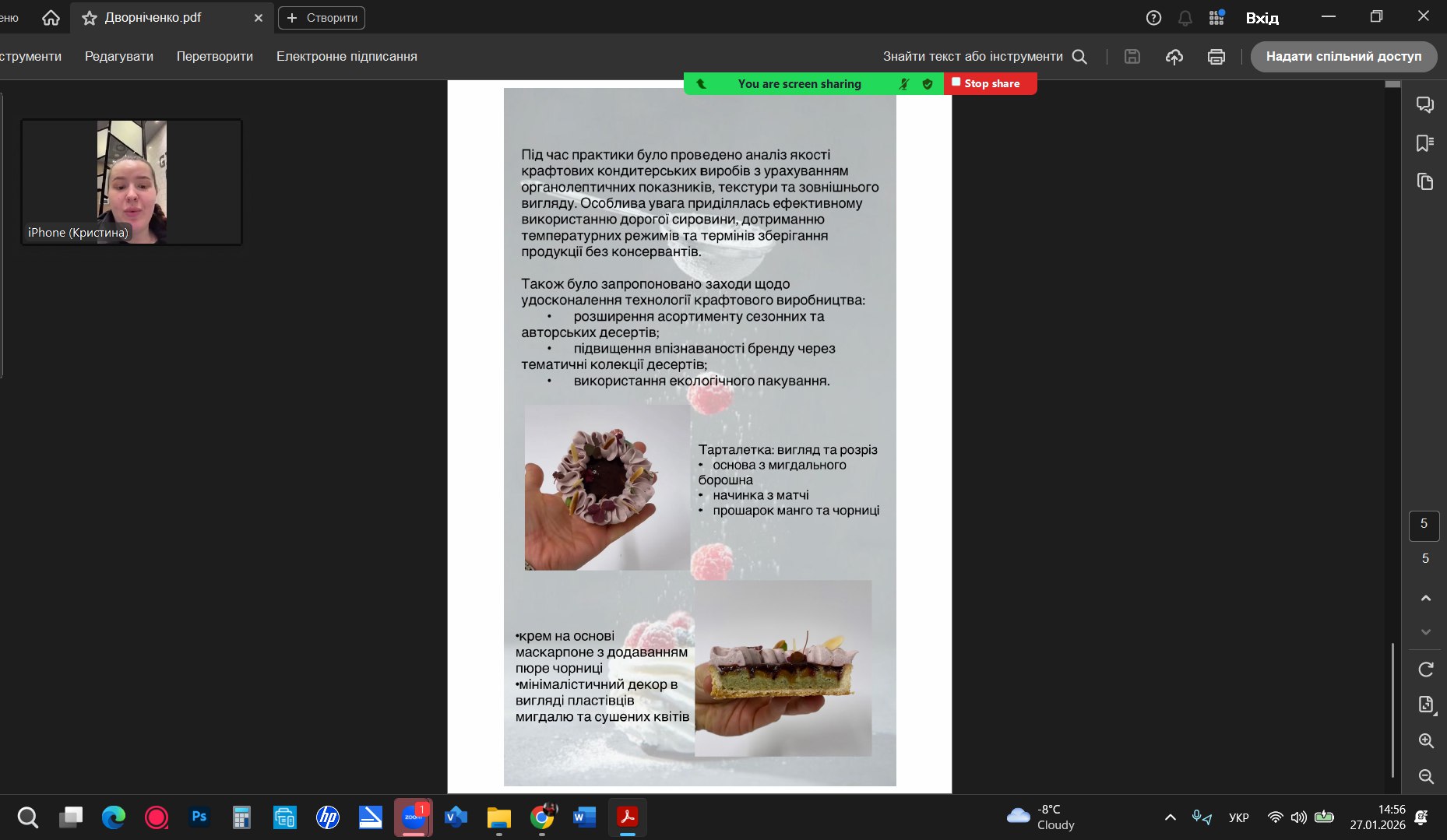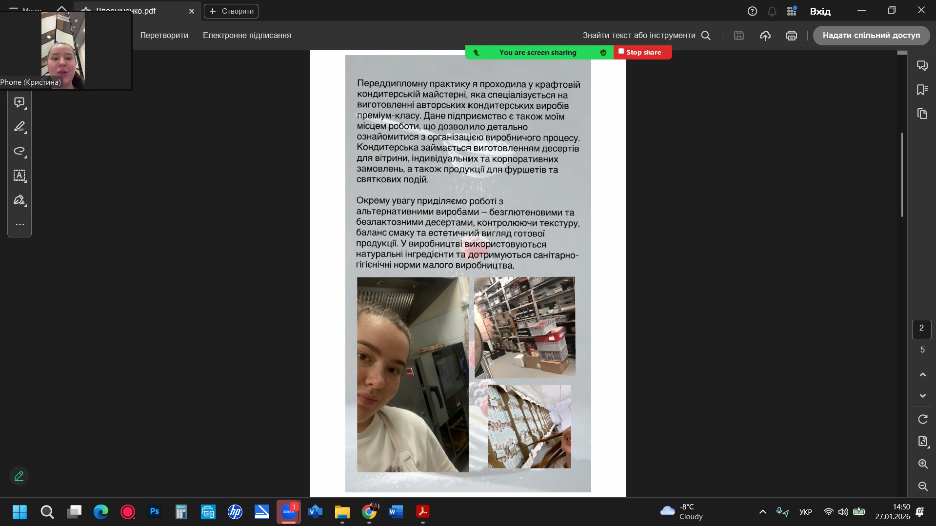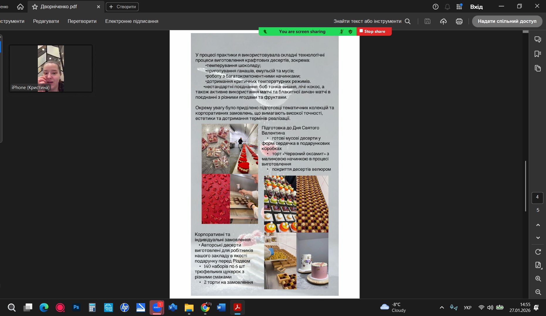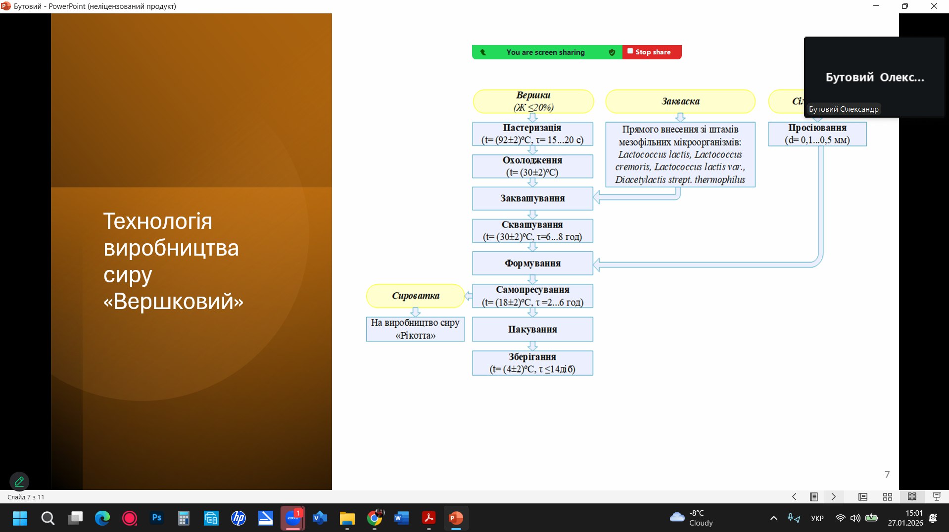 27 січня 2026 року на факультеті харчових технологій в онлайн-форматі відбувся захист звітів з переддипломної практики здобувачів вищої освіти 3 с.т. та 4 курсу освітнього ступеня «Бакалавр», які навчаються за освітньо-професійними програмами «Харчові технології», «Крафтові технології та гастрономічні інновації» та «Готельно-ресторанна справа».