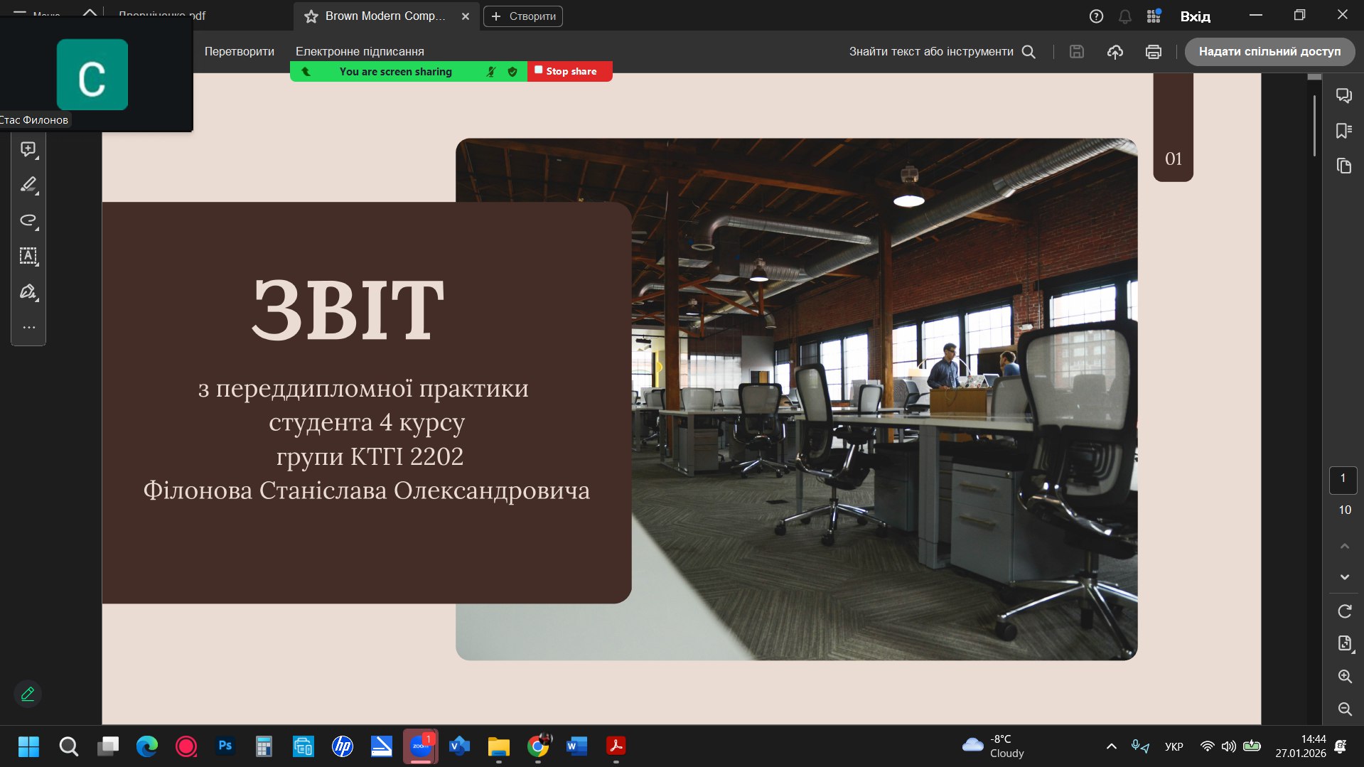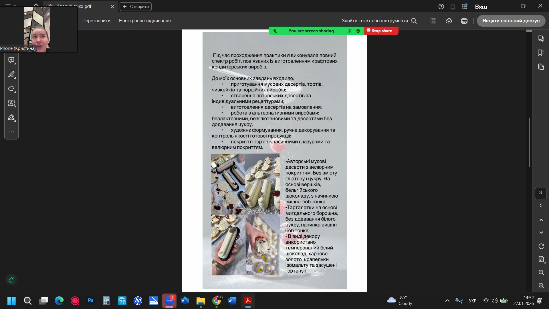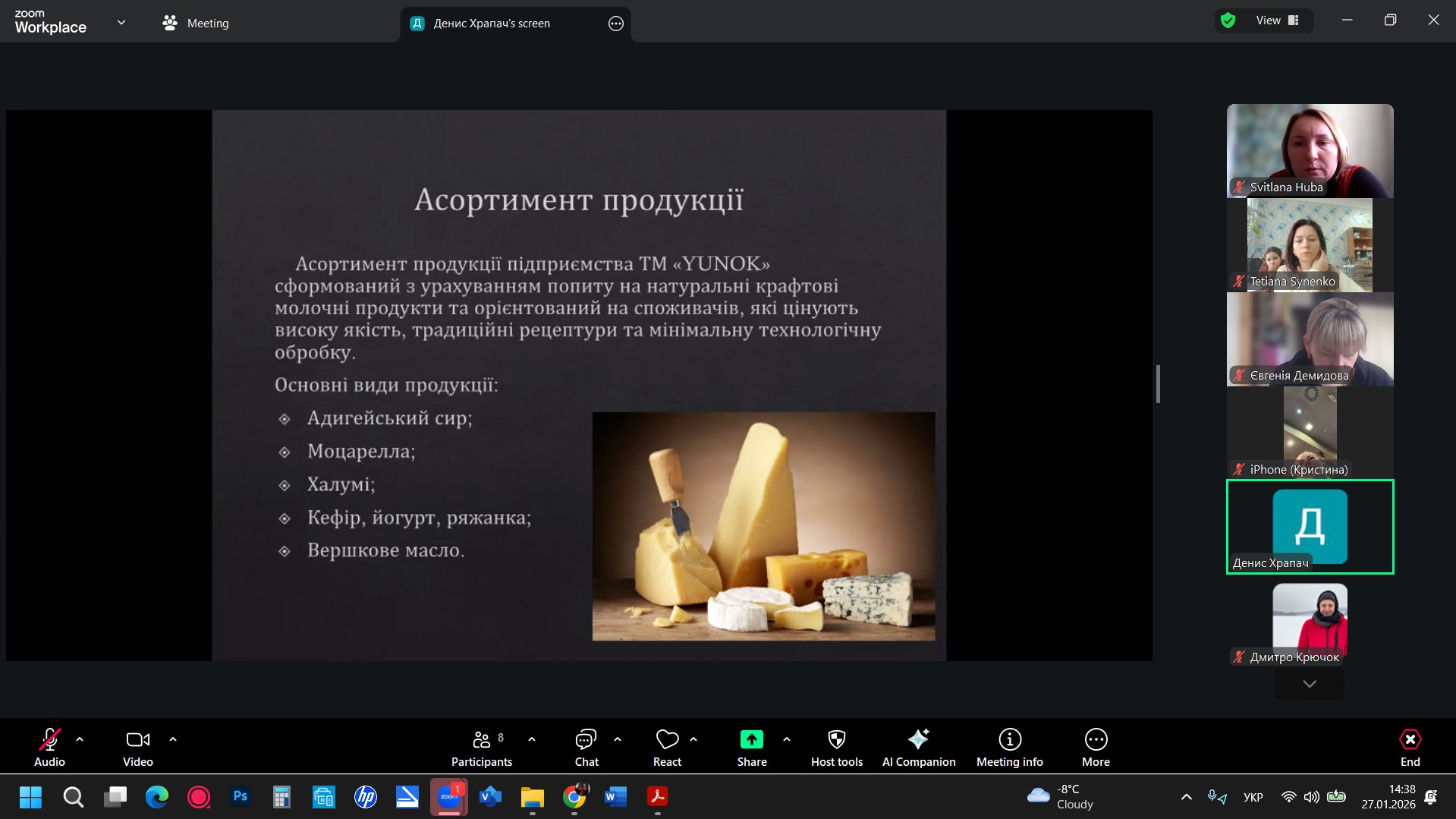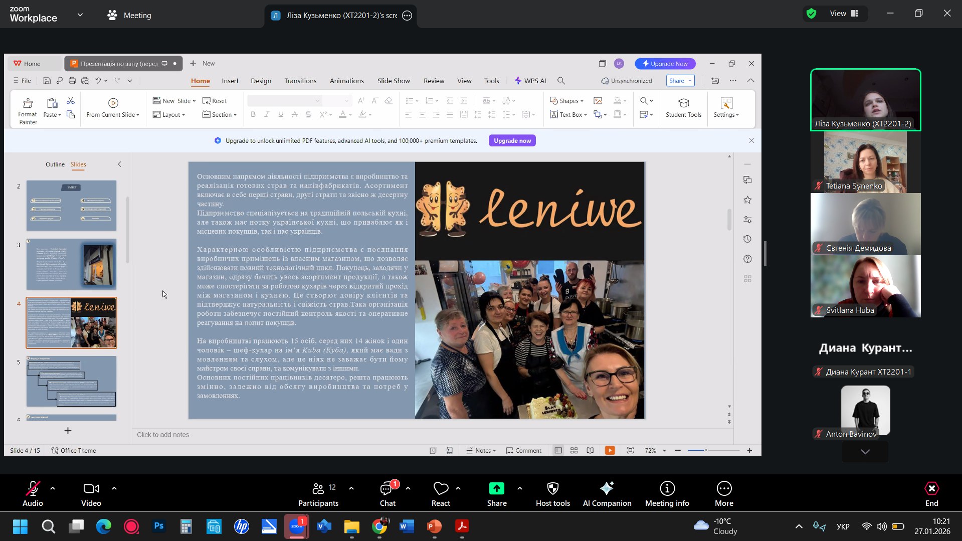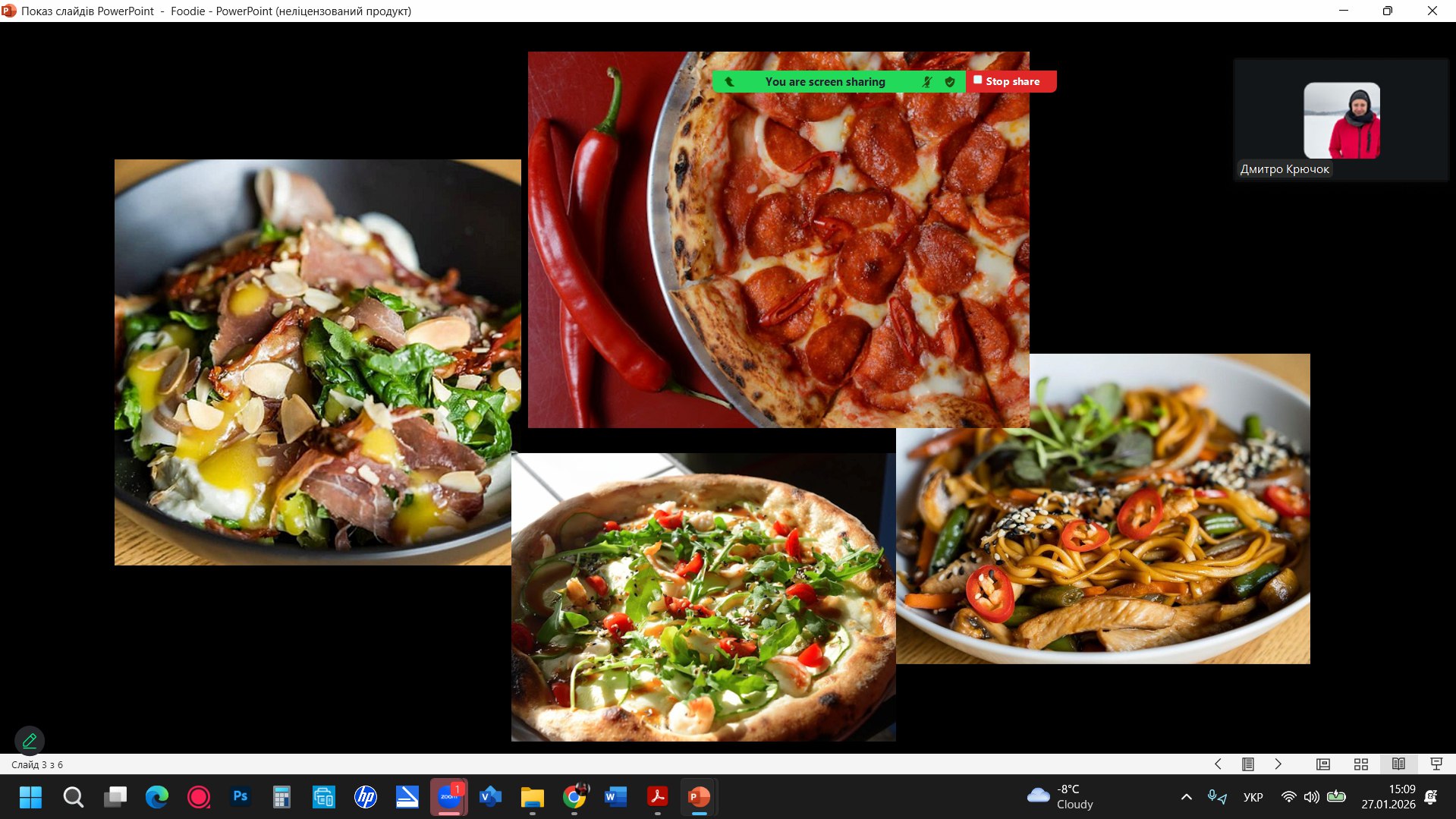 27 січня 2026 року на факультеті харчових технологій в онлайн-форматі відбувся захист звітів з переддипломної практики здобувачів вищої освіти 3 с.т. та 4 курсу освітнього ступеня «Бакалавр», які навчаються за освітньо-професійними програмами «Харчові технології», «Крафтові технології та гастрономічні інновації» та «Готельно-ресторанна справа».