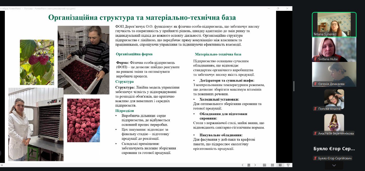Під час захисту здобувачі вищої освіти висвітлили основні результати практичної підготовки, продемонстрували сформовані базові професійні знання та практичні навички, уміння застосовувати теоретичні знання у виробничих умовах, дотримуватися технологічних і санітарно-гігієнічних вимог, а також аналізувати організацію роботи підприємств.