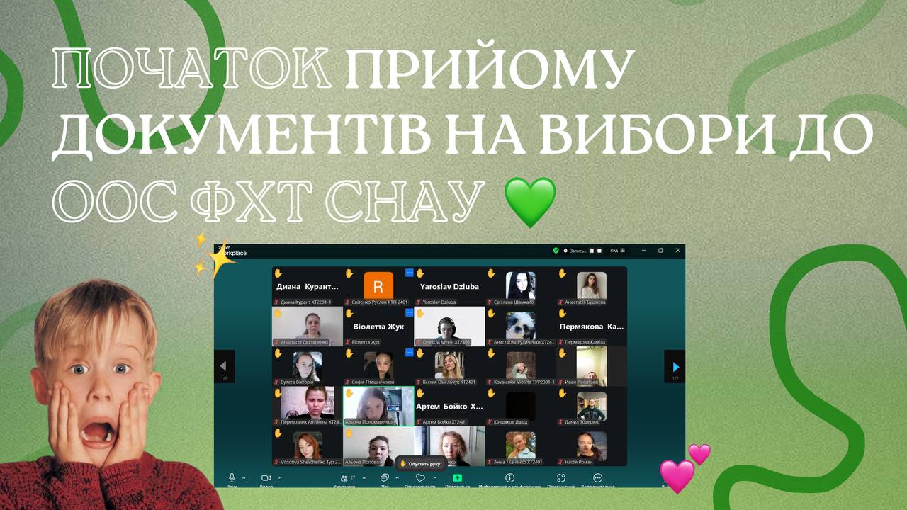 ✅ Після затвердження складу ВК новообрані члени комісії провели перше засідання, де обрали голову (БУЯЛО Єгор), секретаря (ХАРЧЕНКО Анастасія) і членів лічильної комісії (ЛЕОНІДОВА Софія, КОШЕЛЄВ Нікіта, БЕРЕЗОВ Владислав) та ухвалили рішення про оголошення початку прийому документів на участь у виборах до органів студентського самоврядування факультету харчових технологій СНАУ.