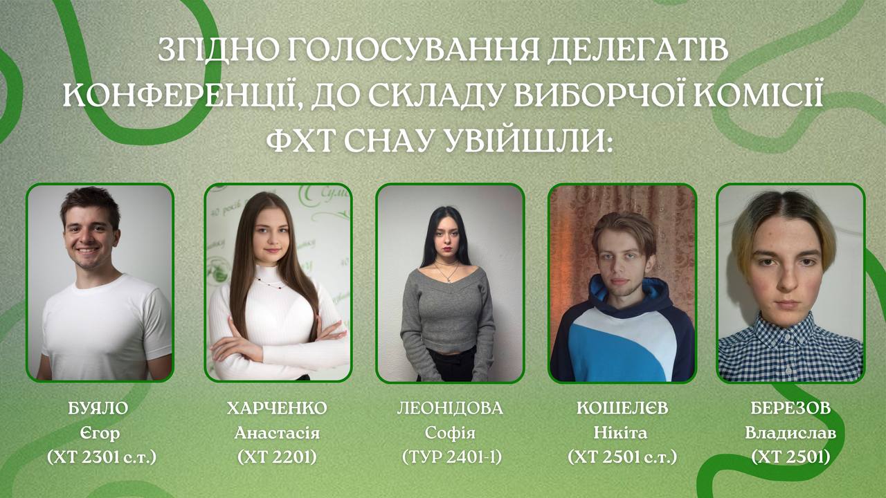 ➡️ Згідно голосування делегатів Конференції, до складу виборчої комісії ФХТ СНАУ увійшли: