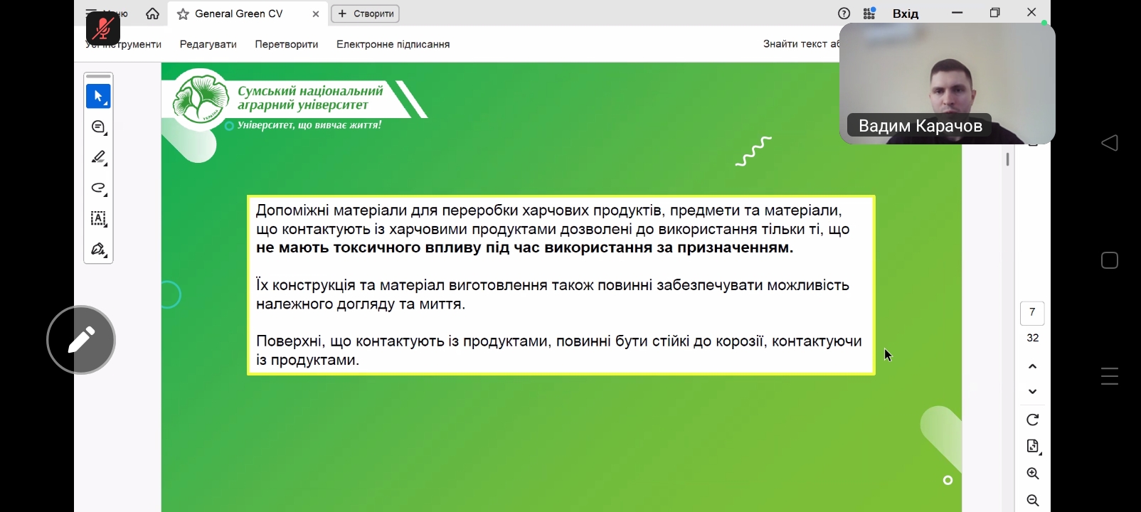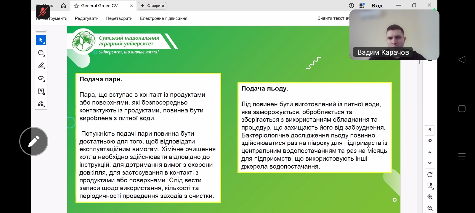 У межах виконання програми педагогічної практики аспірант кафедри технологій та безпечності харчових продуктів Вадим Карачов провів лекційне заняття для здобувачів ступеня вищої освіти «Бакалавр» освітньої програми «Крафтові технології та гастрономічні інновації».