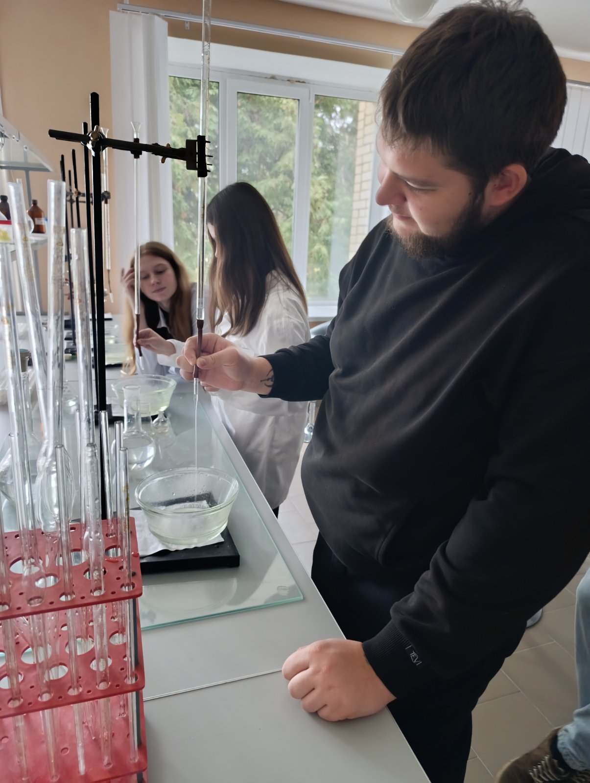 Студенти 1 курсу факультету харчових технологій протягом усього семестру вивчали курс хімії, що охоплює ключові для майбутніх фахівців теми із загальної, аналітичної, фізичної, колоїдної та органічної хімії. Після опанування теорії настав час практики — 3 грудня 2025 року студенти зібралися в хімічній лабораторії, щоб виконати комплексний аналіз харчових продуктів.