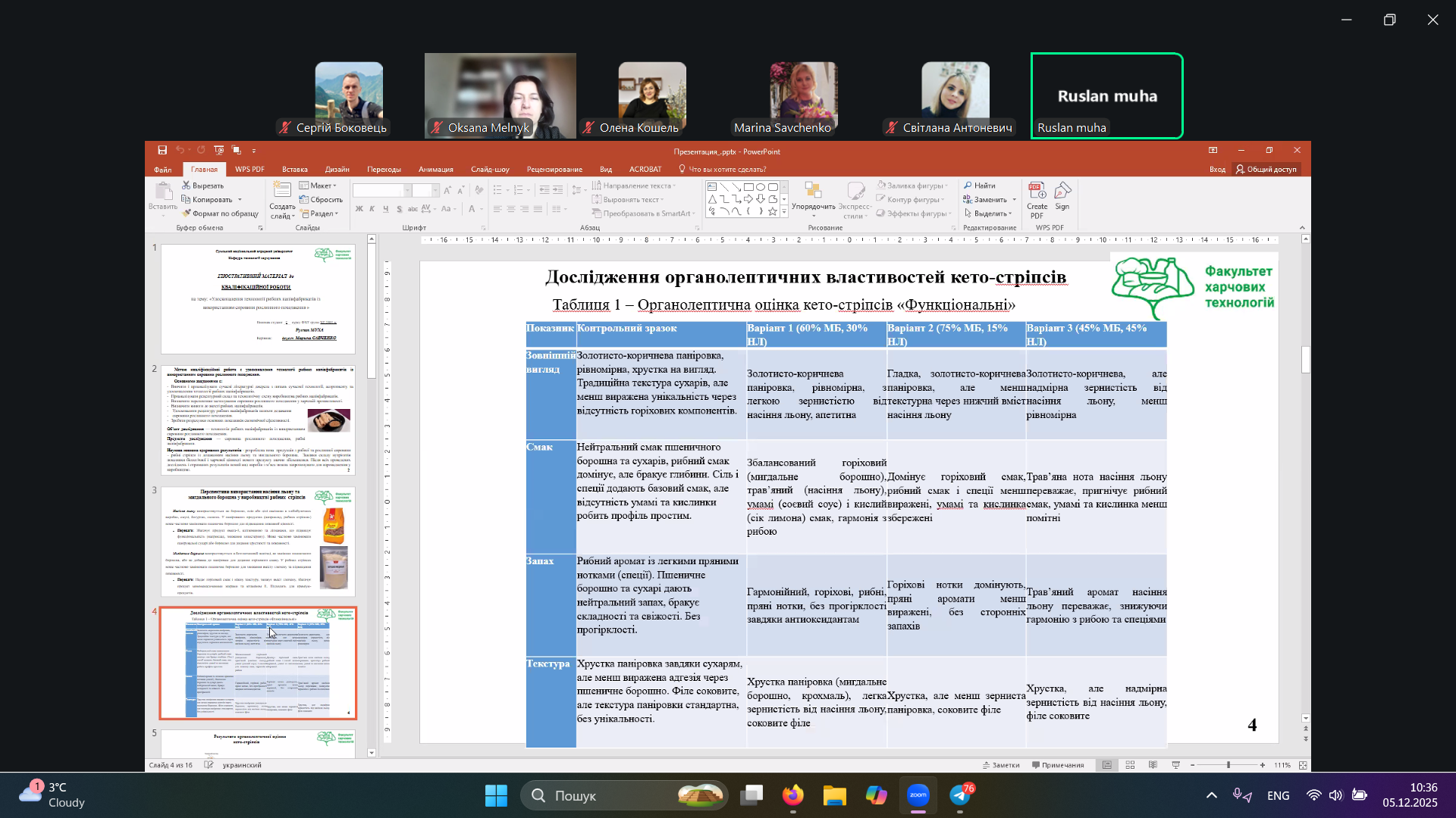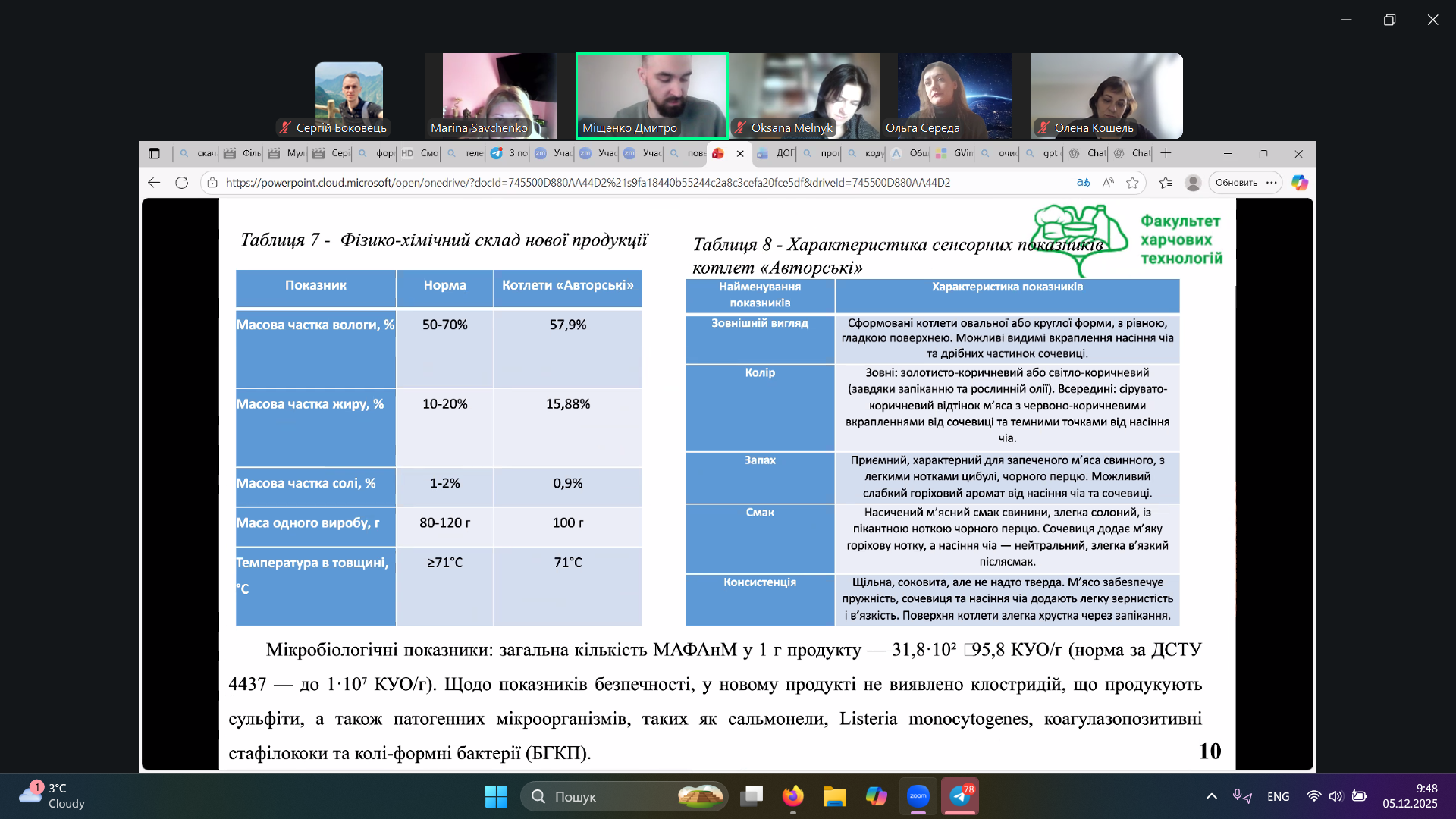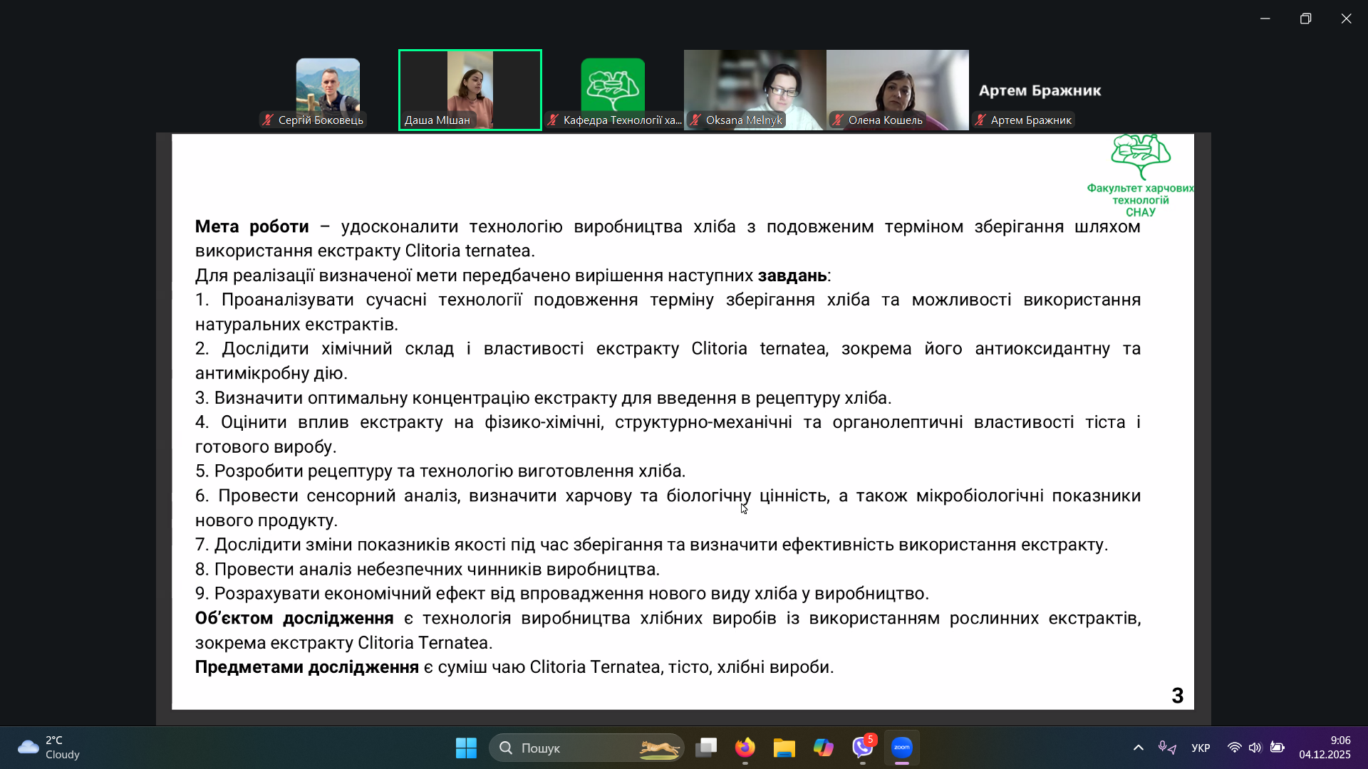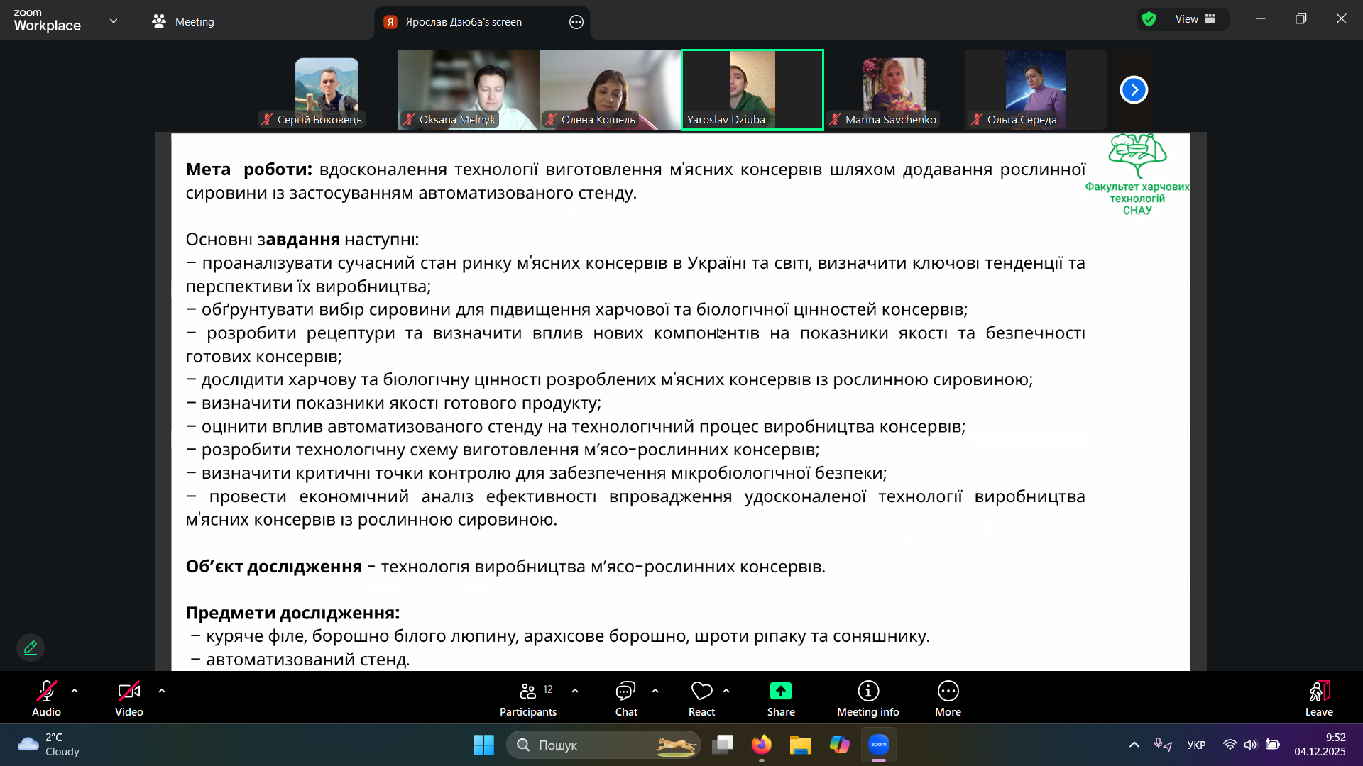 4 та 5 грудня 2025 року на кафедрі технології харчування успішно відбувся попередній захист кваліфікаційних робіт здобувачів, який проходив у онлайн-форматі.