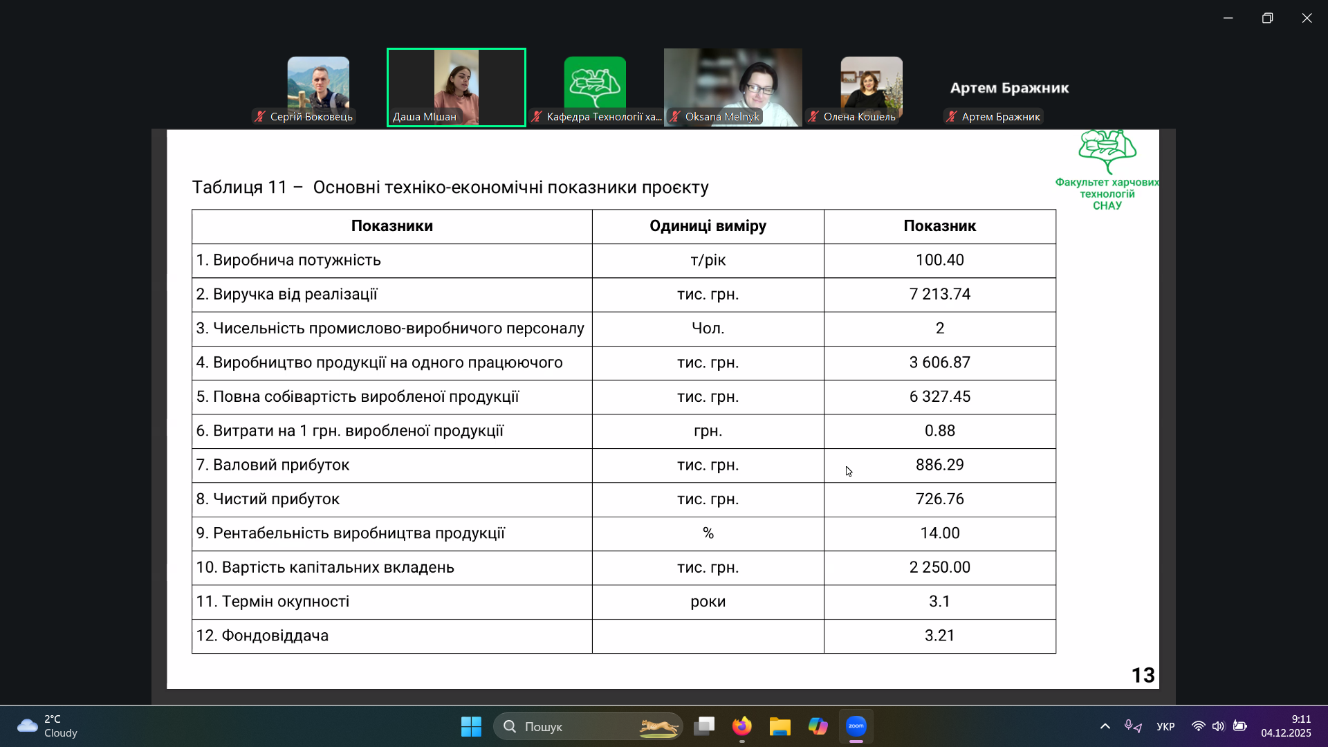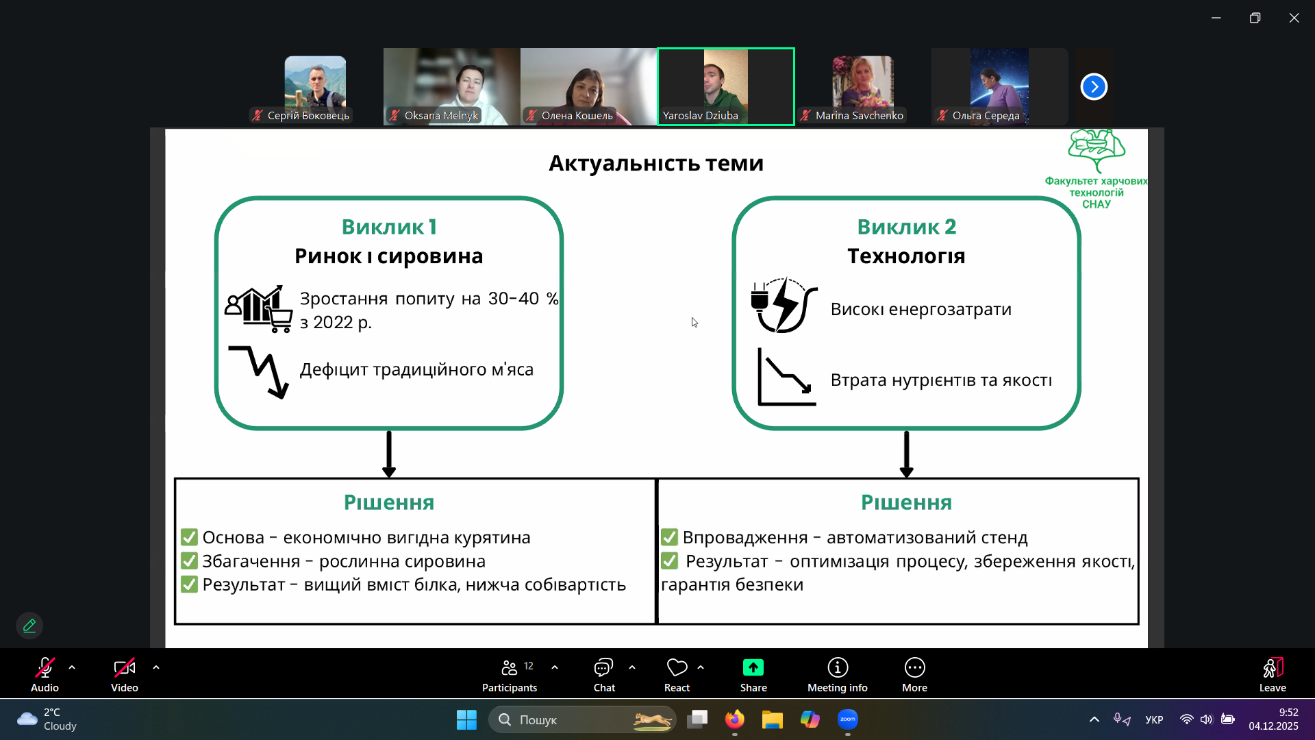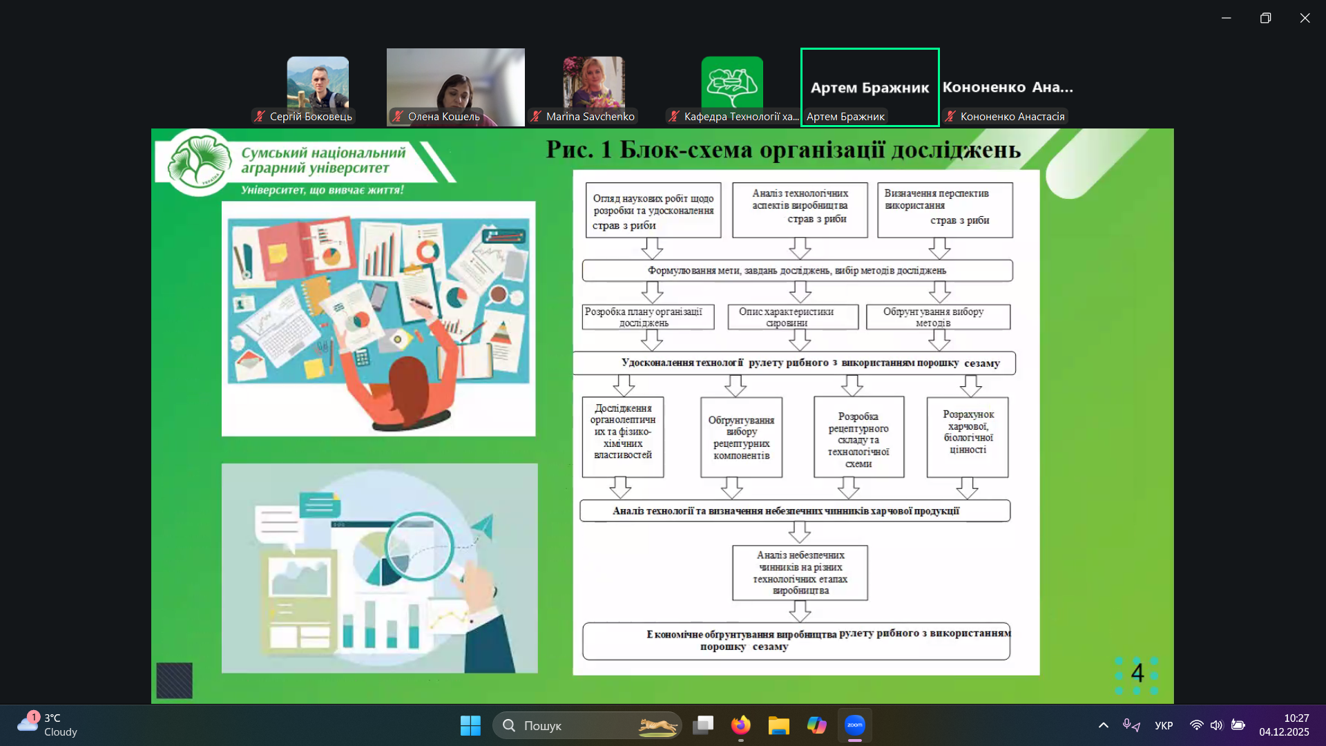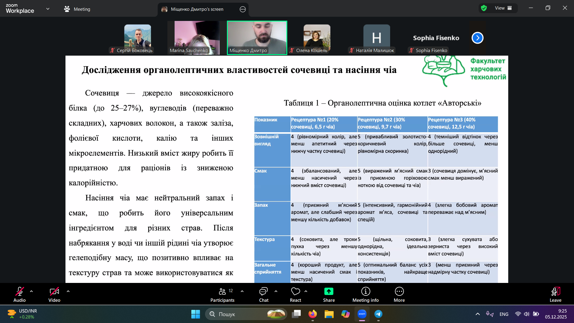4 та 5 грудня 2025 року на кафедрі технології харчування успішно відбувся попередній захист кваліфікаційних робіт здобувачів, який проходив у онлайн-форматі.
