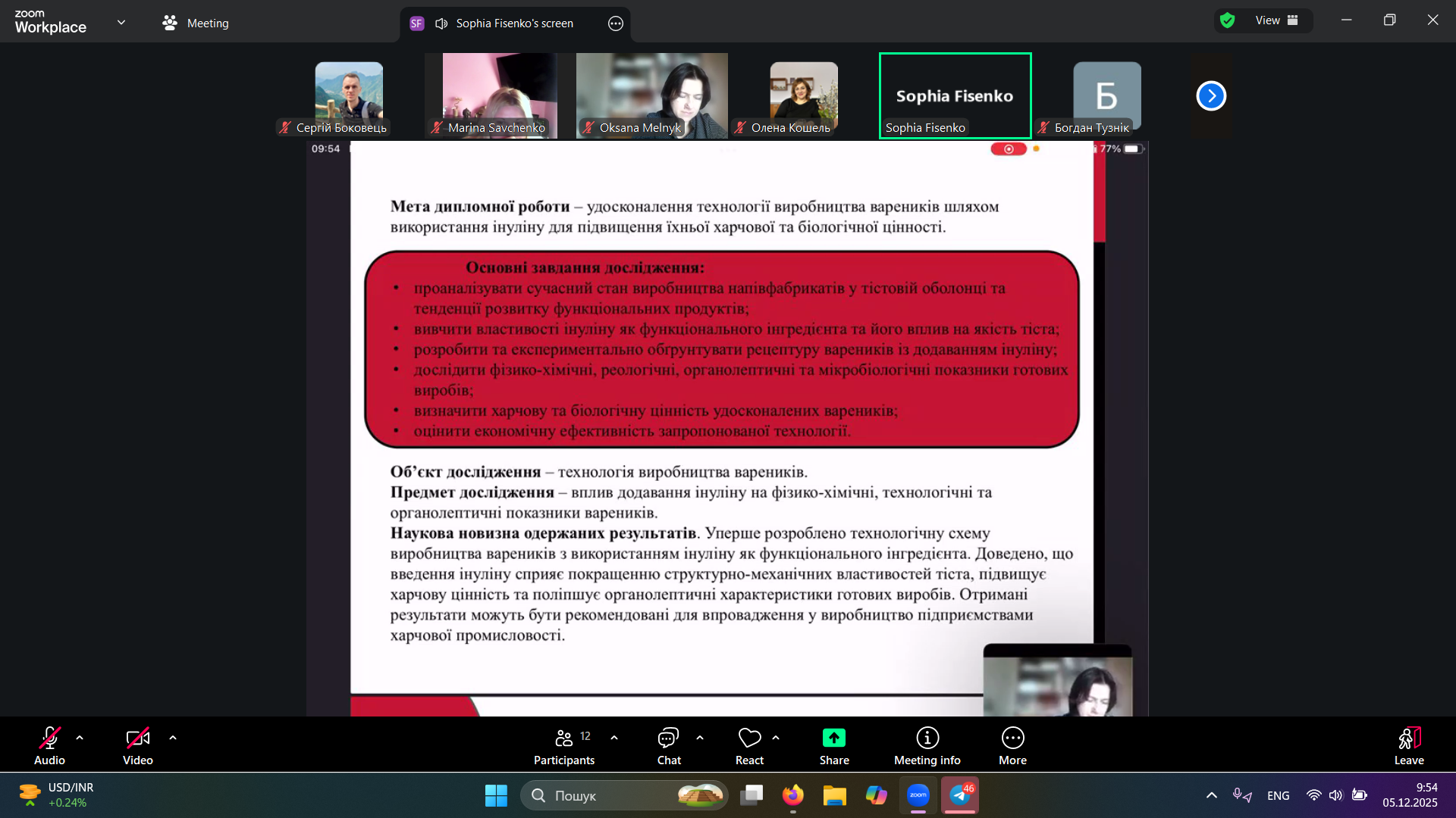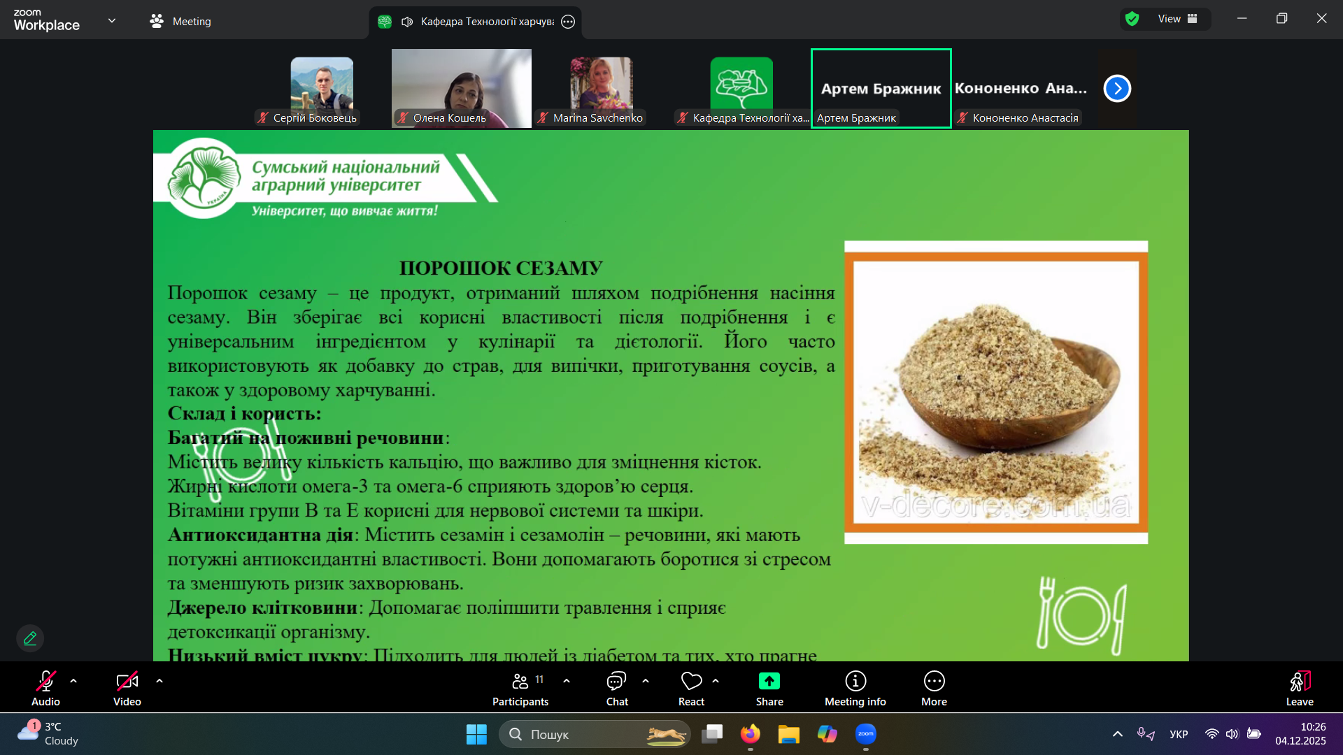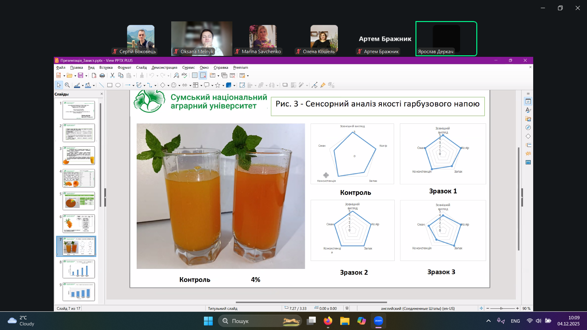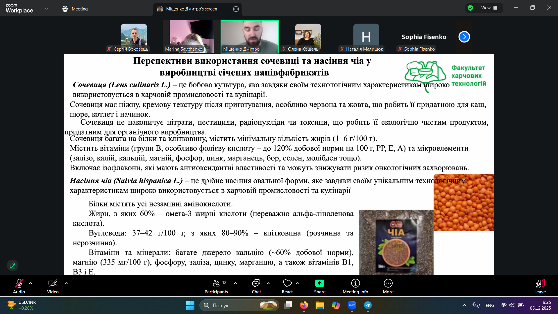 4 та 5 грудня 2025 року на кафедрі технології харчування успішно відбувся попередній захист кваліфікаційних робіт здобувачів, який проходив у онлайн-форматі.