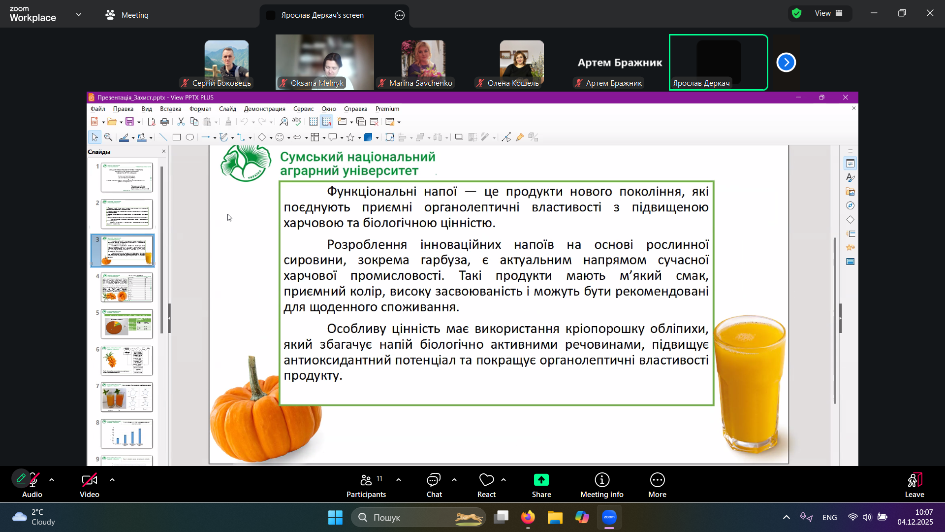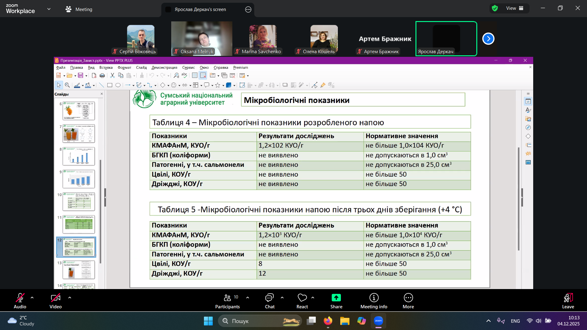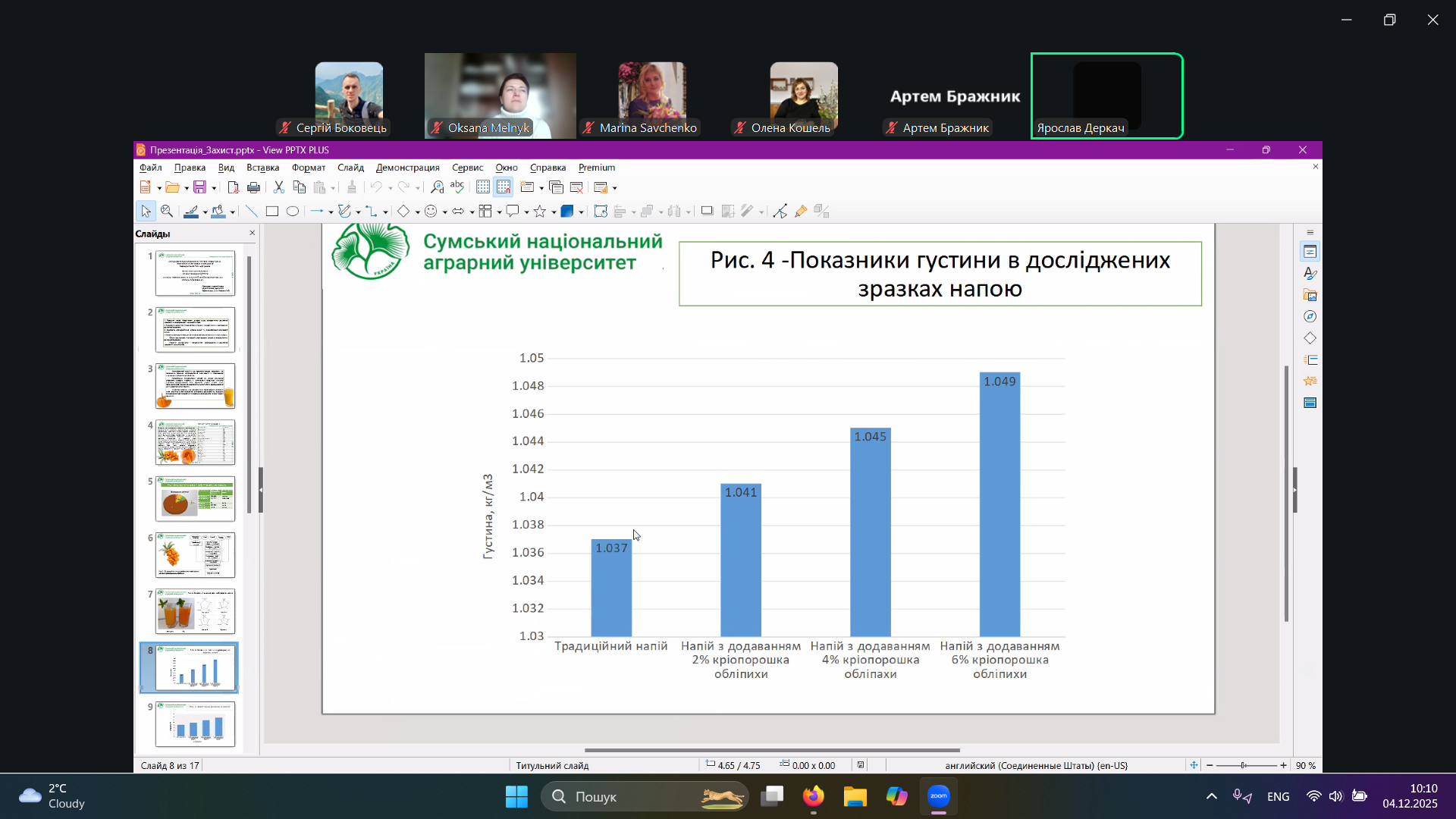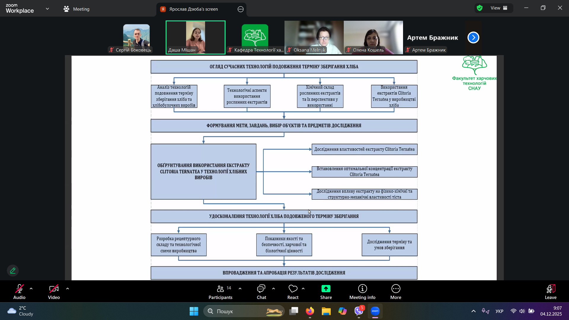 4 та 5 грудня 2025 року на кафедрі технології харчування успішно відбувся попередній захист кваліфікаційних робіт здобувачів, який проходив у онлайн-форматі.