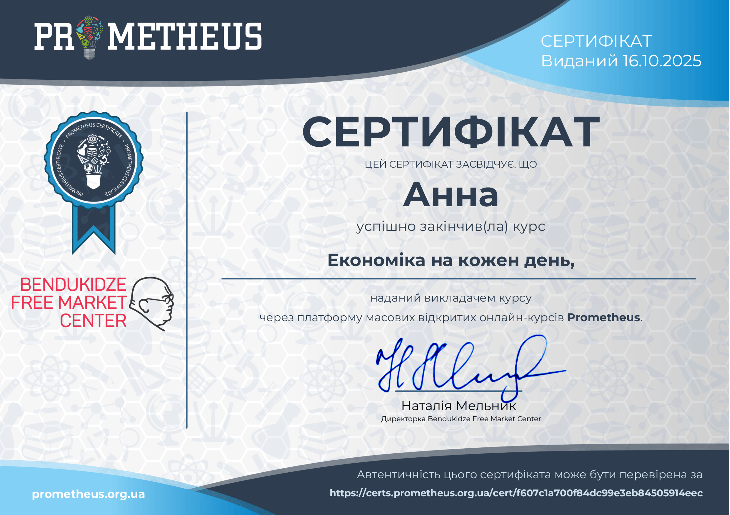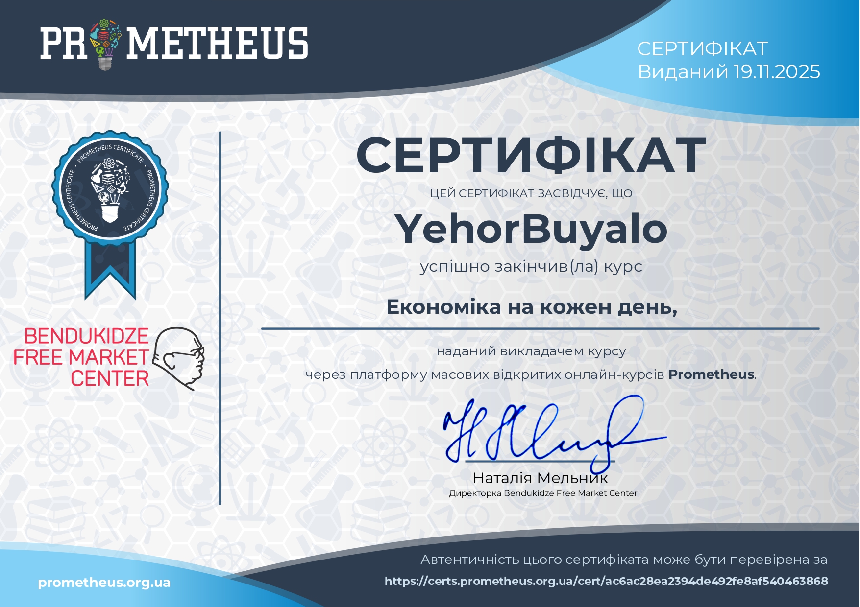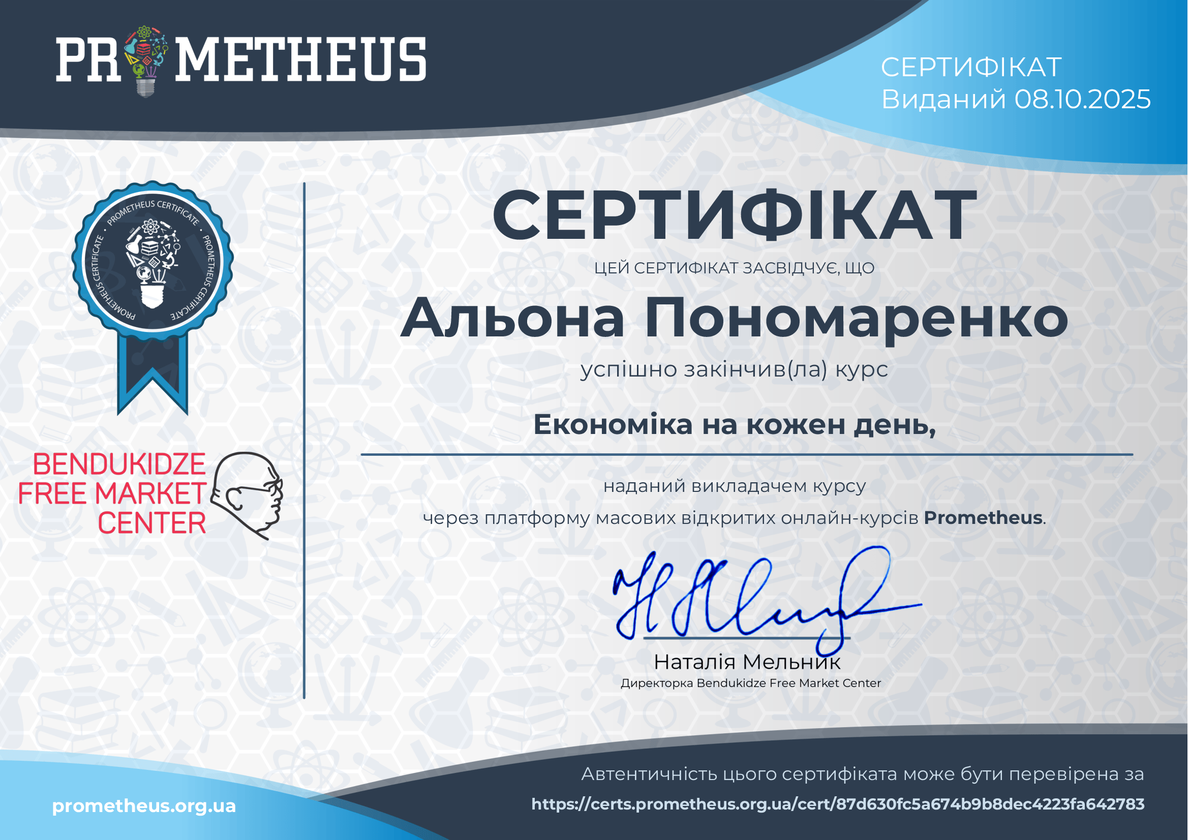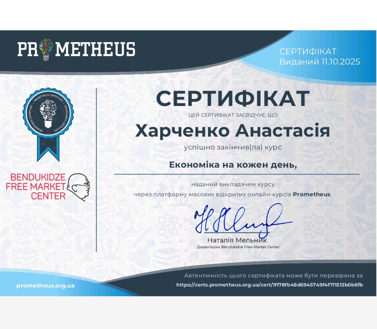 Здобувачі освітньо-професійних програм «Крафтові технології та гастрономічні інновації», «Харчові технології» та «Готельно-ресторанна справа» першого (бакалаврського) рівня вищої освіти 4 та 3 с.т. курсів пройшли курс неформальної освіти «Економіка на кожен день» на платформі Prometheus та отримали сертифікати.