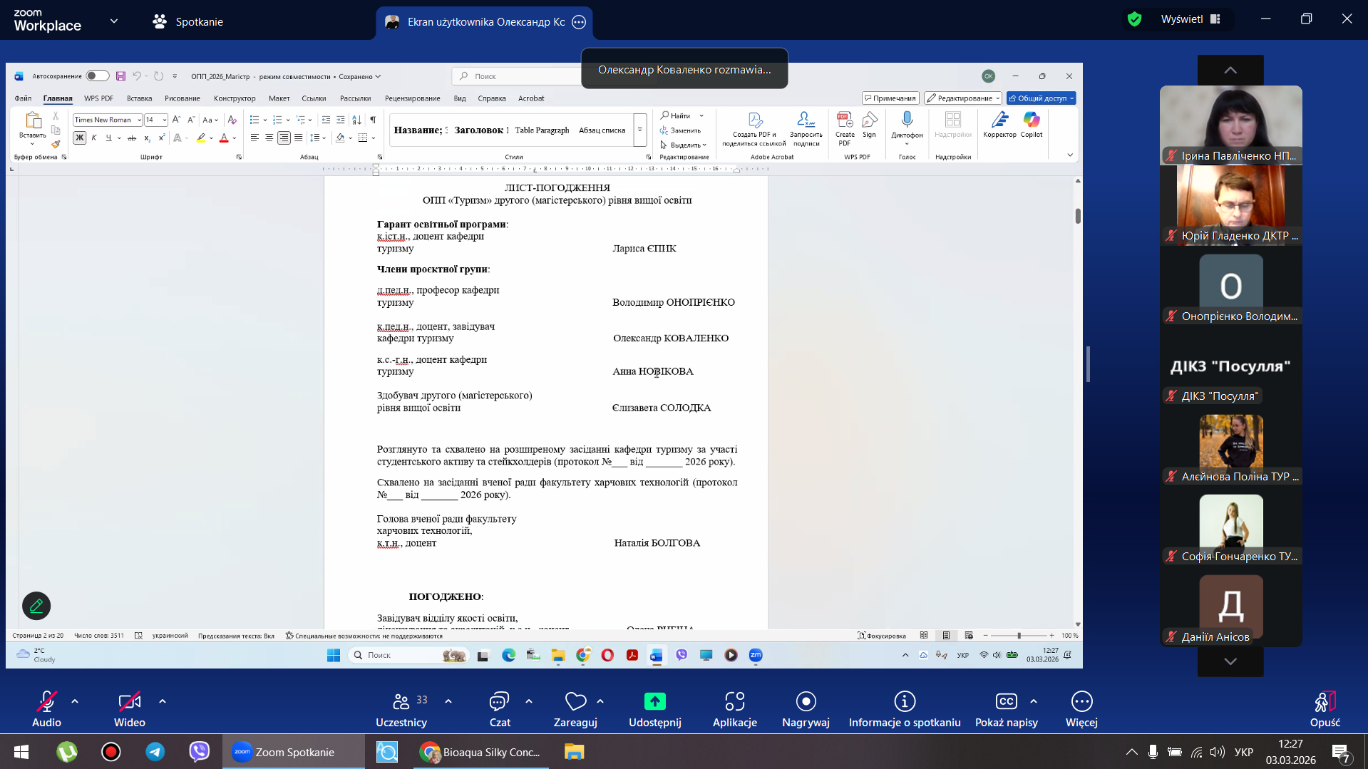 3 березня 2026 року відбулося продуктивне обговорення освітніх програм (ОП) для бакалаврів та магістрів спеціальності «Туризм». Ми залучили провідних експертів, роботодавців та здобувачів, щоб зробити навчання максимально прикладним та сучасним.