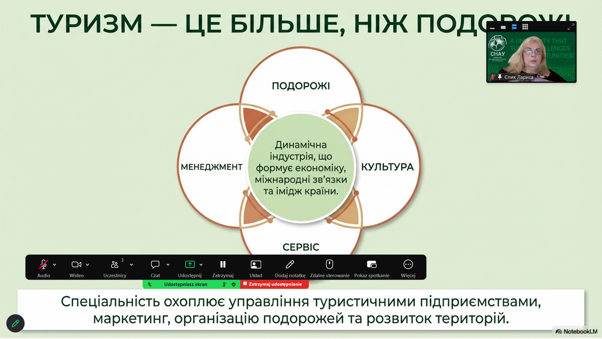 Доцент кафедри туризму Лариса Єпик 15 квітня 2026 року провела гостьові лекції для здобувачів Путивльського коледжу СНАУ на тему професійного самовизначення у сфері туризму.