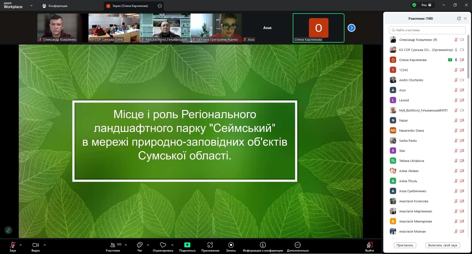 У заході взяв участь завідувач кафедри туризму Сумського національного аграрного університету, к.п.н., доцент Коваленко Олександр Вікторович, який долучився до фахового обговорення історії становлення, сучасних тенденцій розвитку та перспектив функціонування регіонального ландшафтного парку «Сеймський».