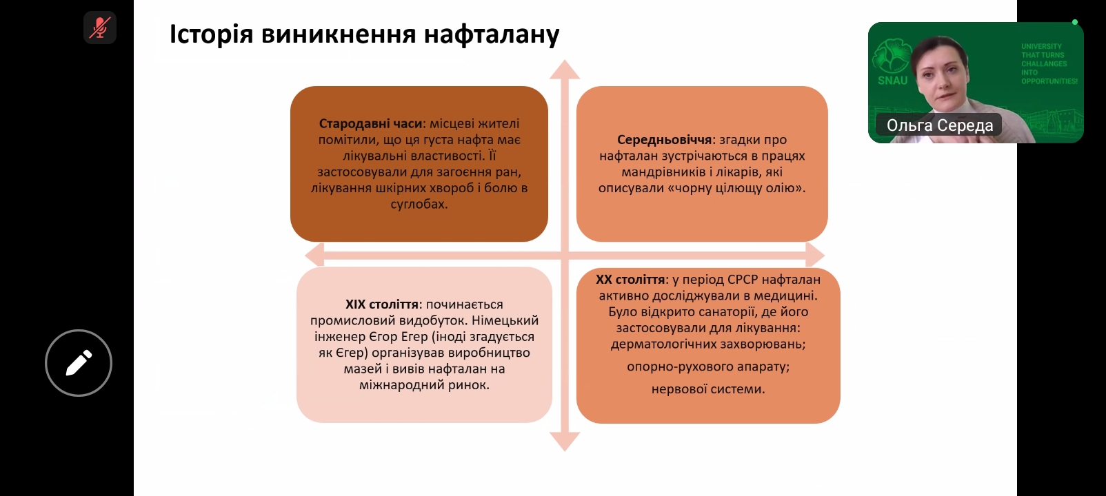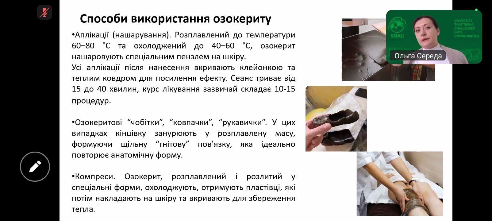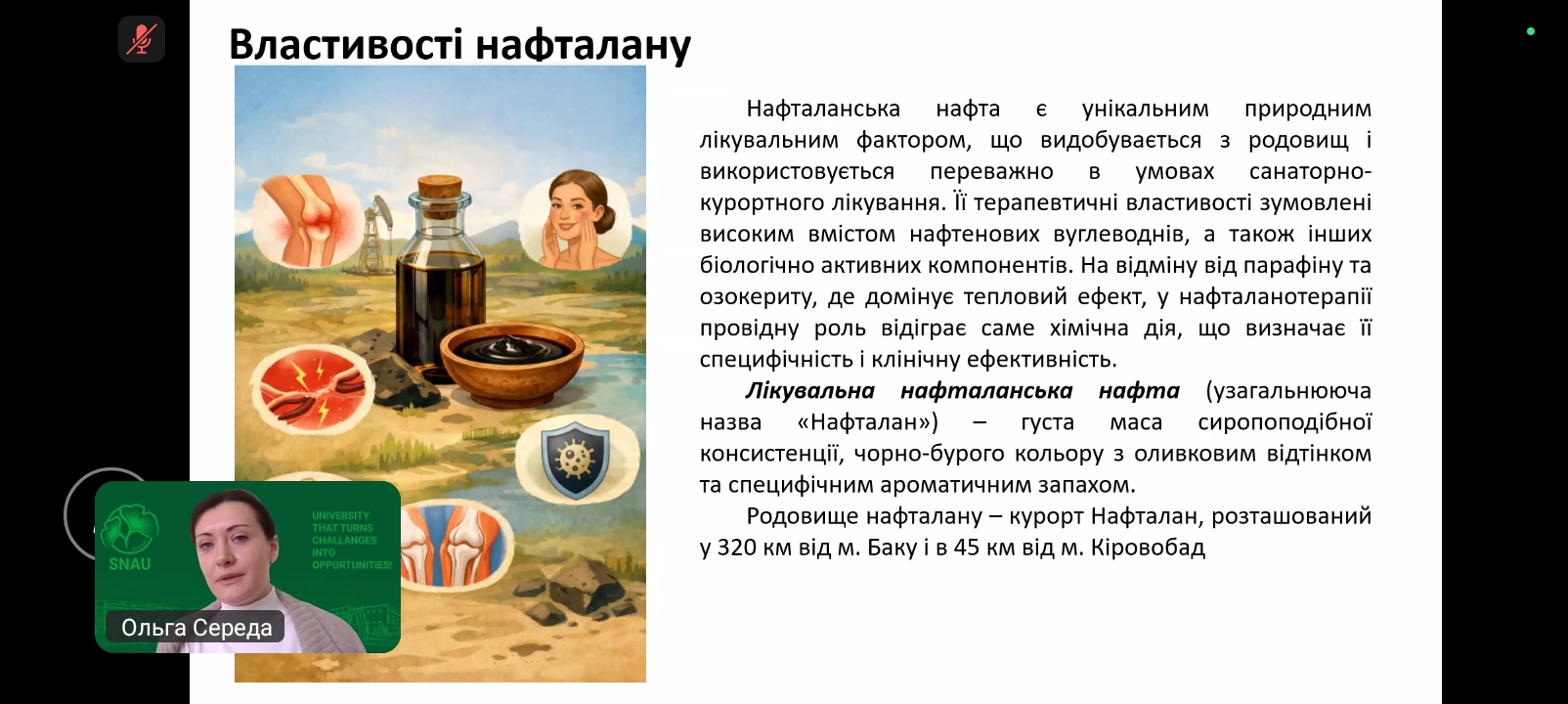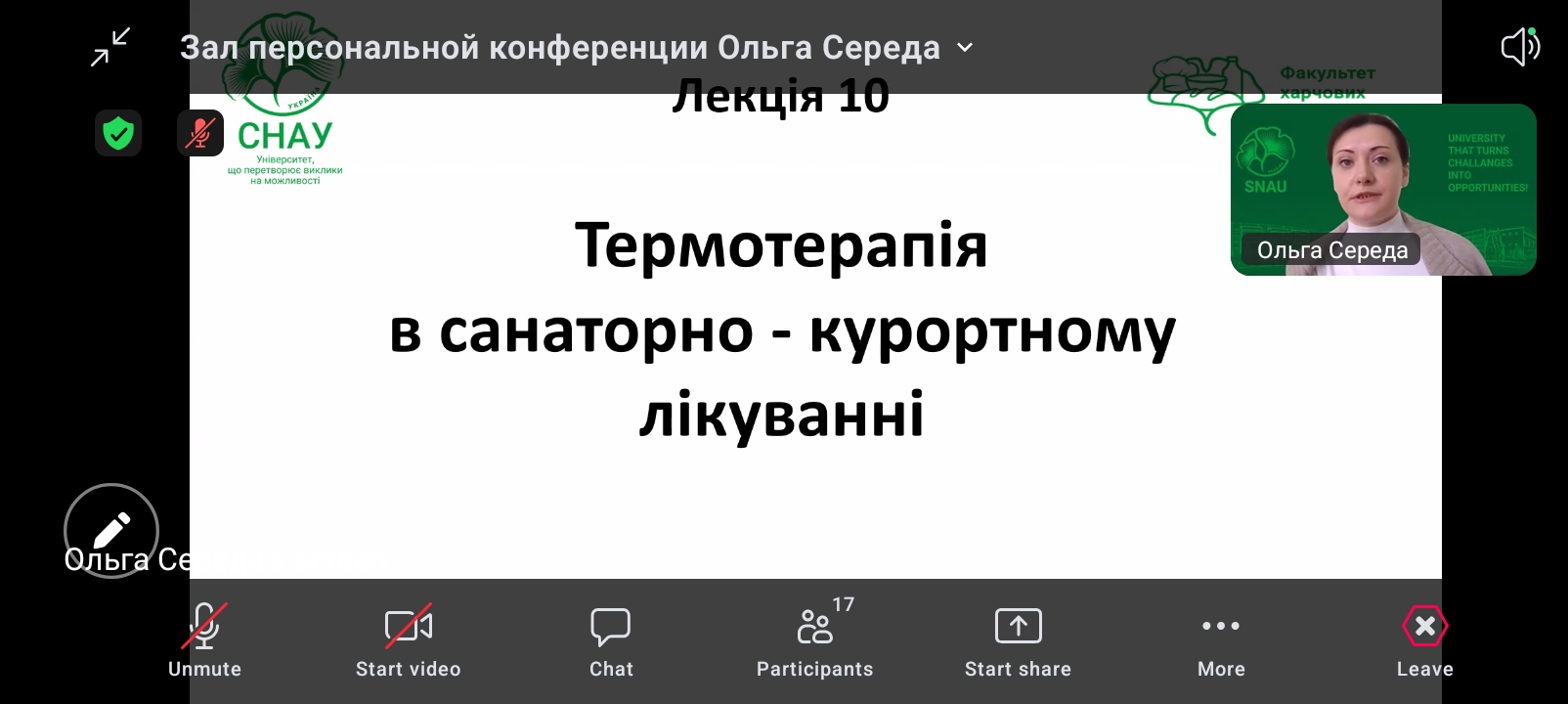 22 квітня 2026 року відбулася відкрита лекція на тему «Термотерапія в санаторно-курортному лікуванні», яку провела доктор філософії, доцент кафедри технології харчування СНАУ Ольга Середа.
