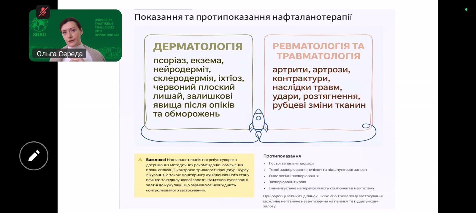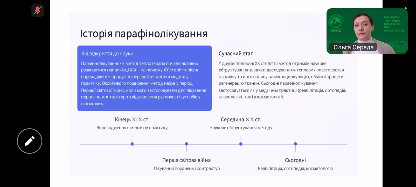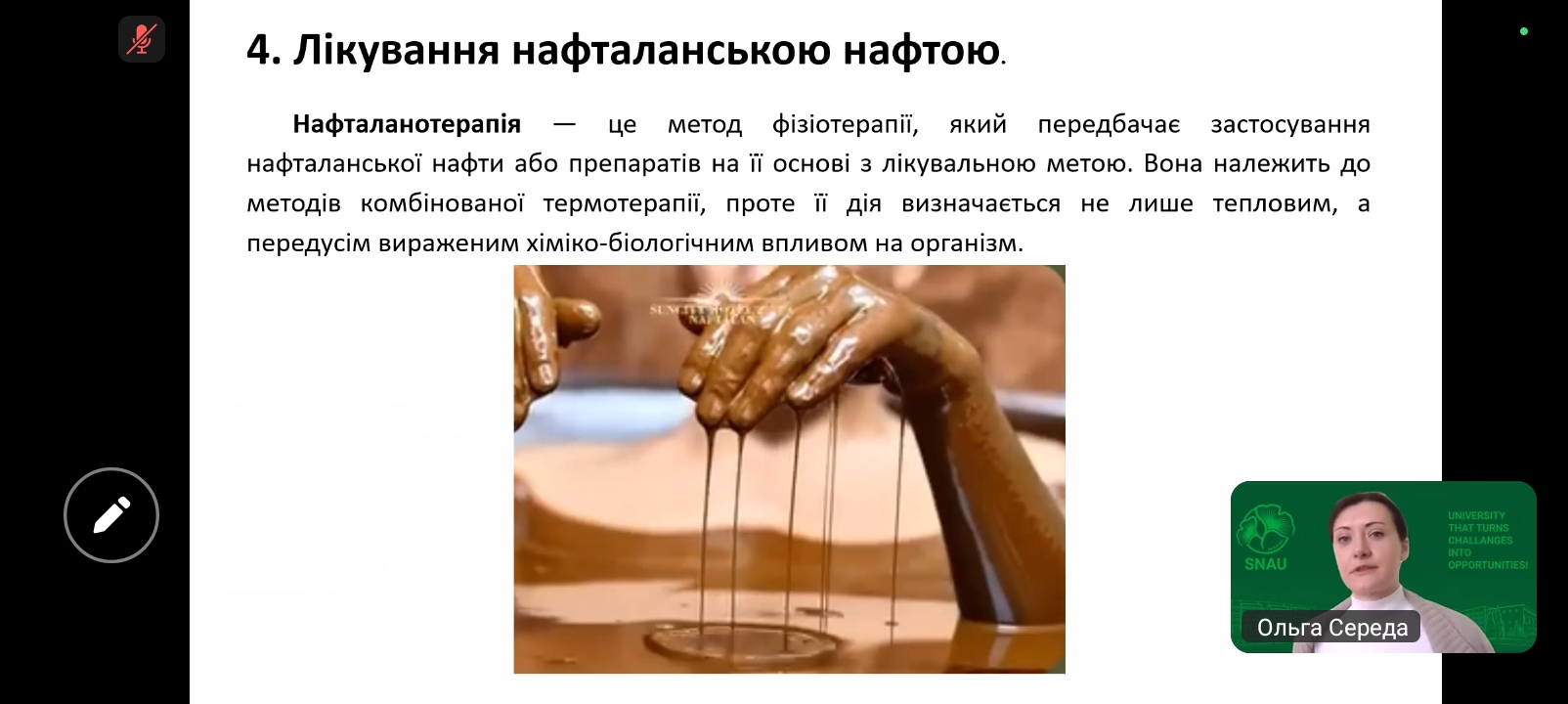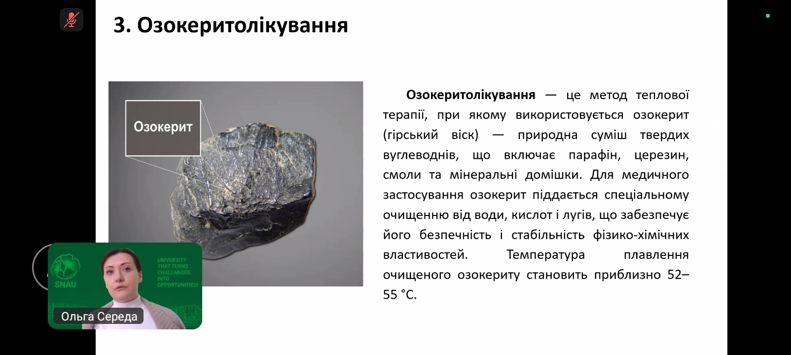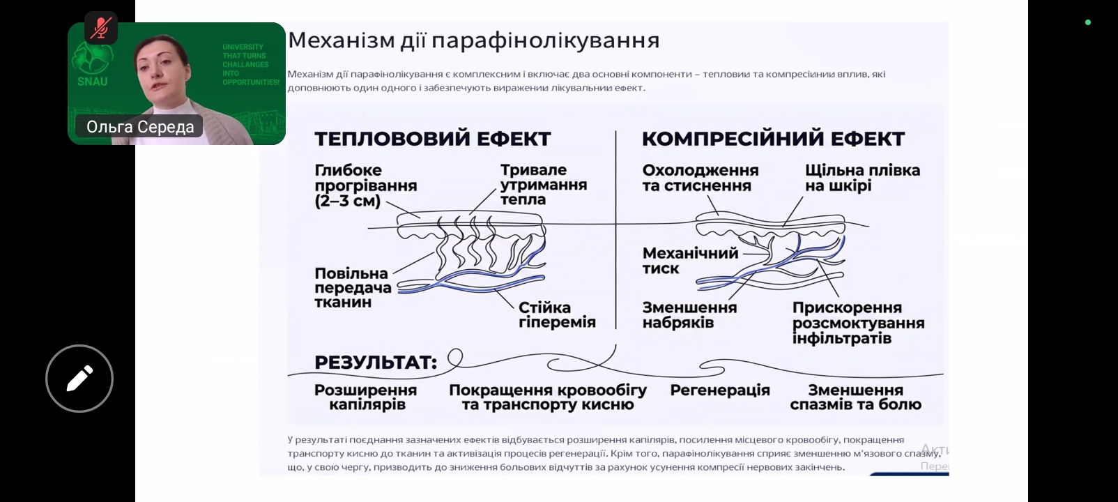 Лекторка детально висвітлила вплив теплових процедур на фізіологічні процеси організму, окреслила основні показання та протипоказання до їх використання, а також представила сучасні підходи до застосування термотерапії в оздоровчих закладах.