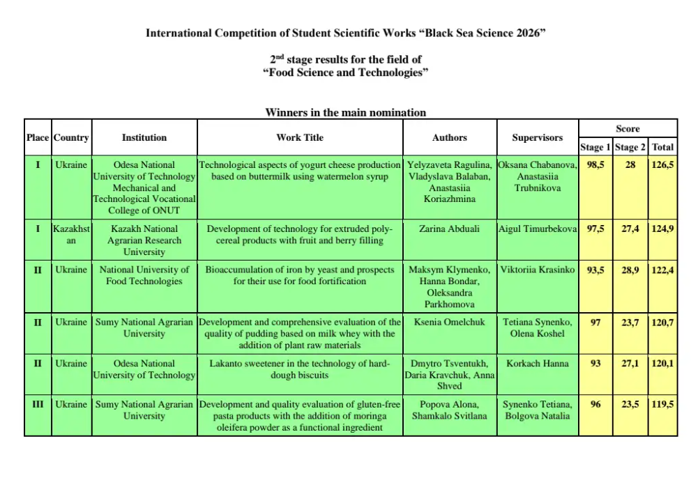 Це вагоме досягнення є свідченням високого рівня підготовки, наполегливості, творчого підходу до наукової роботи та прагнення до нових знань. Участь у конкурсі такого рівня – це не лише можливість представити власні наукові напрацювання, а й гідно презентувати факультет харчових технологій Сумського НАУ на міжнародній арені.
