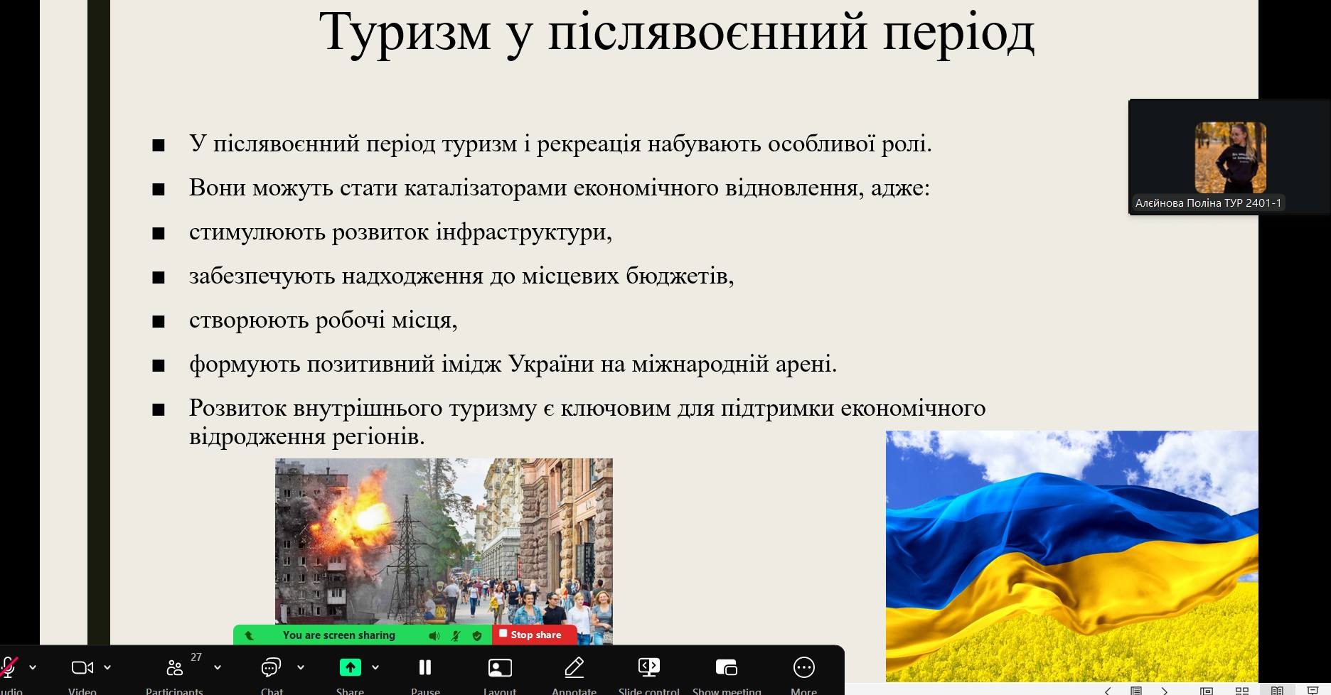 Учасники секції «Туризм і рекреація» представили актуальні доповіді, присвячені ролі туризму в соціально-економічному розвитку регіонів, сучасним тенденціям рекреаційної діяльності, перспективам відновлення туристичної сфери після війни, розвитку гастрономічного та антарктичного туризму. Особливу увагу привернула доповідь із сучасного аналізу рекреаційного потенціалу України.