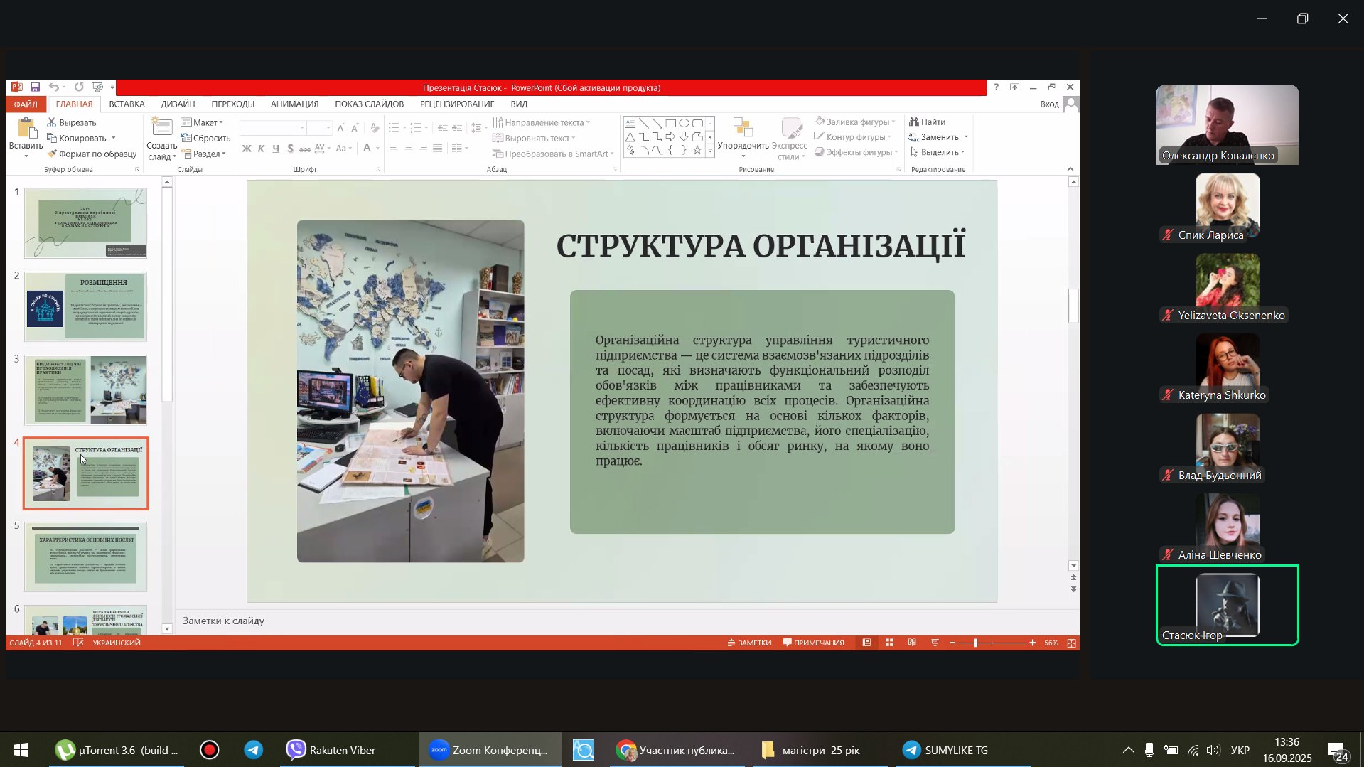 Під час захисту студенти представили результати проходження практики, продемонстрували сформовані професійні компетентності, вміння аналізувати діяльність туристичних і рекреаційних підприємств, а також здатність застосовувати теоретичні знання у практичній діяльності.