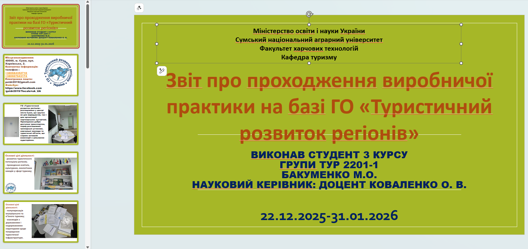 6 лютого 2026 року відбувся захист звітів із переддипломної практики здобувачів вищої освіти 4 року навчання спеціальності 242 «Туризм і рекреація».