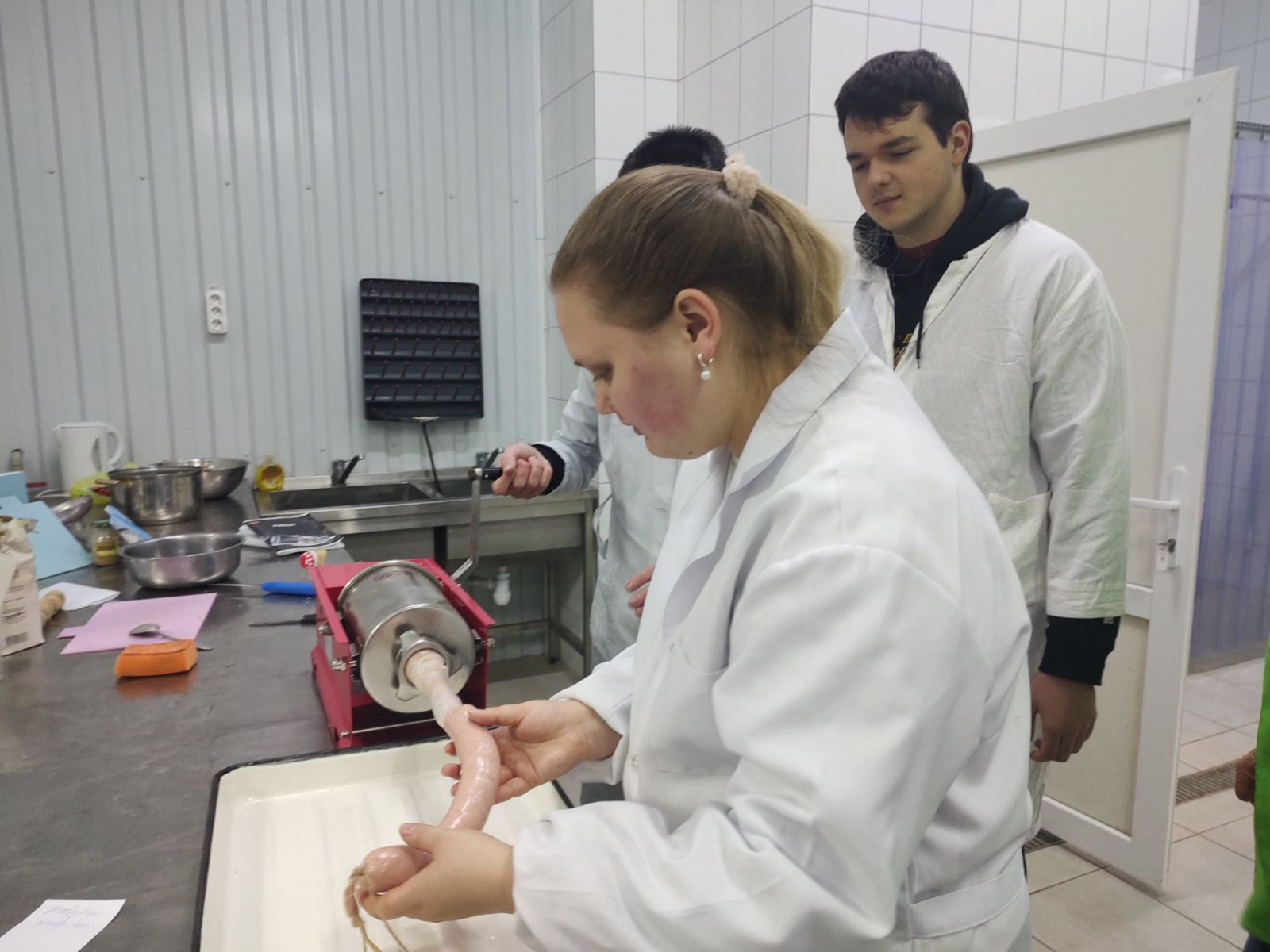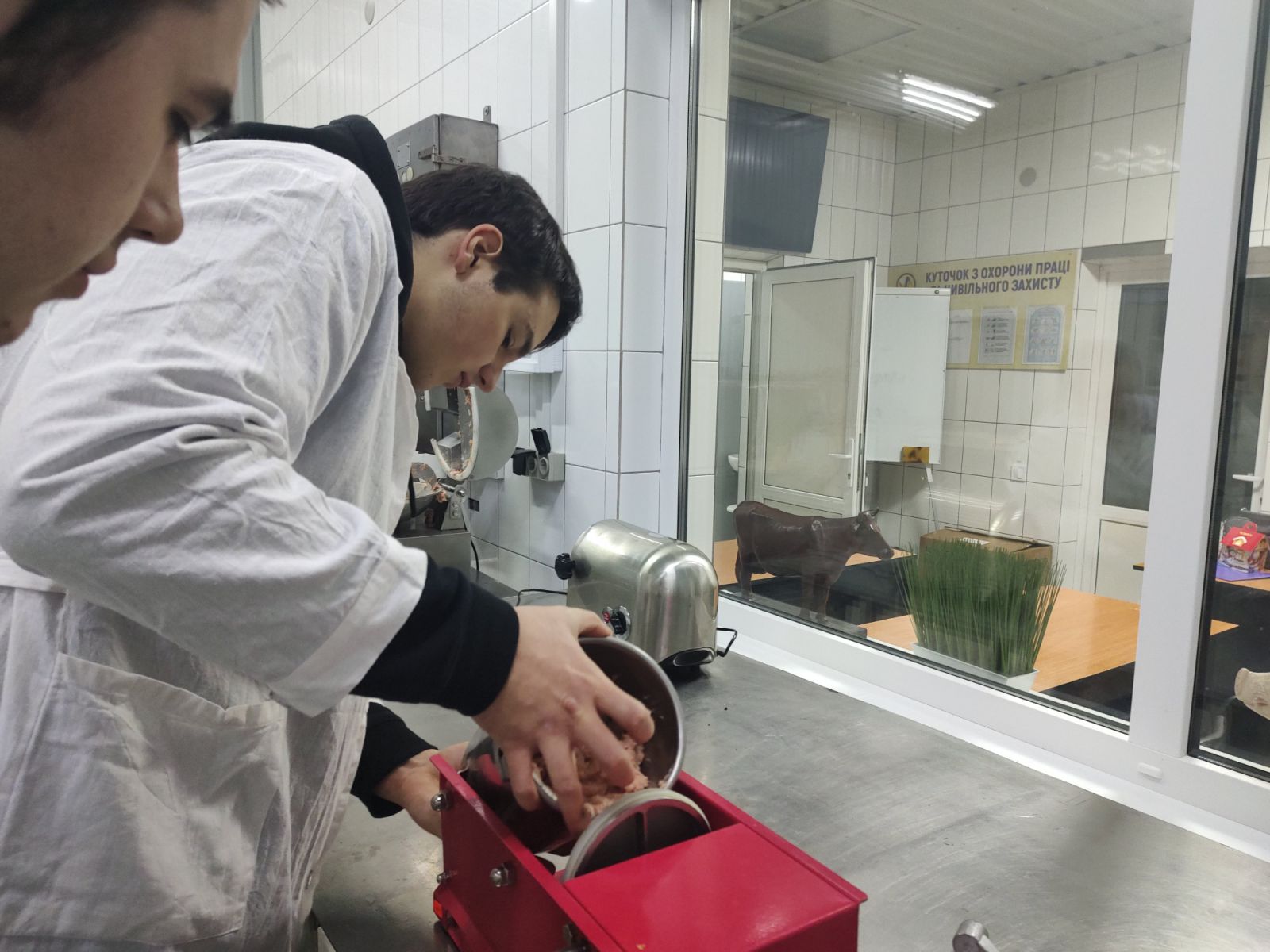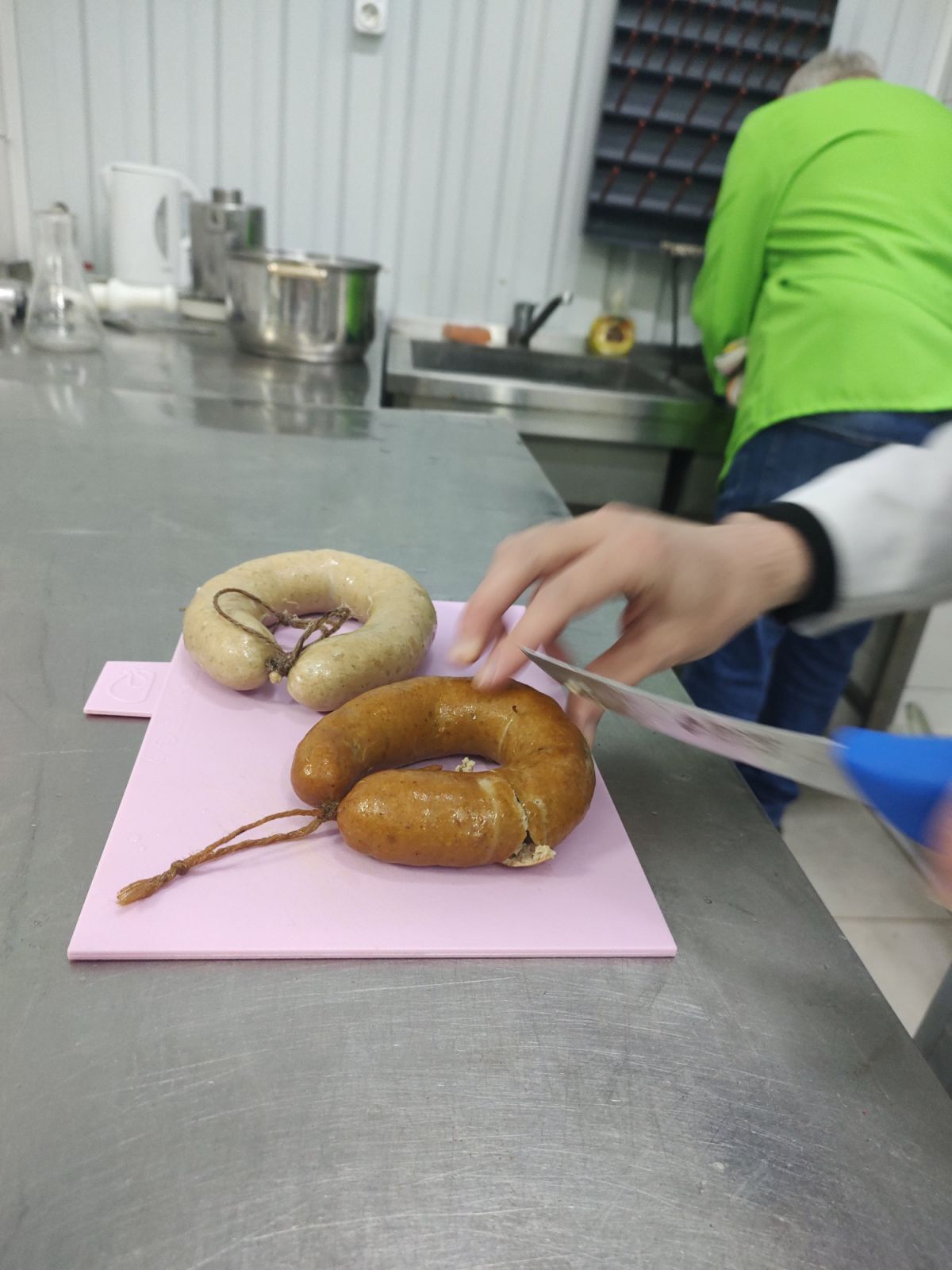 Було відпрацьовано технологічні операції підготовки, подрібнення, кутерування, формування та термічної обробки ковбасних виробів. Окрім цього здобувачі визначили якісні показники комбінованих фаршевих систем, і звичайно провели дегустацію, виготовлених власноруч, готових ковбас.